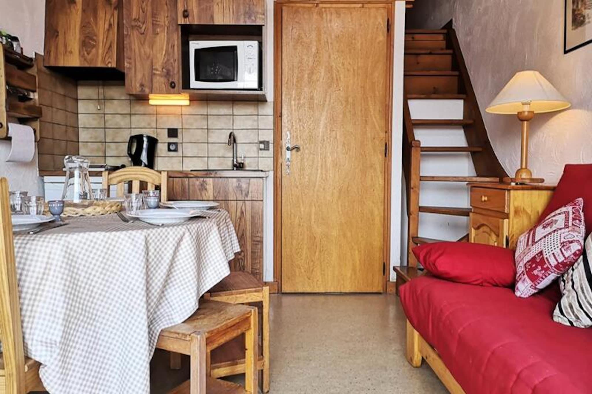 I hjertet af de franske alper tilbyder denne charmerende studiolejlighed et hyggeligt tilflugtssted til din bjergferie. Beliggende kun 500 meter fra den maleriske landsby Notre-Dame-de-Bellecombe, tilbyder den den perfekte balance mellem ro og bekvemmelighed. Forestil dig at vågne op til den friske alpeluft, gå udenfor og krydse vejen for at få adgang til Reguet-skilifterne og den berømte ESF-skiskole, hvilket gør den til et ideelt valg for både skientusiaster og familier. Lejligheden, der ligger på anden sal, har en gennemtænkt planløsning designet til at maksimere komforten inden for sit 26 m² store rum. Sovealkoven på mezzaninen med en dobbeltseng tilføjer et strejf af charme, mens stuen med en sovesofa til to og en sovealkove med køjesenge sikrer rigelig soveplads til op til fem gæster. Et veludstyret tekøkken åbner op til stuen og skaber et indbydende rum til fælles måltider og afslapning efter en dag på pisterne. Yderligere faciliteter inkluderer en privat parkeringsplads med ledige pladser og et skiskab for din bekvemmelighed. Bag ejendommen inviterer den maleriske landsby Notre-Dame-de-Bellecombe dig til at udforske dens charmerende butikker, hyggelige caféer og autentiske alpine atmosfære. Uanset om du står på ski om vinteren eller vandrer gennem frodige bjergstier om sommeren, byder det omkringliggende område på uendelige muligheder for eventyr og afslapning. Med sin førsteklasses beliggenhed, komfortable faciliteter og adgang til skiløb i verdensklasse er denne studiolejlighed din indgang til en uforglemmelig alpin flugt. Book dit ophold og skab varige minder i hjertet af de franske alper.