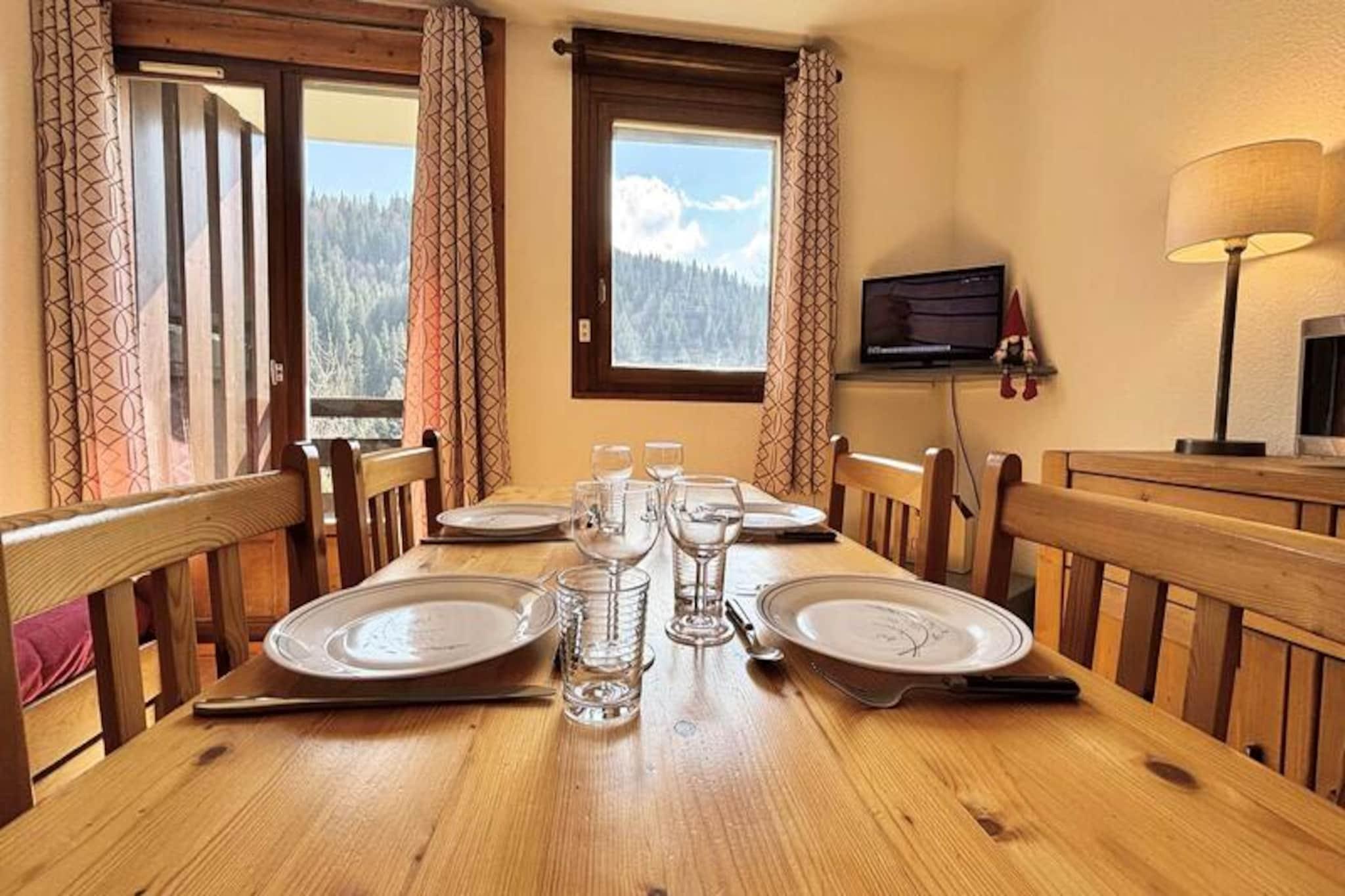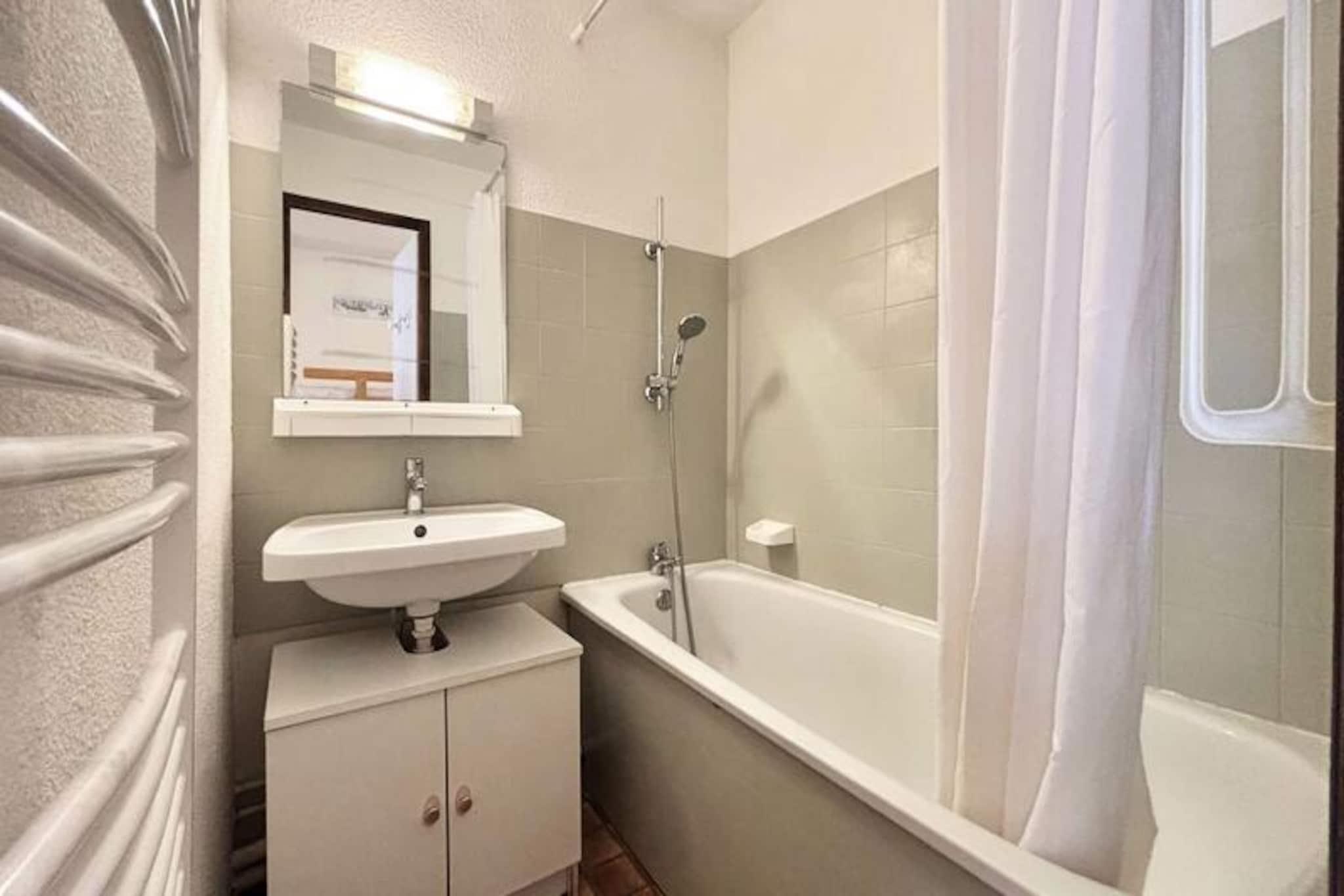 I hjertet af de franske alper, hvor snedækkede tinder møder fredfyldt alpin charme, tilbyder denne dejlige studiolejlighed et hyggeligt tilflugtssted til din bjergferie. Beliggende på første sal er denne 25 m² store bolig perfekt til par eller små familier, der søger en rolig base tæt på alt, hvad der sker. Med sin varme og indbydende atmosfære er det et paradis til afslapning efter en dag med udforskning af de betagende omgivelser. Balkonen tilbyder et fredeligt sted at nyde frisk bjergluft og nyde den naturskønne udsigt. \n\nIndenfor er studiolejligheden omhyggeligt designet til at maksimere komfort og funktionalitet. Indgangen har en sovealkove med to køjesenge, ideel til børn eller ekstra gæster, mens stuen tilbyder to enkeltsenge til afslappende nætter. Tekøkkenet er fuldt udstyret, så du kan tilberede solide måltider til dine eventyr. Et separat badeværelse og toilet sikrer bekvemmelighed, og skiboksen og den overdækkede parkeringsplads gør dit ophold praktisk. Bemærk venligst, at den øverste køjeseng ikke er egnet til børn under seks år.\n\nLejligheden ligger kun 400 meter fra landsbyens butikker og 600 meter fra skiskolen og pisterne og tilbyder nem adgang til alt, hvad du behøver for en uforglemmelig ferie. En gratis shuttle-service stopper kun få skridt fra boligen og tager dig til pisterne på få minutter. Uanset om du er her for at stå på ski, snowboarde eller blot nyde den alpine skønhed, er denne beliggenhed ideel til at fordybe dig i regionens charme.\n\nMed yderligere tjenester som sengelinned, håndklæder og rengøring tilgængelig efter anmodning sikrer denne studiolejlighed et behageligt og problemfrit ophold. Skab uforglemmelige minder i dette hyggelige tilflugtssted, omgivet af de franske alpers majestætiske skønhed.