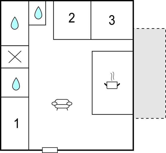 Opholdsstue 33m2 - 2 Sovepladser. (Sofa, madras eller lignende).