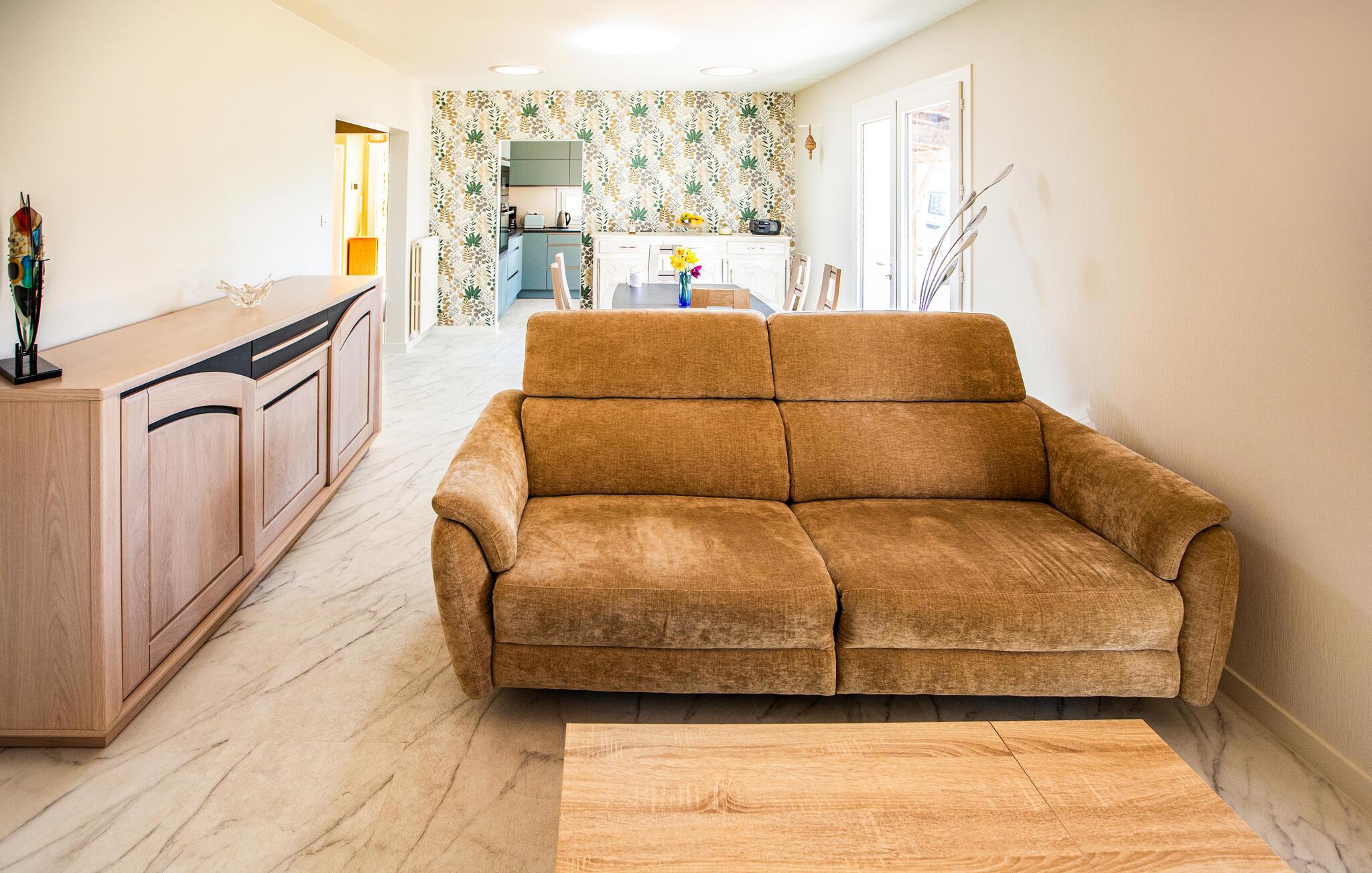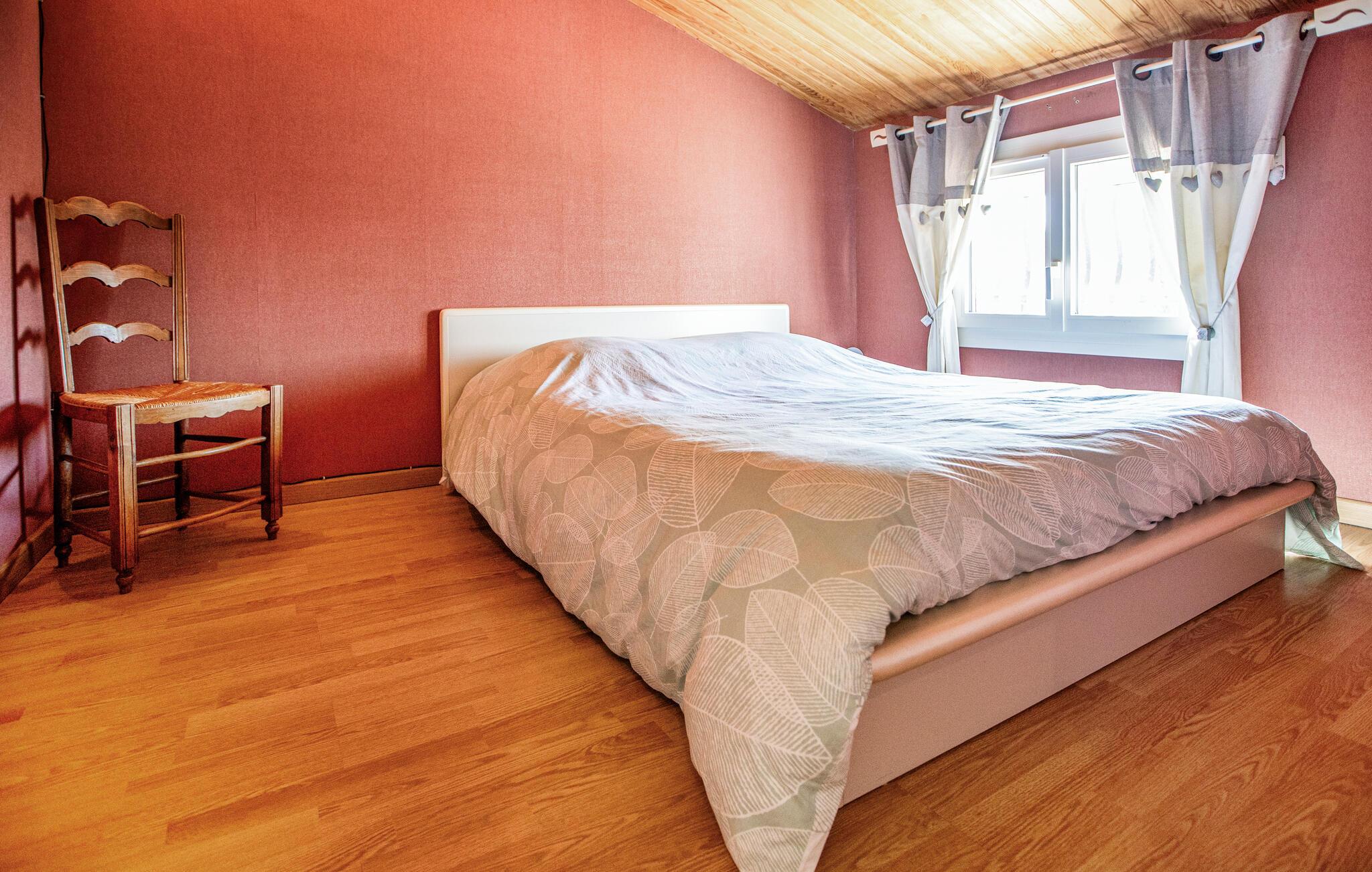 Nyd ferien i dette feriehus, som ligger roligt mellem havet og landlige rammer. Den lyse og venlige opholdsstue med store vinduer giver adgang til terrassen. Kombinationen af ??moderne møbler og traditionelle detaljer skaber en hyggelig atmosfære. Tag plads i den behagelige sofa, eller saml familien ved det store spisebord. I kan tilberede dagens måltider sammen i det moderne køkken. Et separat værelse på øverste etage indbyder også til at slappe af.