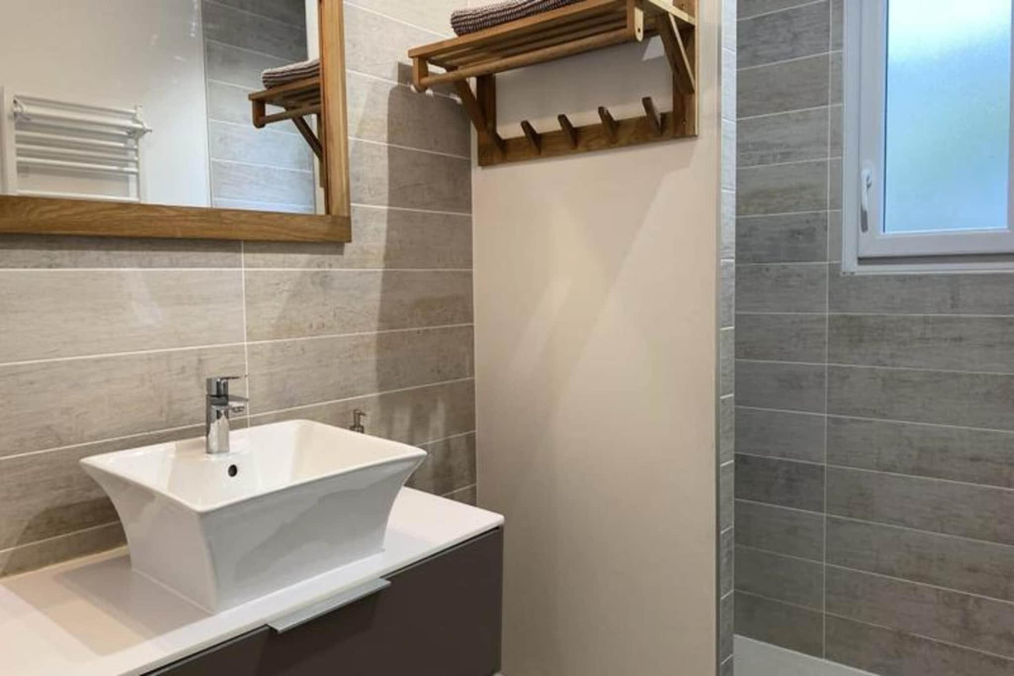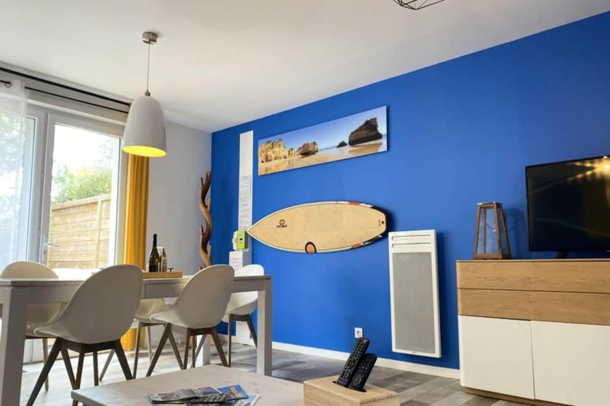 Beliggende i hjertet af en fredfyldt skov, tilbyder denne charmerende 60 m² bolig, dekoreret med et portugisisk tema, et ideelt tilflugtssted for op til seks gæster. Ejendommen omfatter to hyggelige soveværelser med dobbeltsenge og en sovesofa i stuen med plads til yderligere to personer. Kæledyr under 25 kg er velkomne mod et tillægsgebyr, og sengetøj stilles til rådighed for din bekvemmelighed. Gæster kan også vælge den private seks-personers spa i haven for ultimativ afslapning. Håndklæder kan lejes, og rengøring kan arrangeres efter anmodning. Ejendommen er beliggende i den fantastiske Pays-de-Monts National Forest, kun få minutter fra smukke strande og omgivet af et omfattende netværk af naturskønne cykelstier. Området giver en fredelig flugt med muligheder for at udforske naturen, mens nærliggende attraktioner omfatter lokale caféer, markeder og charmerende byer. Uanset om du ønsker at slappe af eller nyde udendørsaktiviteter, tilbyder denne beliggenhed den perfekte balance. Huset har et fuldt udstyret køkken med moderne apparater, herunder køleskab, fryser, opvaskemaskine, ovn og Nespresso-maskine. Yderligere faciliteter omfatter vaskemaskine, strygefaciliteter, hårtørrer og tv med TNT-kanaler. Udenfor inviterer en rummelig træterrasse med havemøbler, en grill og en parasol dig til at nyde udendørs spisning. For familier er et babysæt tilgængeligt til leje, hvilket sikrer et bekvemt og behageligt ophold for alle.