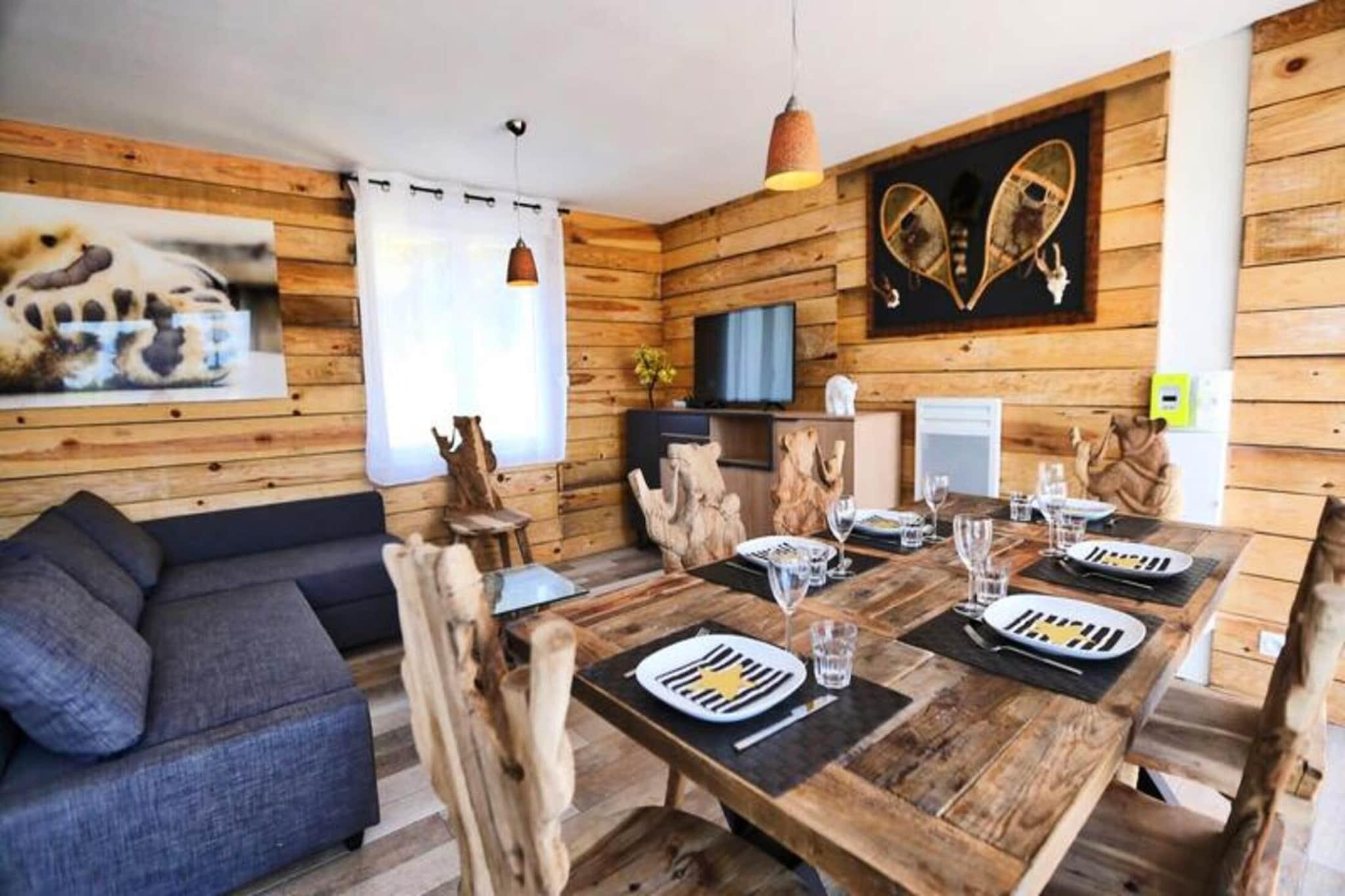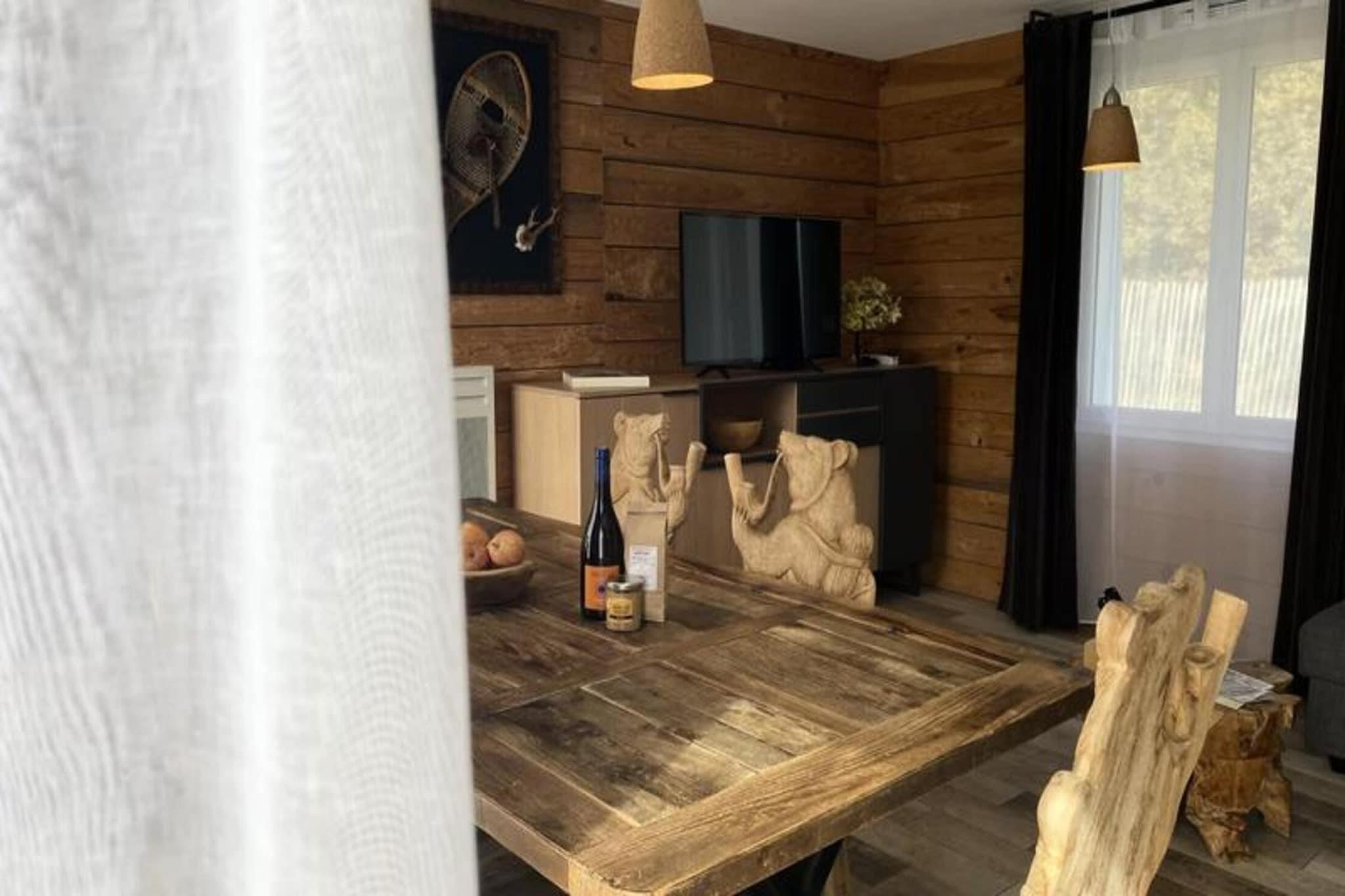 Dette 60m² canadisk-tema hus, beliggende i hjertet af skoven, kan komfortabelt rumme op til seks gæster. Det har to soveværelser med dobbeltsenge og en sovesofa til dobbeltseng i stuen. Kæledyr under 25 kg og ikke støjende accepteres mod et gebyr på EURO15. En privat 6-personers spa er tilgængelig for et valgfrit gebyr på 40 EURO for hele opholdets varighed. Huset er beliggende i enestående omgivelser i hjertet af Pays-de-Monts nationalskov, kun få minutter fra stranden. Adskillige cykelstier omgiver området, der giver muligheder for udforskning. Huset indeholder en stue, et fuldt udstyret køkken (ovn, køleskab, fryser, opvaskemaskine, mikroovn, filter og Nespresso-kaffemaskine, brødrister, kedel, keramisk kogeplade, porcelæn, køkkenredskaber), to soveværelser og et badeværelse. Faciliteterne inkluderer også et tv (TNT-kanaler), hårtørrer, vaskemaskine, strygebræt og strygejern. Udenfor giver en smuk træterrasse med havemøbler (bord, stole, parasol, grill/el-plancha) udendørs plads. Sengetøj leveres, men håndklæder er ikke (leje af håndklædesæt koster 5 EURO pr. person). Gæster forventes at efterlade boligen ren; en slutrengøringspakke er tilgængelig for EURO85, eller midtopholdsrengøring kan rekvireres for EURO39 (med 3 dages varsel). Et babysæt (rejseseng, højstol, babybadekar) er tilgængeligt for yderligere 15 EURO. Indtjekning er fra kl. 16.00, og udtjekning er inden kl. 10.00. Der kræves et depositum på EURO750.
