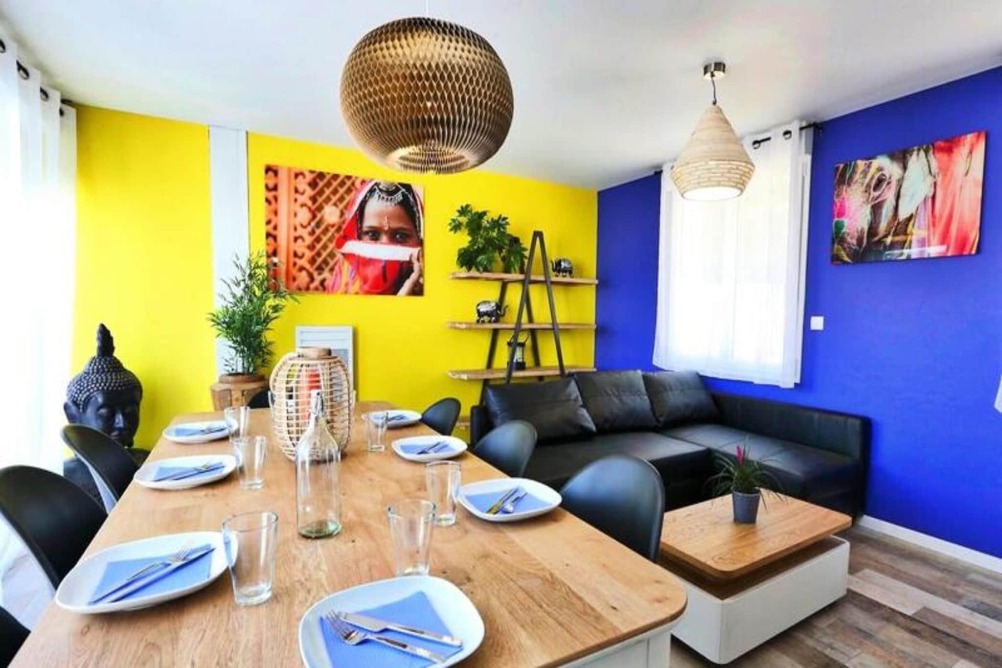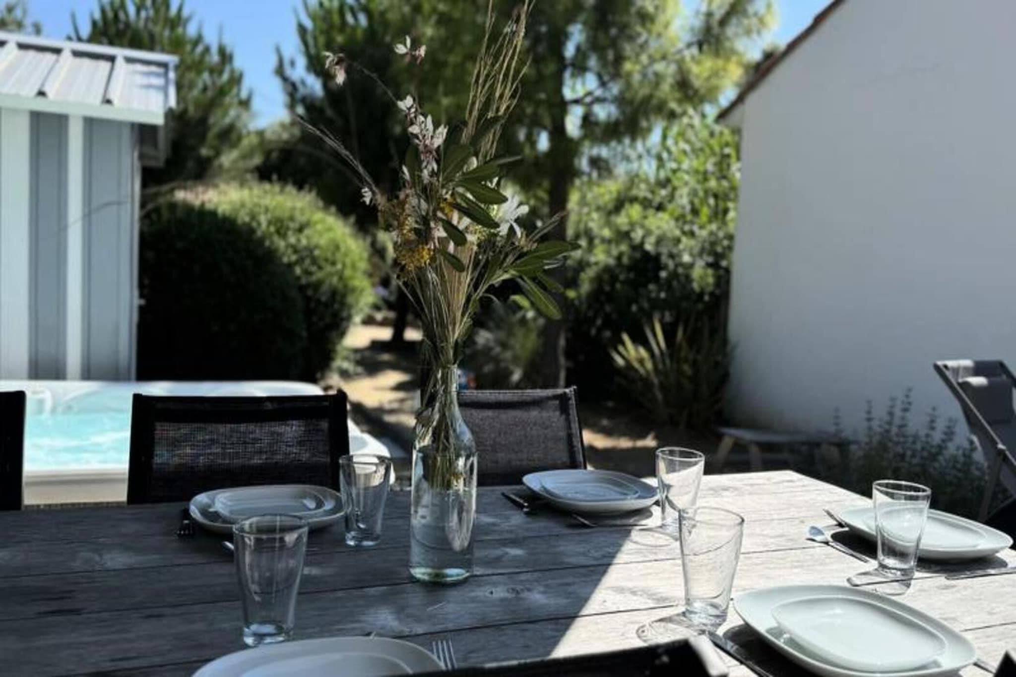 Dette feriehus p? 65 m², indrettet med et indisk tema, kan rumme op til 8 g?ster. Indkvarteringen omfatter tre sovev?relser med dobbeltsenge og en sovesofa i stuen til ekstra soveplads. Ejendommen er k?ledyrsvenlig og accepterer k?ledyr under 25 kg mod et ekstra gebyr. En privat terrasse giver et fredeligt sted at slappe af med havem?bler, et udend?rs bord og stole og en grill eller elektrisk plancha til udend?rs m?ltider. K?ledyr er velkomne mod et ekstra gebyr, men ejendommen er ikke-ryger. Ejendommen ligger i hjertet af Pays-de-Monts nationalskov, kun f? minutter fra stranden. G?sterne kan udforske de omkringliggende cykelstier, der er perfekte til at cykle eller g?. En r?kke caf?er, lokale butikker og markeder er let tilg?ngelige for en ?gte smag af regionen. Den n?rliggende naturlige sk?nhed sikrer et afslappende og behageligt ophold. Indvendigt omfatter det fuldt udstyrede k?kken k?leskab, fryser, opvaskemaskine, ovn, mikroovn og kaffemaskine. Opholdsstuen har tv og h?rt?rrer, mens vaskemaskine, strygebr?t og strygejern ogs? er til r?dighed. Den private 6-personers spa er tilg?ngelig mod et ekstra gebyr, og tilbyder ekstra afslapning under dit ophold. Valgfri reng?ring er tilg?ngelig, og et babys?t kan rekvireres mod et till?gsgebyr.
