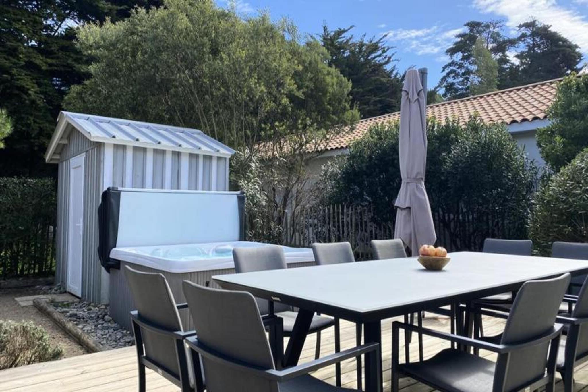 Dette feriehus p? 80 m², med tema omkring Tanzania, tilbyder et fredeligt tilflugtssted for op til 10 personer. Det har 4 sovev?relser med dobbeltsenge og en sovesofa til dobbeltseng i stuen. Hjemmet er k?ledyrsvenligt for dyr under 25 kg, mod et lille ekstra gebyr. Senget?j leveres, men h?ndkl?der er ikke inkluderet, med mulighed for leje. En privat spa til 6 personer er ogs? tilg?ngelig mod et ekstra gebyr, perfekt til at slappe af efter en dag med aktiviteter. Ejendommen er ikke egnet til st?jende k?ledyr, og g?ster bedes rydde op inden afrejse, medmindre de v?lger slutreng?ring. Beliggende i hjertet af Pays-de-Monts nationalskov, er hjemmet kun f? minutter fra stranden og omgivet af natursk?nne cykelstier. I n?rheden kan g?sterne udforske naturstier, slappe af p? stranden eller bes?ge lokale caf?er og markeder for at opleve regionens charme. De rolige skovmilj?er giver en fredfyldt kulisse for en afslappende ferie. Ejendommen omfatter et fuldt udstyret k?kken med ovn, k?leskab, fryser, opvaskemaskine, mikroovn, kaffemaskine og andre v?sentlige ting. Den rummelige opholdsstue har et fjernsyn med TNT-kanaler, og badev?relset er veludstyret med en h?rt?rrer. Nyd udend?rs spisning p? tr?terrassen med havem?bler, parasol og grillfaciliteter, perfekt til afslappede m?ltider.
