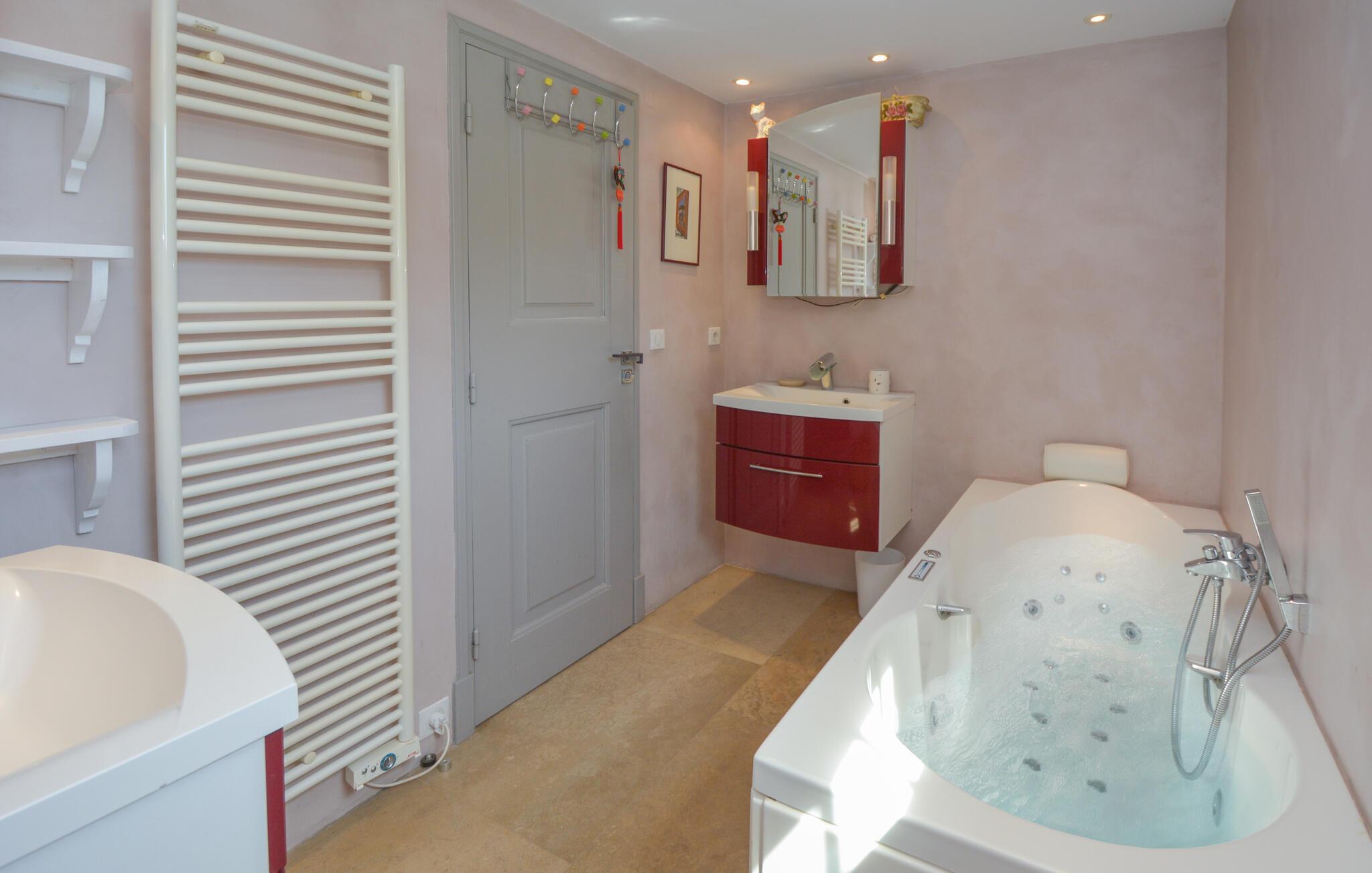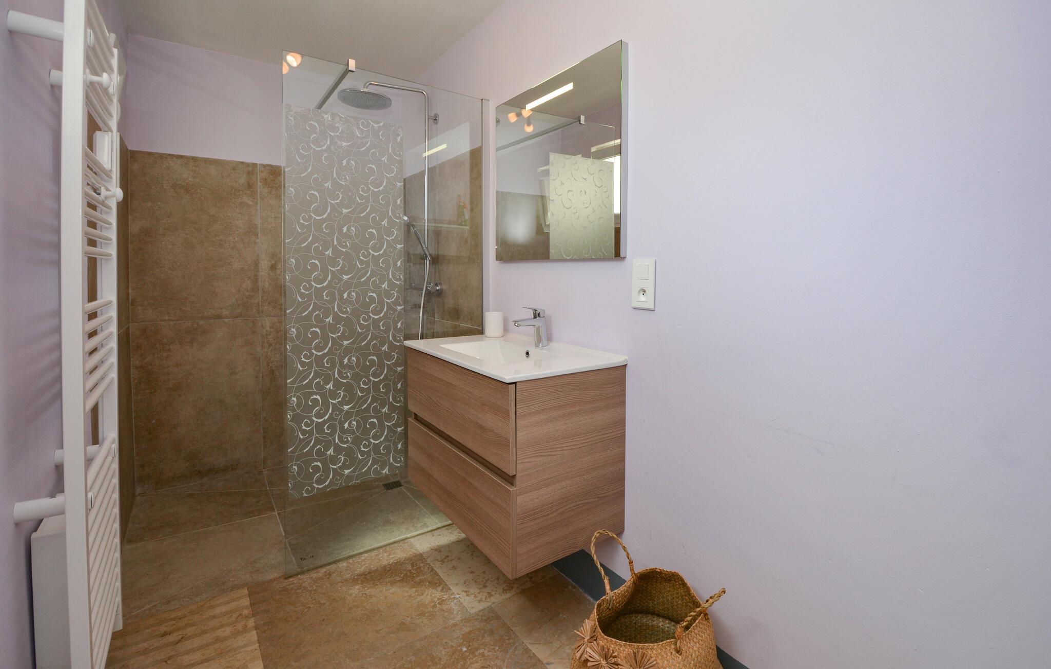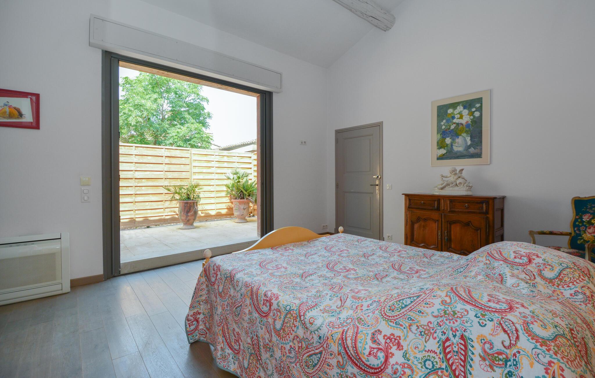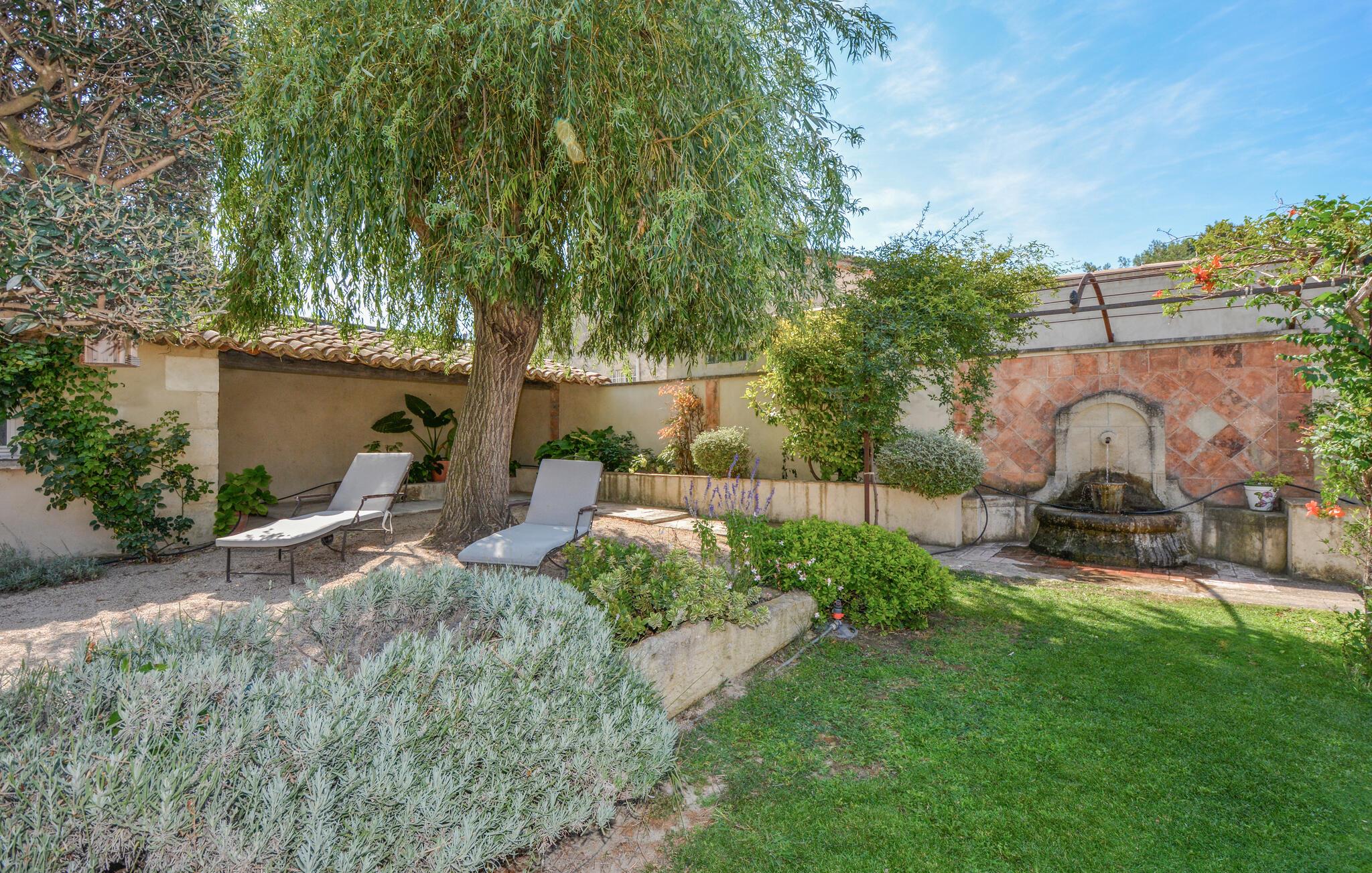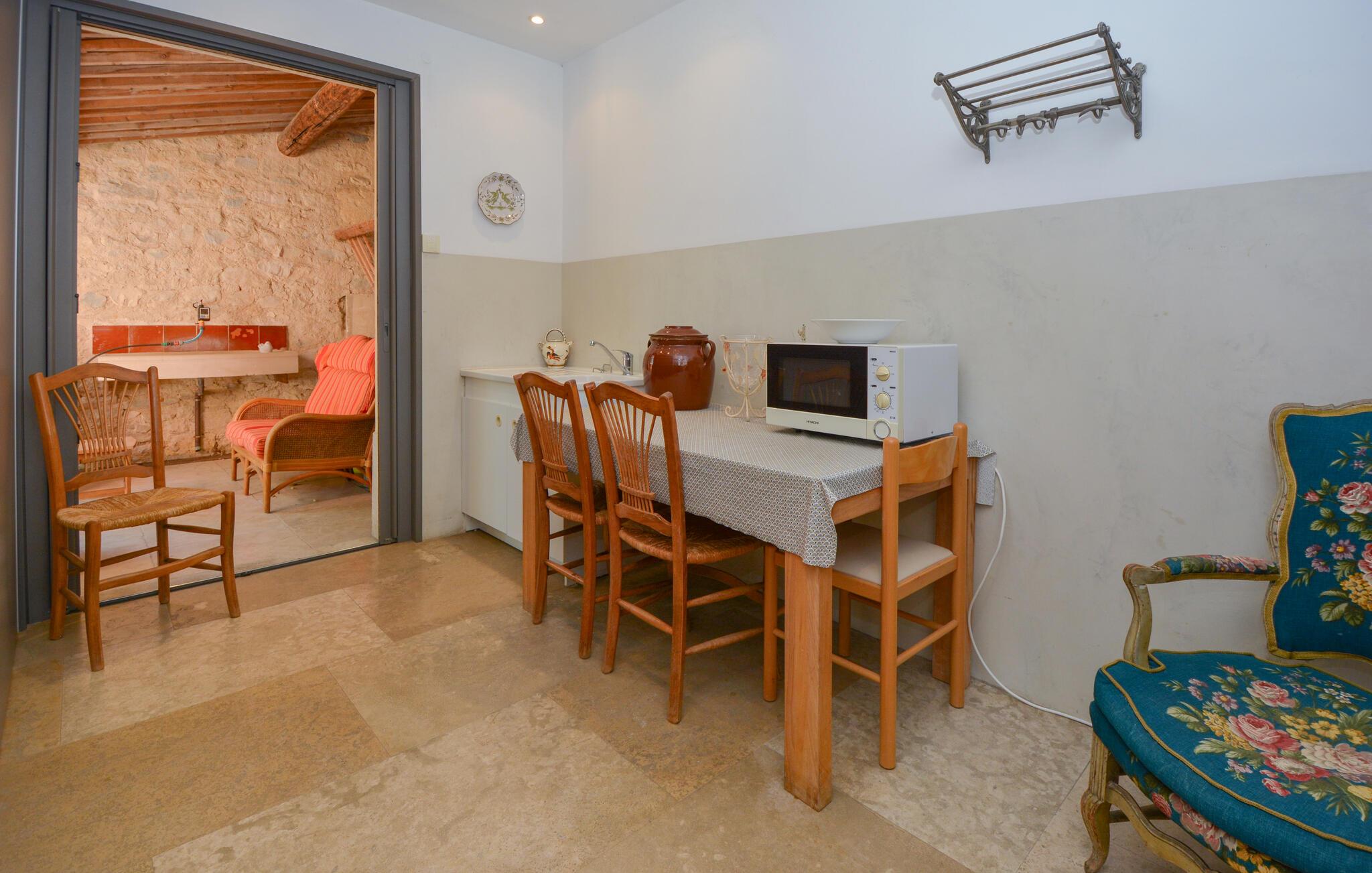 Velkommen til dette indbydende og hyggelige feriehus i Noves, hvor ædle materialer som sten, træ og jern skaber en unik atmosfære. Huset byder på store, lyse rum og giver med sin rummelighed den perfekte ramme for at nyde ferielivet i de smukt indrettede omgivelser. Læn jer tilbage på sofaerne eller tilbered lækre måltider i det store køkken.