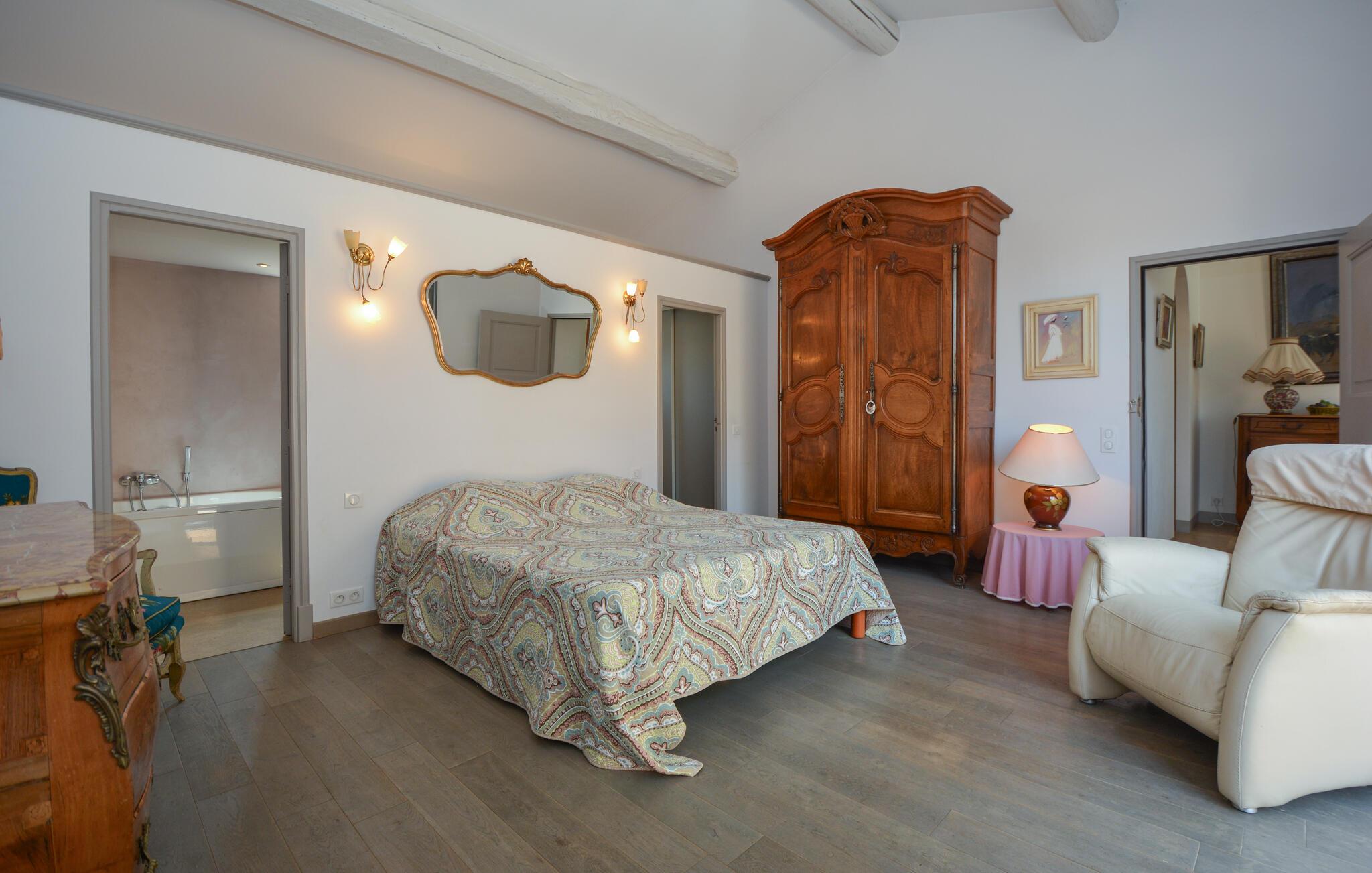 Nyd den opvarmede, overdækkede pool og de skyggefulde gårdhaver, der forfriskes af blidt rislende springvand. Den sydvendte terrasse inviterer jer til at nyde solens stråler fra Provence, inden I trækker jer tilbage til en af de kølige patioer. Dette feriehus er det perfekte sted til at opleve sommerens charme i Provence – ren afslapning.