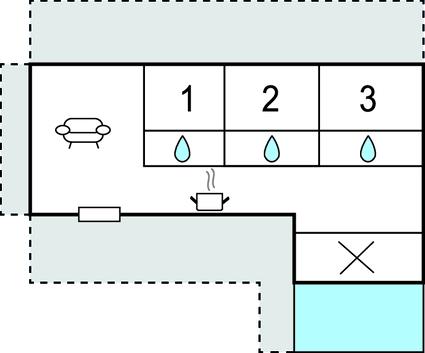 Køkkenet har v/k vand