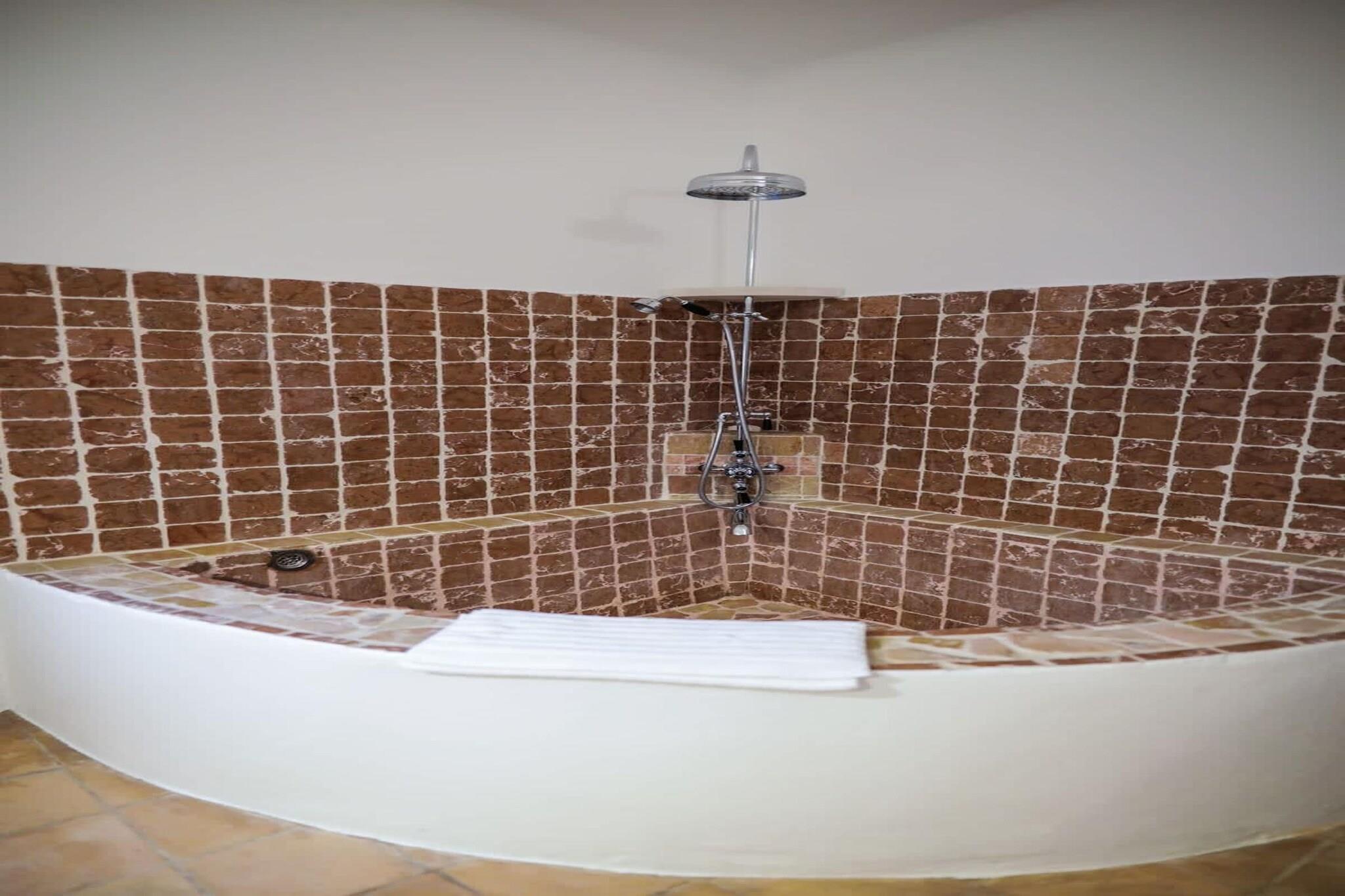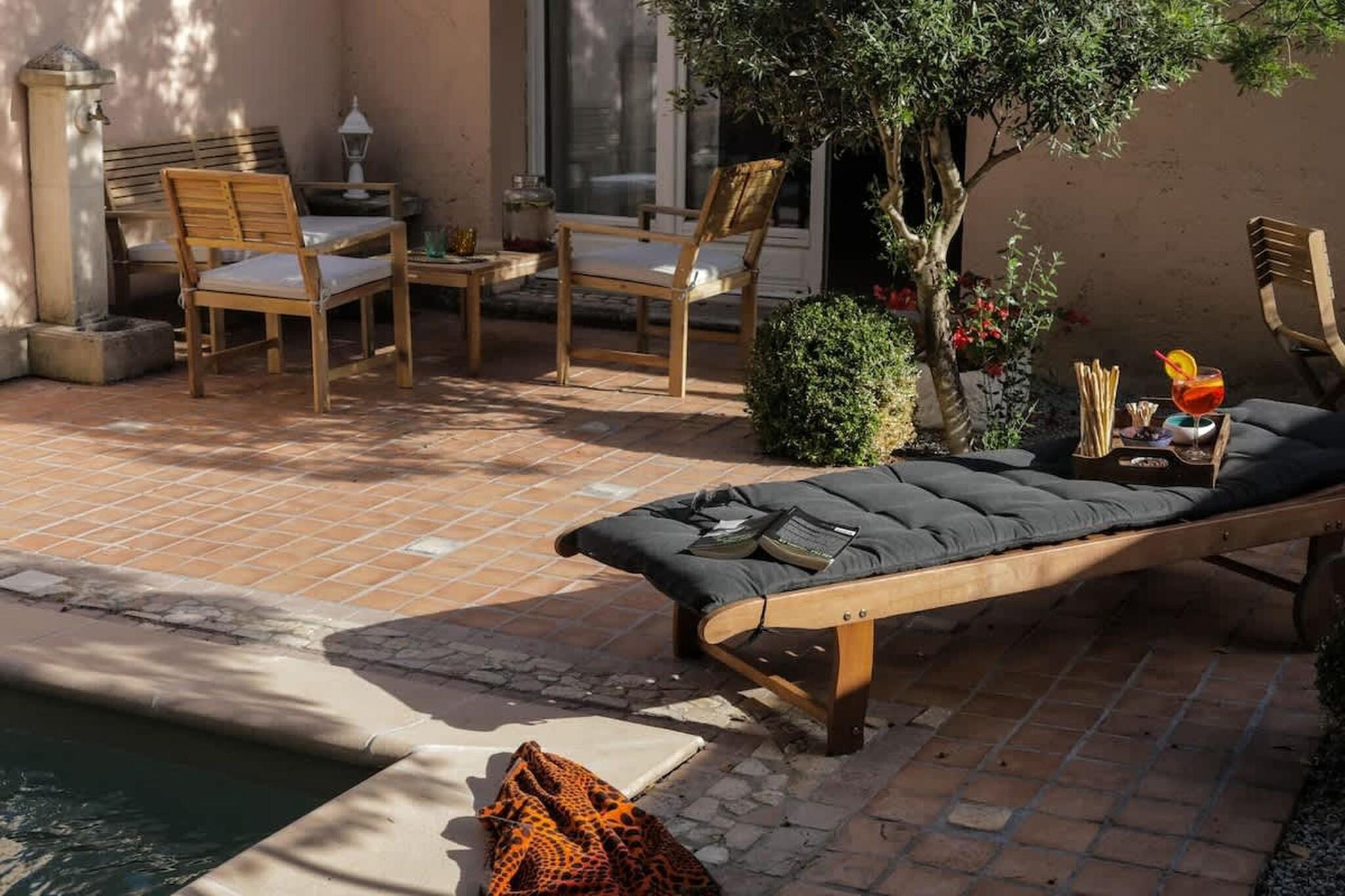 Du ankommer til et fredeligt sydligt hjørne af Noves, hvor gaderne snor sig gennem gamle stenhuse og lavendelduftende luft, der driver forbi i skumringen. Denne villa inviterer dig til at sætte farten ned og omfavne landsbyen med dens rolige, men alligevel fulde af sjæl, med middelalderporte, en romansk kirke, skyggefulde gyder og nem adgang til landskabet og småbylivet. Denne villa er ekstravagant i sine faciliteter, som inkluderer en sauna, hammam, et fitnesscenter og endda et projektionsrum. Den huser også en stor pool, jacuzzi og et sommerkøkken. Når du træder ind gennem hoveddøren, befinder du dig i en stor stue, der er forbundet med de 4 rummelige soveværelser med kingsize-senge, inklusive en lille have, veludstyrede moderne badeværelser og en terrasse med en parasol hver. Der er en fritliggende lejlighed i bondegården med en stue, en privat terrasse og to soveværelser med kingsize-senge og et fuldt møbleret badeværelse samt en anden uafhængig suite nær poolen med et dobbeltværelse og et ekstra værelse med en sovesofa, inklusive et badeværelse til ekstra gæster. Der er ingen adgang til køkkenet; I stedet vil værtinden og kokken være til rådighed for at tilbyde dig måltider, der opfylder dine ønsker. Yderligere faciliteter inkluderer – Wifi, aircondition, en 1,7 hektar stor park, hvor du kan udforske området, en vinkælder og et vaskerum for nemheds skyld. Under dit ophold vil du være omgivet af Noves charme, tage en slentretur gennem smalle middelalderlige gyder, kigge på gamle volde og den 12. århundredes kirke Saint Baudile, der minder om en dyb, rig historie. For naturelskere byder det omkringliggende landskab på afslappende vandreture, nemme køreture til nærliggende provencalske byer, vinmarker, markeder og grønne bjergskråninger.