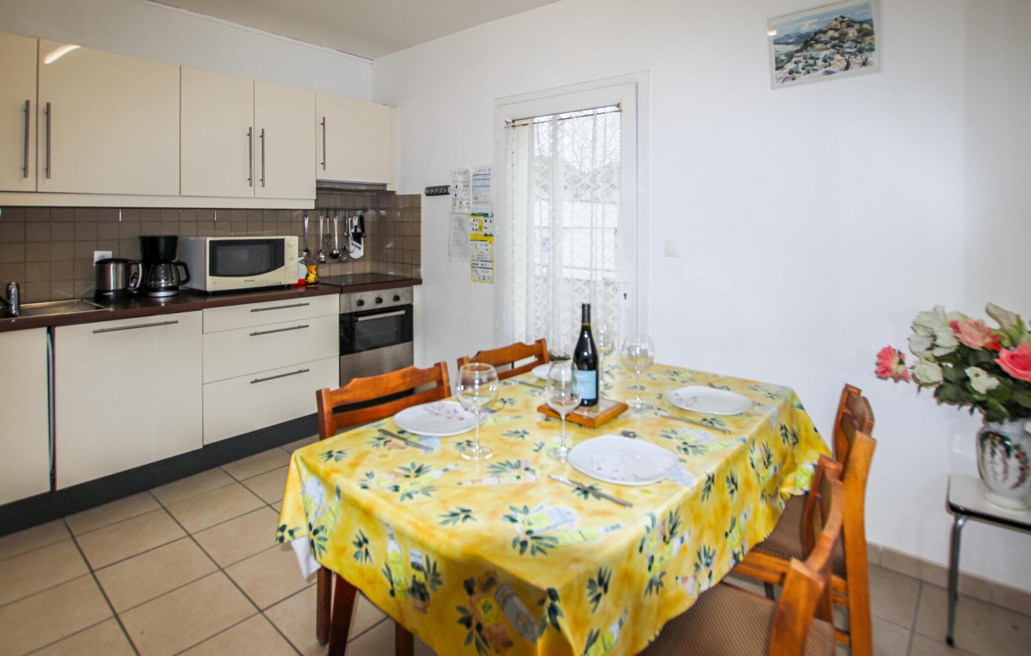 Træd indenfor og gør det behageligt i den indbydende stue med farverige polstrede møbler, hyggelige lænestole og store vinduer, der lukker masser af naturligt lys ind. Læn jer tilbage med en bog eller nyd rolige aftener i en indbydende atmosfære. Tilbered jeres måltider i det funktionelle køkken med det store spisebord. Slap af her ved dagens afslutning med et godt glas vin.