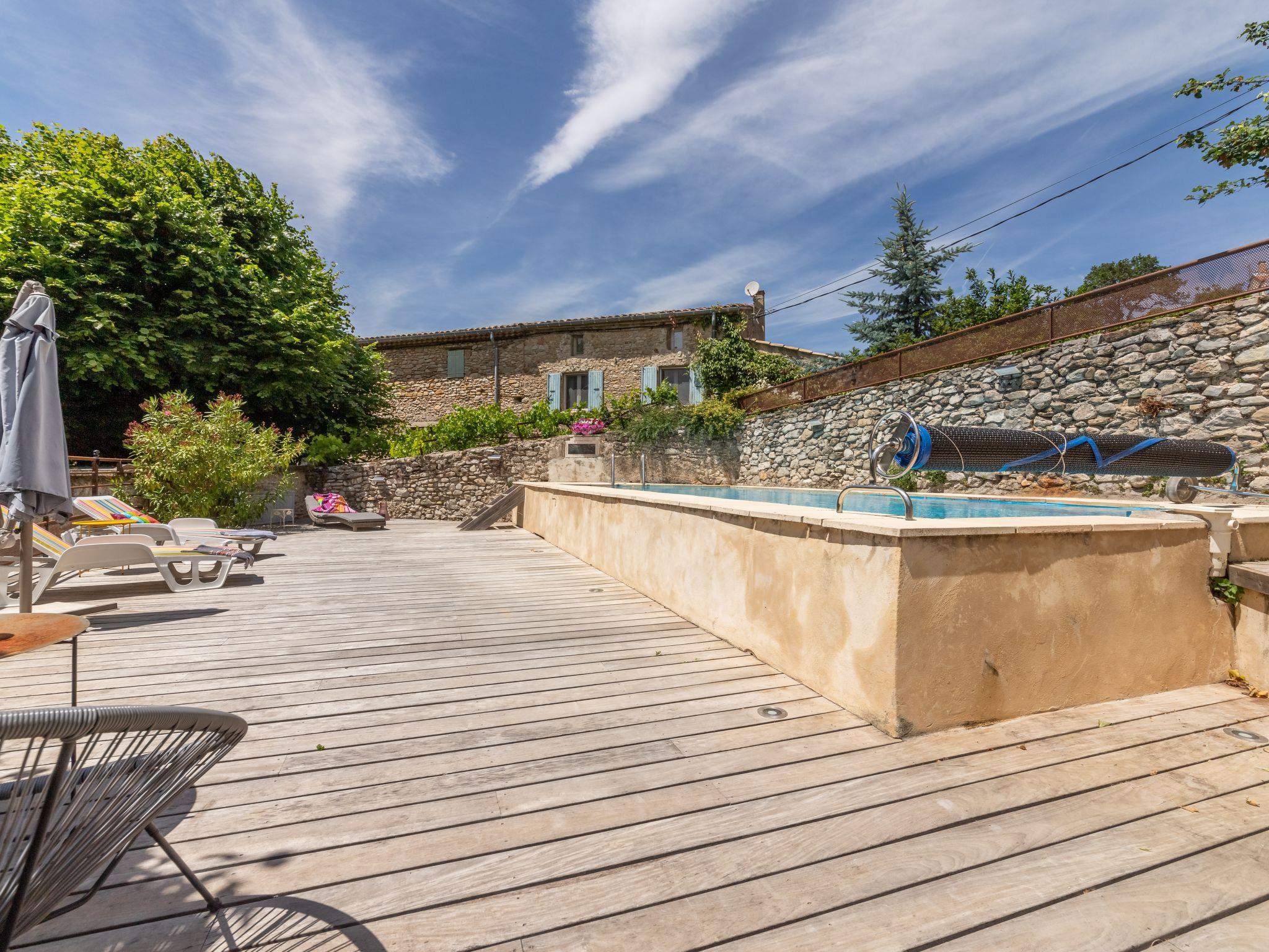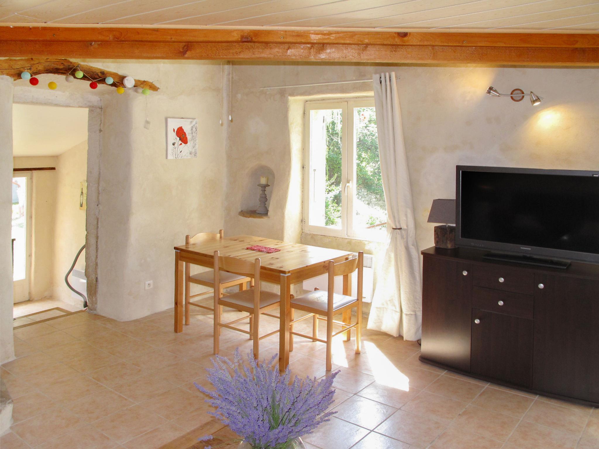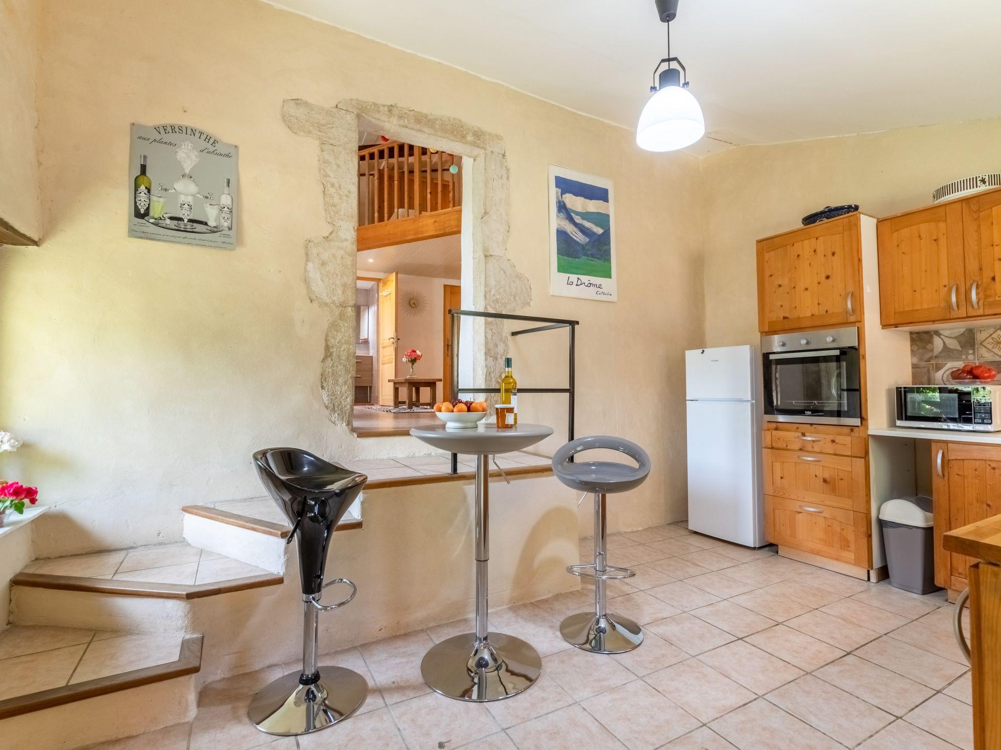 House "Chaud'abri", terraced, surrounded by meadows and fields. 5.5 km from the centre of Nyons, 1 km from the centre of Venterol, 50 km from the centre of Montelimar. For shared use: swimming pool (7 x 3 m, depth 130 cm, seasonal availability: 01.May. - 30.Sep.). Motor access (200 m via unmade road). Parking on the premises. Shop 5.5 km, restaurant 1 km, bar 1 km, bakery 1 km, bus stop "Office de Tourisme Nyons" 5 km, shingle beach "PLage du pont de la Lune" 5.3 km. Golf course (9 hole) 20 km, riding stable 6.9 km, walking paths from the house 3.6 km. Local sale of farm products. Please note: the owner lives on the same property.