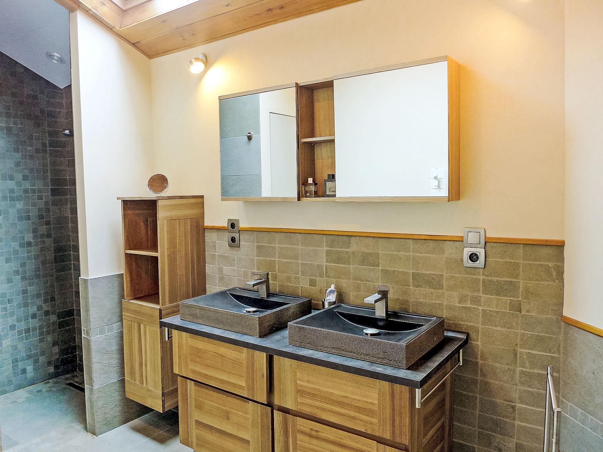 4-room house 100 m2 on 2 levels. Living/dining room with TV. 1 room with 1 double sofabed, shower/WC and TV. Kitchenette (4 hot plates, oven, microwave). Shower, sep. WC. Electric heating. Upper floor: 1 room with 1 french bed and hand-basin. 1 room with 2 beds. Terrace 50 m2, south facing position terrace, east facing position. Terrace furniture, barbecue. View of the forest. Facilities: washing machine. Internet (WiFi, extra). Parking (fenced 2 cars). Please note: smoke alarm. 40209000007Z8