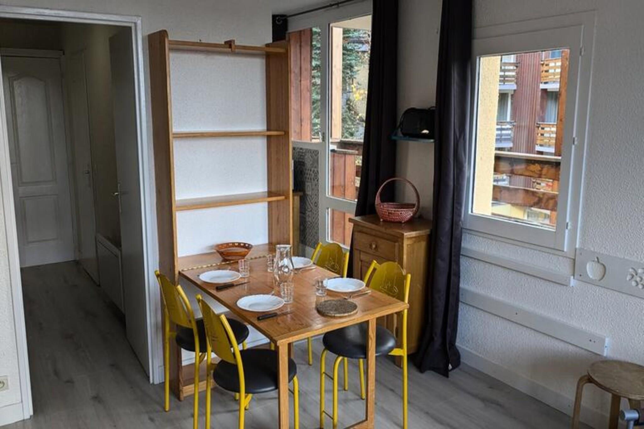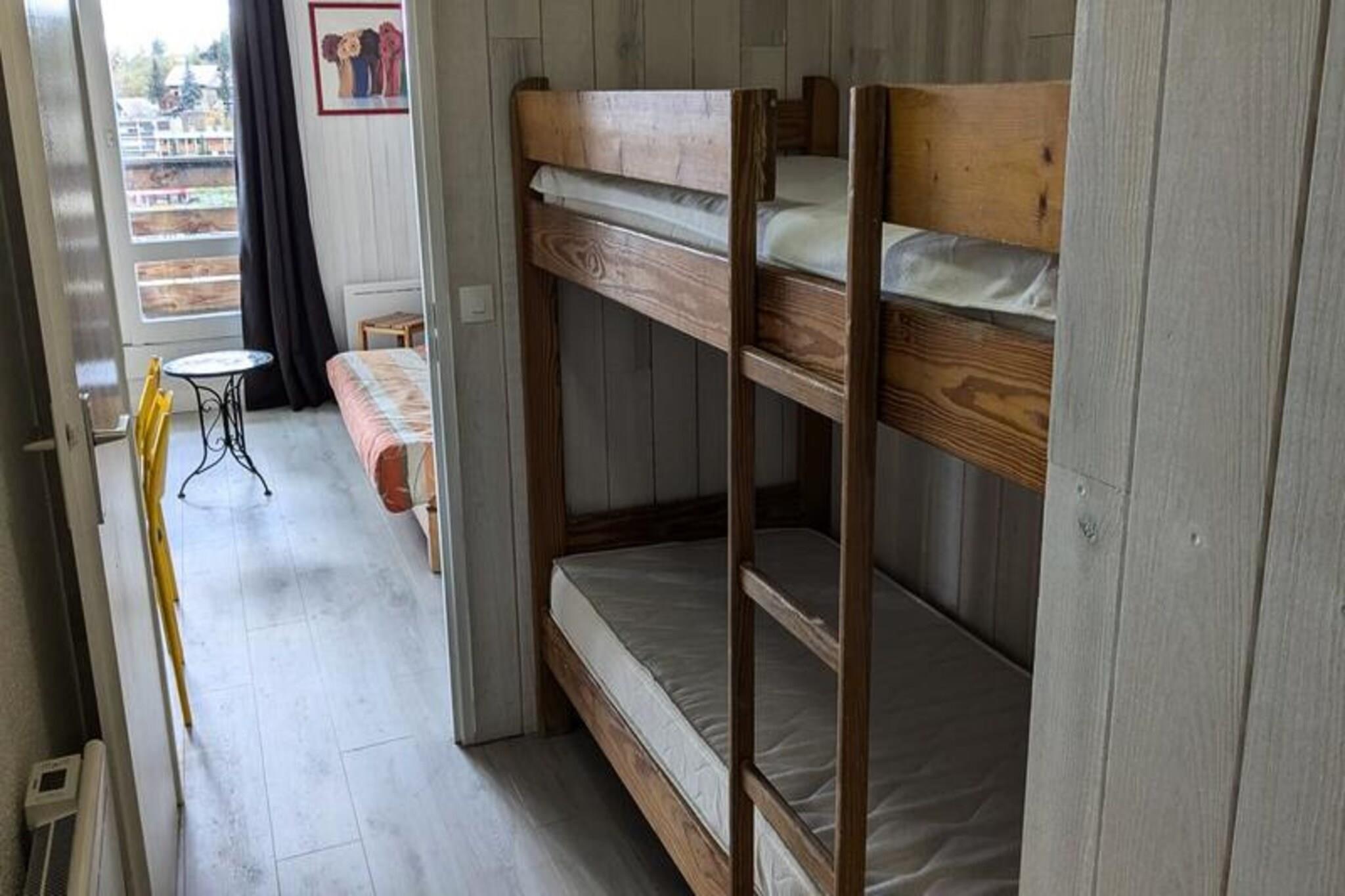 Maxi Estudio 30m²~~ 5 personas Balcón orientado al sur / suroeste 4to piso, con ascensor Mountain Corner: literas para 2 personas Salón: 1 sofá cama + 1 cama individual Cocina equipada Cuarto de baño: bañera + WC Local de esquí Apartamento luminoso, tranquilo y bien equipado. Se encuentra a pie de pistas de esquí, cerca de comercios y a 5 minutos a pie del polideportivo (zona de relajación y bienestar con piscina, bolera, pista de hielo, hammam, sauna, cine, etc.) En invierno, la retirada de nieve de logias o balcones no está incluida. No se proporcionan sábanas ni toallas. Disponible para alquiler. Calefacción - 1