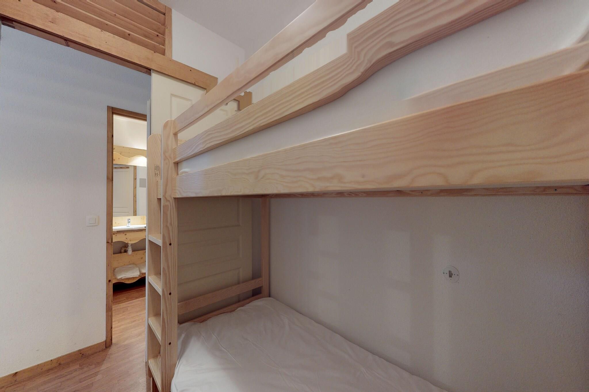 HAMEAU – FLAT 8 101 er en hyggelig 3-stjernet lejlighed på første sal i Le Hameau des Eaux d"Orelle-boligen, beliggende i hjertet af de 3 Vallées i Frankrig. Denne 31 m² store lejlighed er ideel for op til fire gæster og har en komfortabel stue med balkon og fjernsyn samt åbent køkken udstyret med køleskab, fryser, opvaskemaskine, mikroovn, kaffemaskine, elkedel og brødrister. Sovearrangementer inkluderer en dobbelt sovesofa i stuen (2x 80x190) og køjesenge i soveværelset (90x190). Lejligheden har et badeværelse med badekar, et separat toilet og en balkon med fantastisk udsigt over bjergene et wellness-område med en indendørs pool og sauna, et skirum og vaskefaciliteter i bygningen (mod betaling) En udendørs parkeringsplads er tilgængelig, afhængigt af tilgængelighed, og kæledyr er velkomne. Bekvemt beliggende 1 km fra svævebanen og betjenes af en gratis shuttlebus om vinteren, har boligen også butikker på stedet, herunder en turistskat og et refunderbart depositum, mens valgfrie tjenester såsom sengelinned, håndklæder, slutrengøring og gourmetkurve er tilgængelige. Alpvision giver eksklusive rabatter på leje af skiudstyr, lektioner og mere, hvilket sikrer en afslappende og mindeværdig alpine ferie.