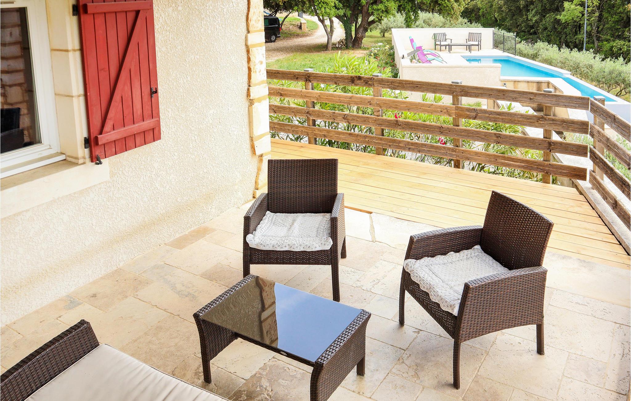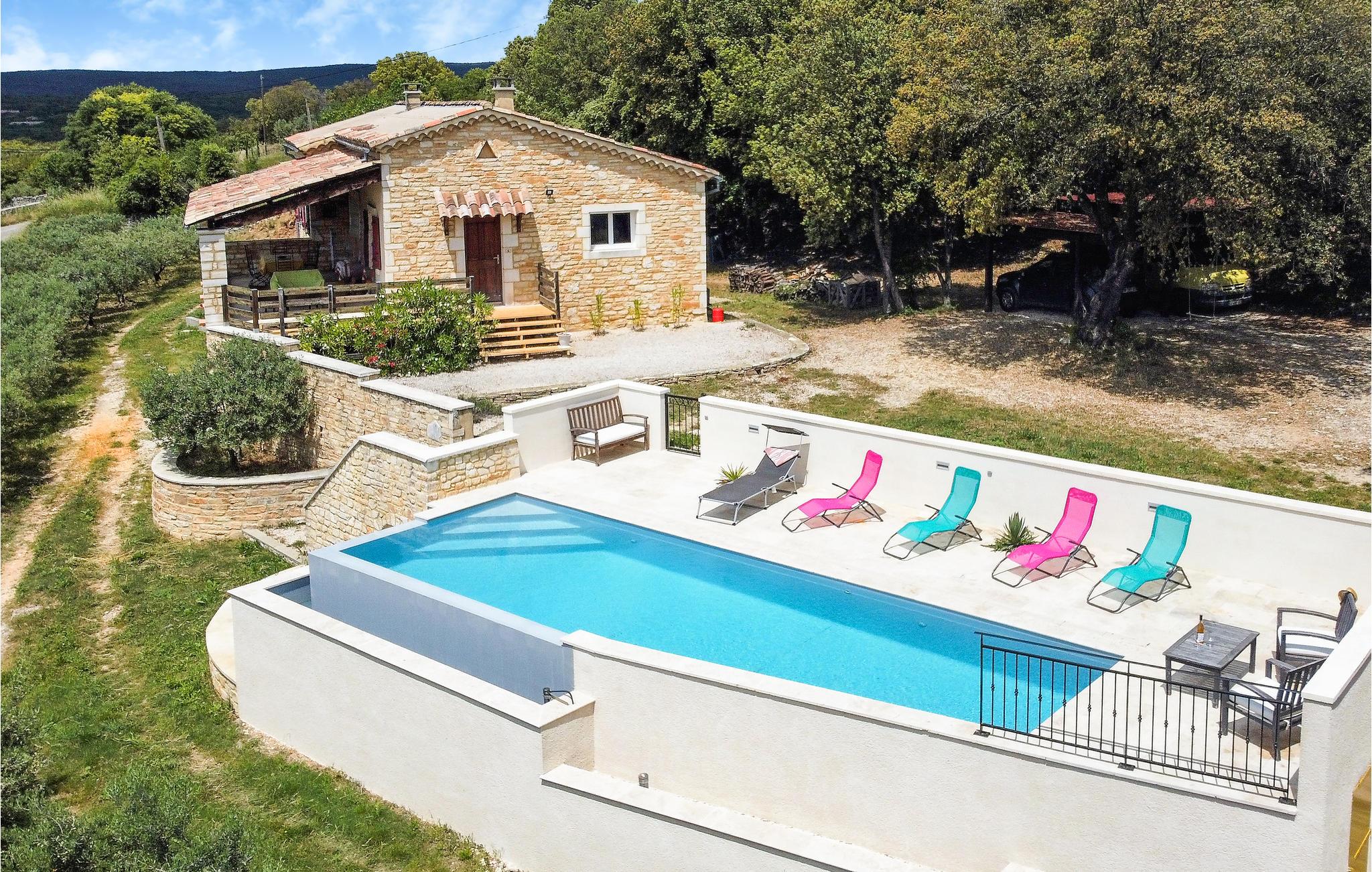 Syd for Ardèche, i landlige omgivelser, ligger dette storslåede feriehus omgivet af oliventræer. Her får I en højkvalitets møbleret indretning, der gør et rustikt og stilrent indtryk. Drag fordel af det moderne køkken og Find jer godt til rette i den behagelige, lyse atmosfære.