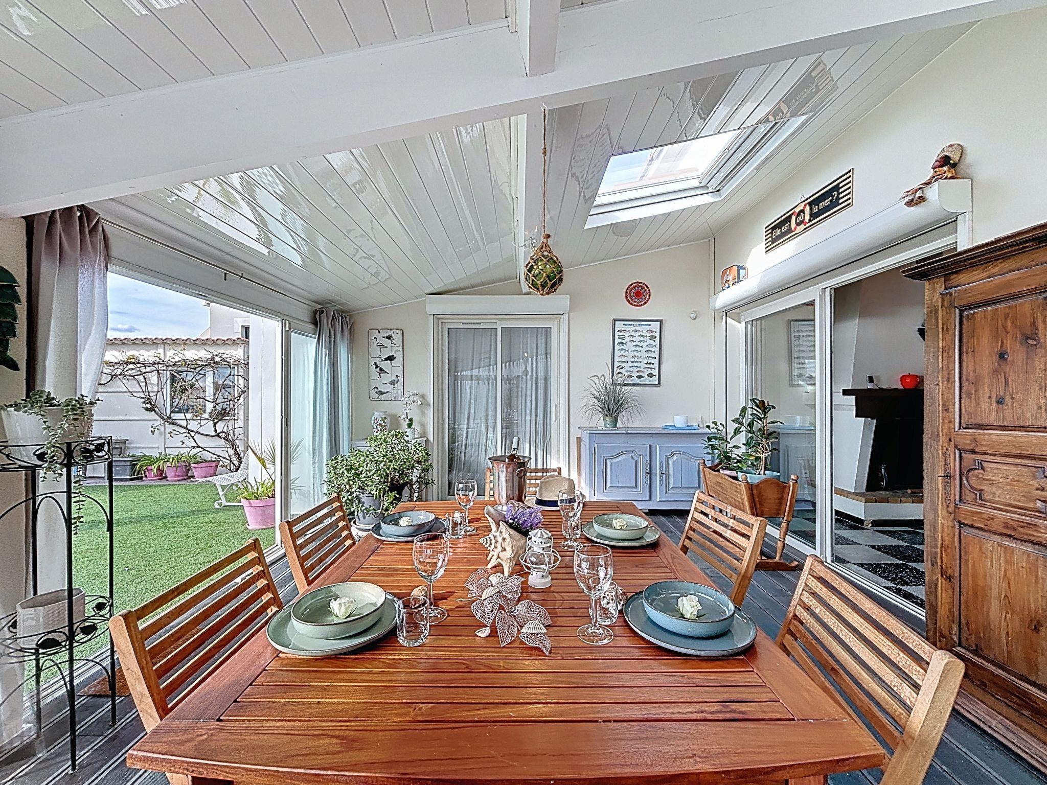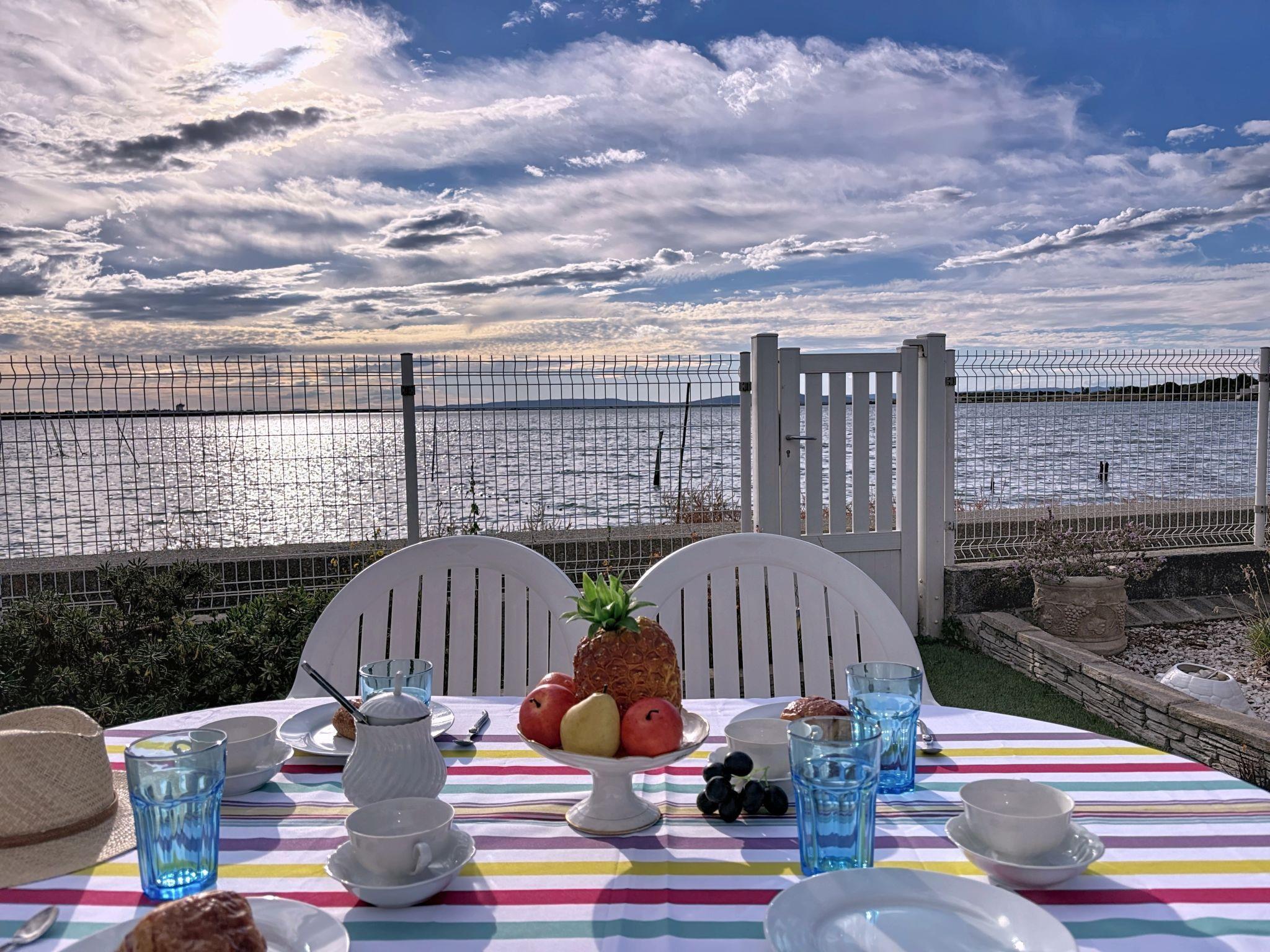 "Les Cabanes de Pérols", 3-room house 104 m2 on 2 levels, south facing position. Spacious, comfortable and beautiful furnishings: living/dining room with veranda with open-hearth fireplace, dining table and TV (flat screen), air conditioning and forced-air heating. Exit to the veranda. 1 large room with 1 french bed (140 cm, length 200 cm), TV (flat screen), air conditioning and forced-air heating. Exit to the veranda. Kitchen (oven, dishwasher, 3 induction hot plates, toaster, kettle, microwave, freezer, electric coffee machine, Capsules for coffee machine (NESPRESSO) extra). Shower, sep. WC. Electric heating. Upper floor: open gallery with sloping ceilings, ceiling height 130 - 220 cm with 1 french bed (140 cm, length 190 cm). Garden 229 m2, south facing position. Terrace furniture, barbecue electric barbecue, deck chairs. Very beautiful view of the ponds. Facilities: washing machine. Internet (WiFi, free). Parking (fenced 1 car). Please note: suitable for families. Non-smoking house. Smoke alarm. Offer by a private individual according to Art. 155, IV of CGI. 0768107864258