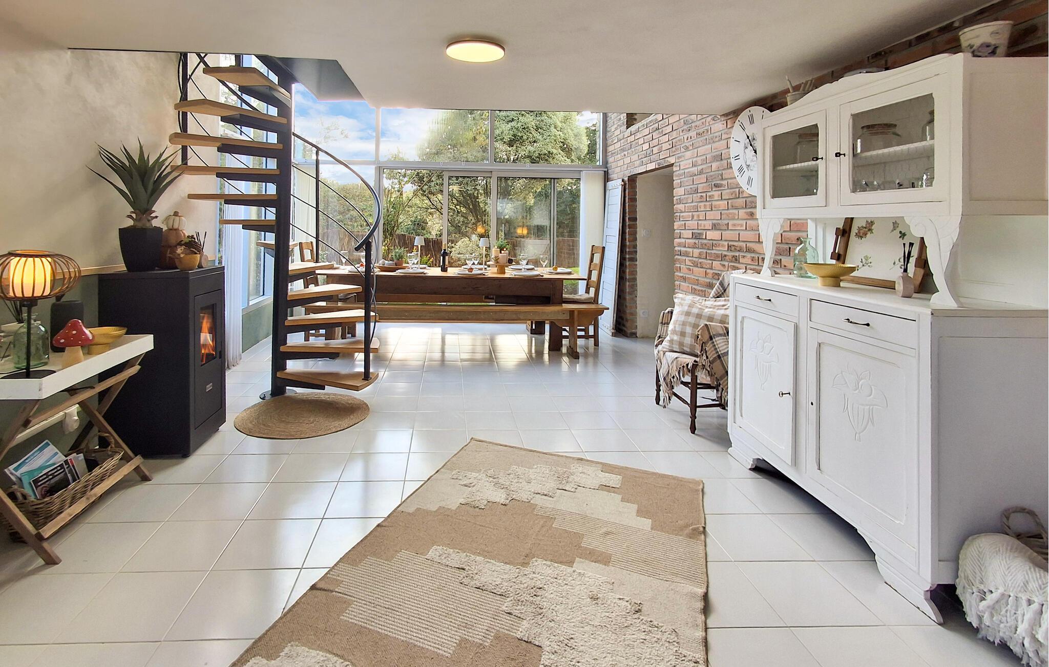 Dette stilfulde hus venter jer med masser af lys, charme og karakter. Den store spisestue med gulv-til-loft-vinduer åbner op til udsigt over den grønne have og tilbyder en dejlig ramme for fælles måltider med familie eller venner. På kølige aftener skaber pilleovnen en hyggelig atmosfære, mens den åbne galleri på første sal med sin hyggelige stue og lille læseområde lægger op til at slappe af.