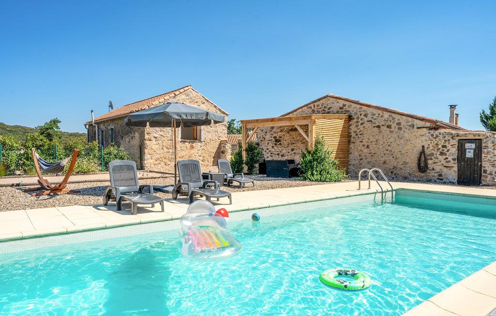 Dette skønne oprindelige bondehus i Hérault har egen pool, ugenerte rammer og en fantastisk udsigt til smuk natur.