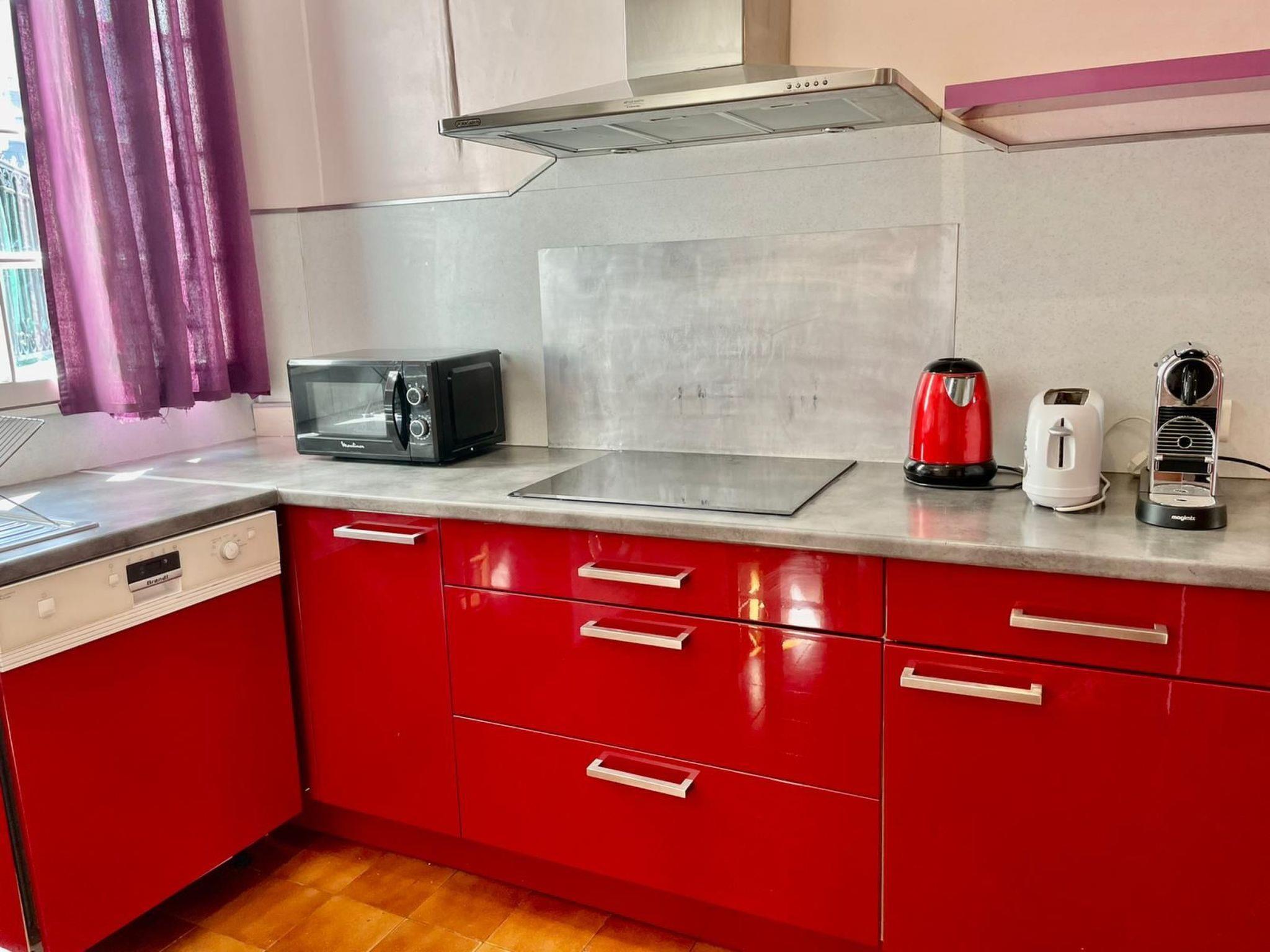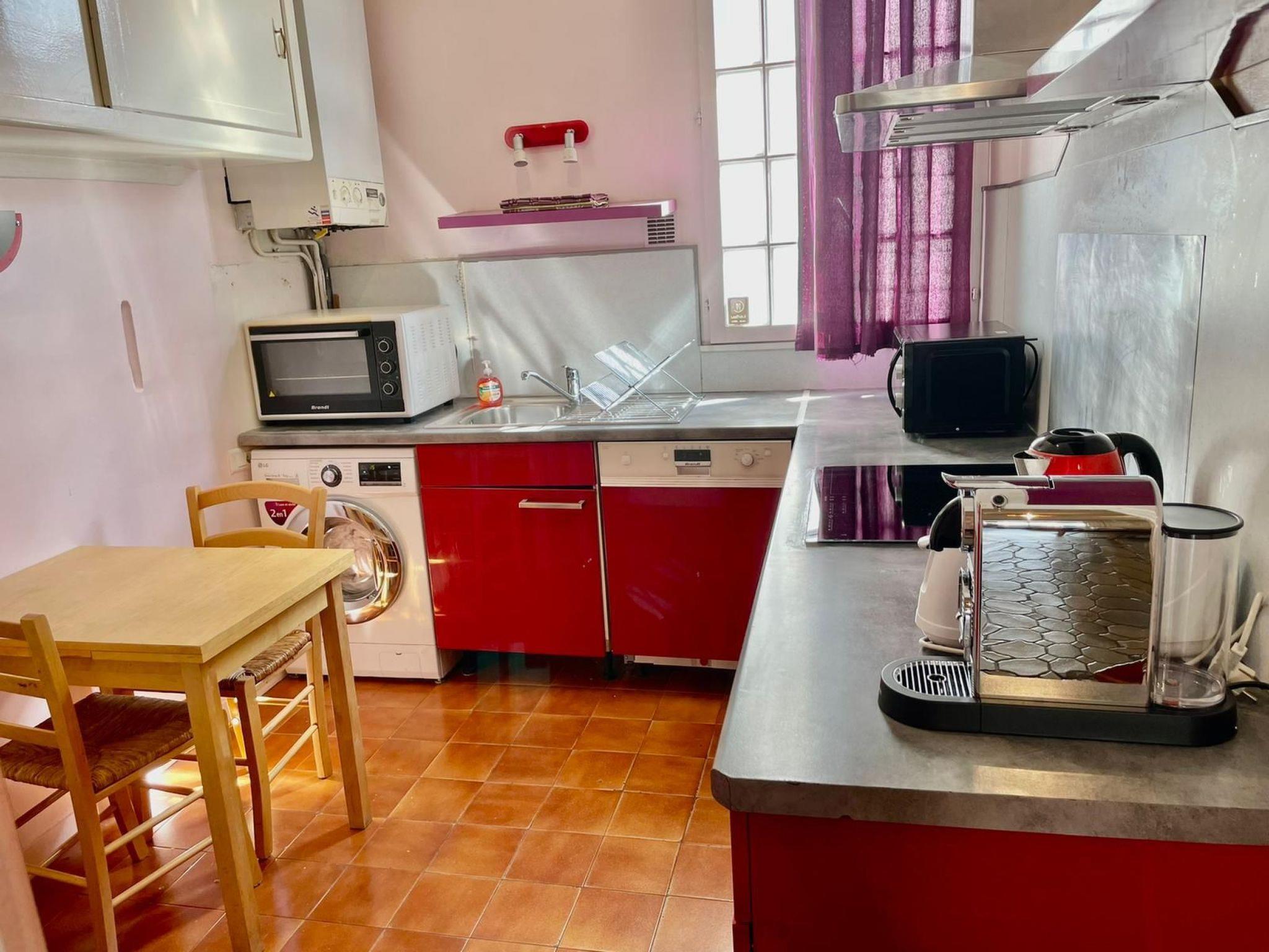 Inside, the flat is equipped to meet all your needs during your stay. You'll find a practical, well-appointed kitchen with a three-ring hob, an induction hob, two types of coffee maker (filter and pod), and a dishwasher for easy group meals. The living space also includes essentials such as a washing machine and tumble dryer for private use, guaranteeing all the autonomy you need for an extended stay. Evenings will be warm and cosy around the fireplace, while the fans available ensure your comfort on hot summer days.