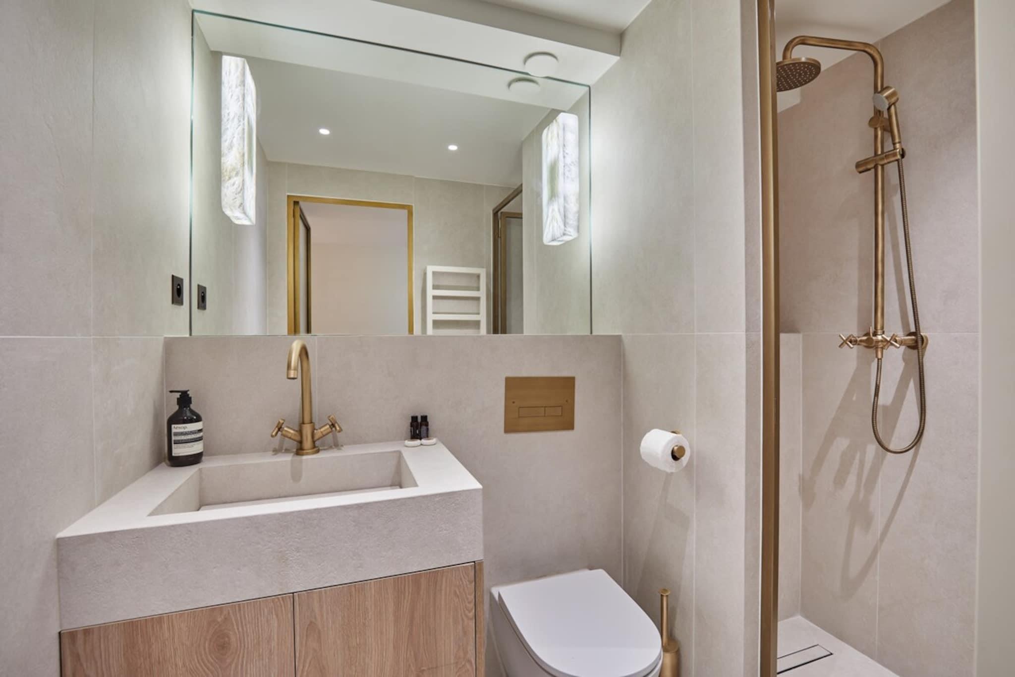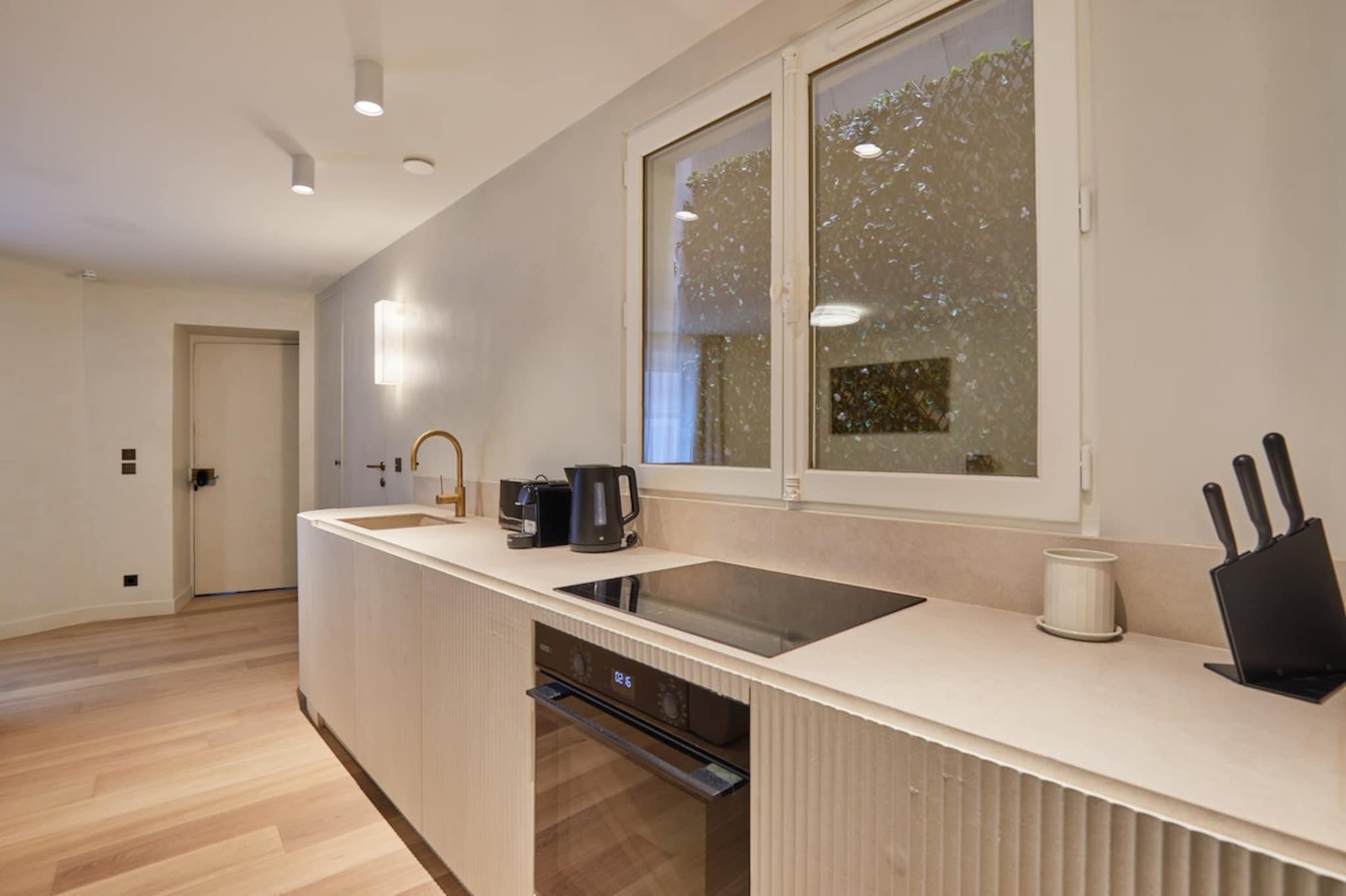 På 1. etage: (Stue(dobbeltsovesofa), Køkken(spisebord, elkedel, brødrister, kaffemaskine, mikrobølgeovn, opvaskemaskine , køleskab, fryser, varme, , , Baking sheet, Wine glasses), soveværelse(Queen Bed), Soveværelse med badeværelse(bruser, toilet, Queen Bed), badeværelse(bruser), toilet(toilet)) , , , Førstehjælp, Fjernsyn, tørretumbler, vaskemaskine, klimaanlæg, strygejern, føntørrer, , , Carbon monoxide detector, Cleaning products, Coffee, Downtown, Extra pillows and blankets, Room-darkening shades, Shower gel