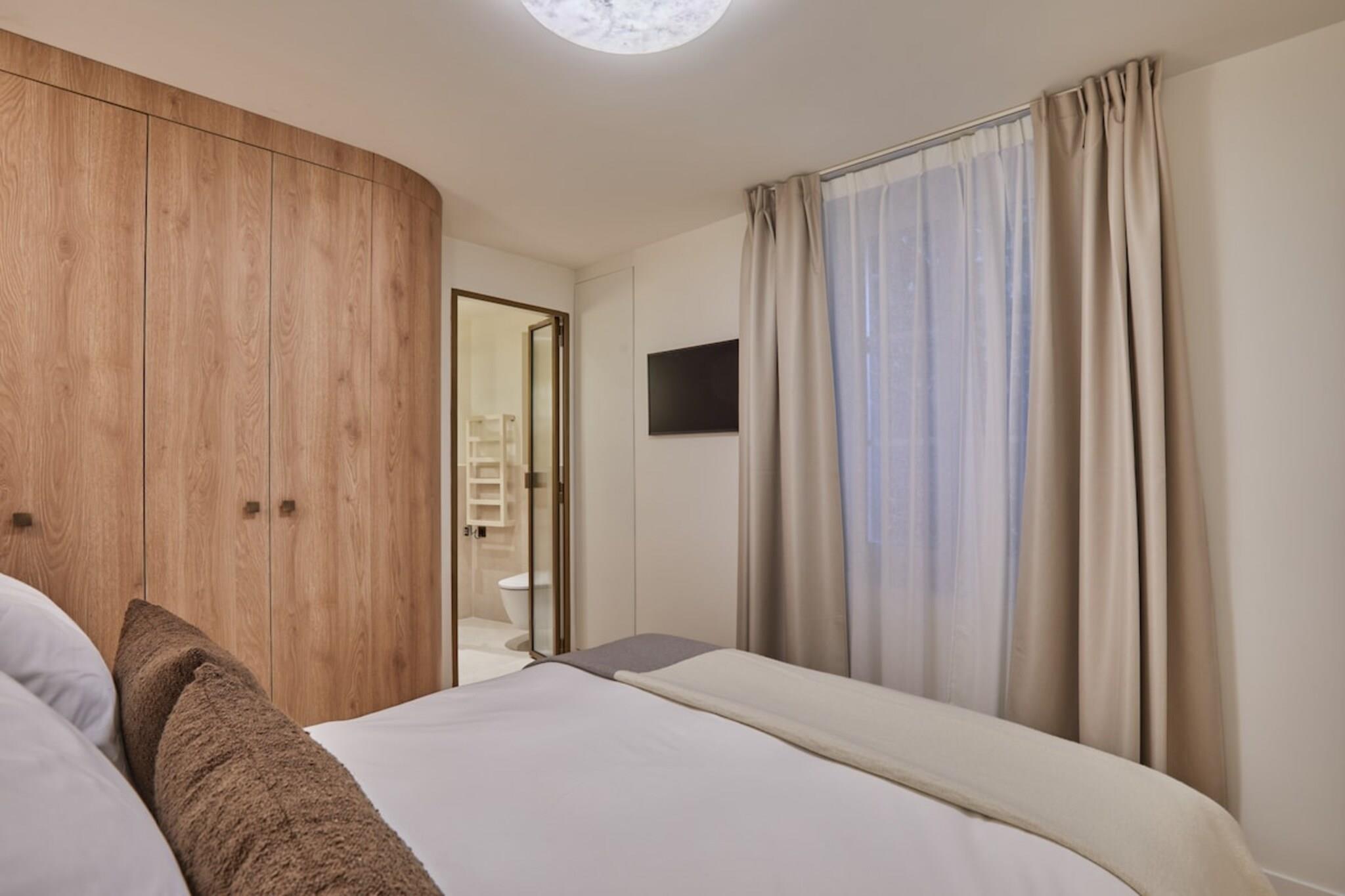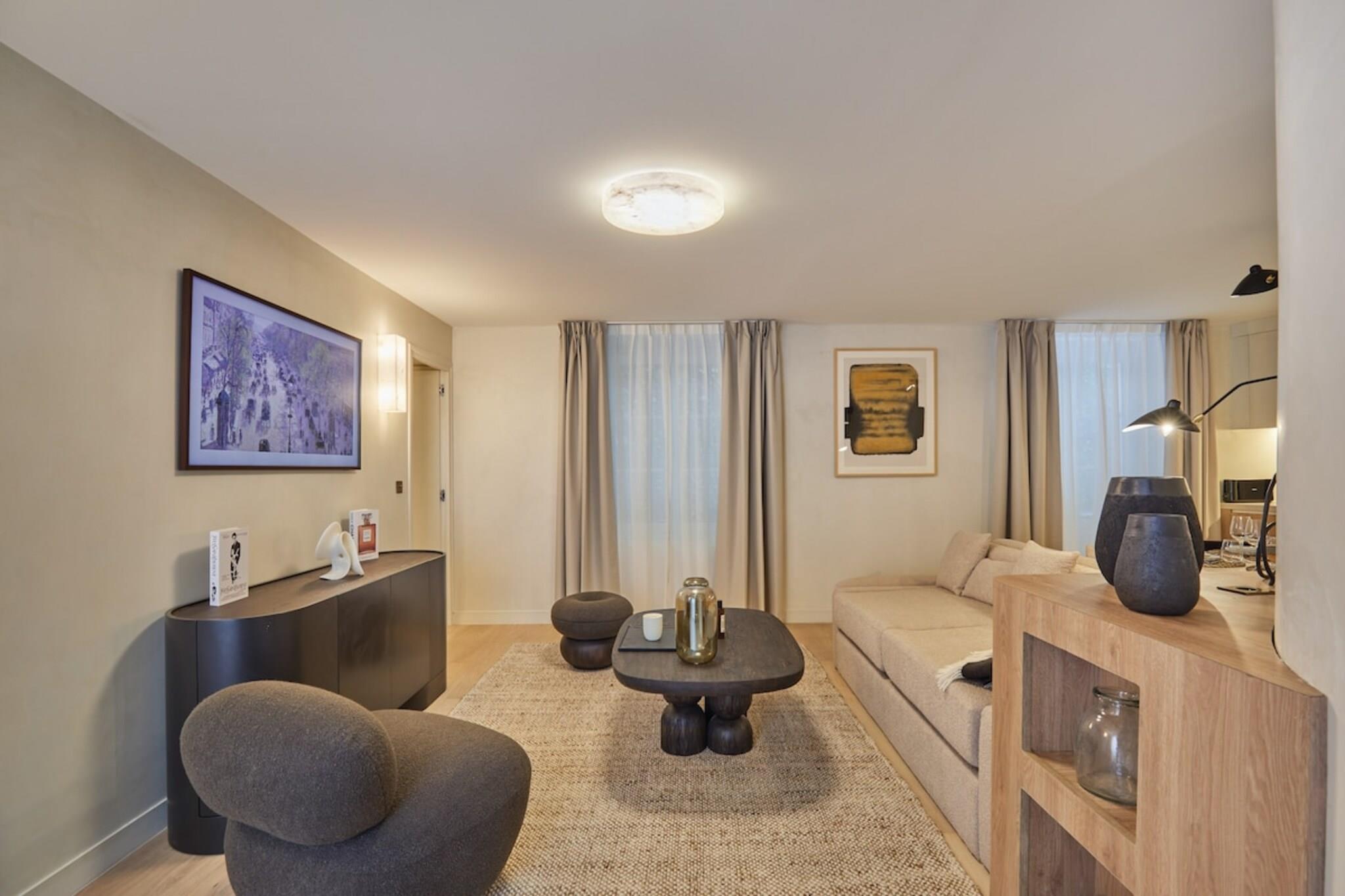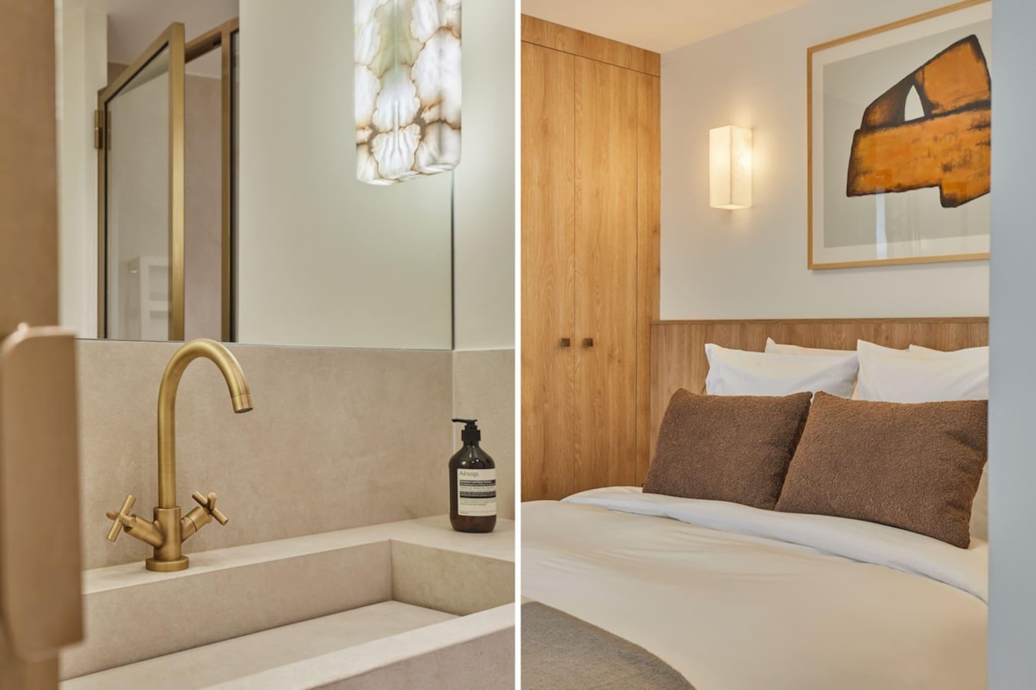 På 1. etage: (Stue(dobbeltsovesofa), Køkken(spisebord, elkedel, brødrister, kaffemaskine, mikrobølgeovn, opvaskemaskine , køleskab, fryser, varme, , , Baking sheet, Wine glasses), soveværelse(Queen Bed), Soveværelse med badeværelse(bruser, toilet, Queen Bed), badeværelse(bruser), toilet(toilet)) , , , Førstehjælp, Fjernsyn, tørretumbler, vaskemaskine, klimaanlæg, strygejern, føntørrer, , , Carbon monoxide detector, Cleaning products, Coffee, Downtown, Extra pillows and blankets, Room-darkening shades, Shower gel