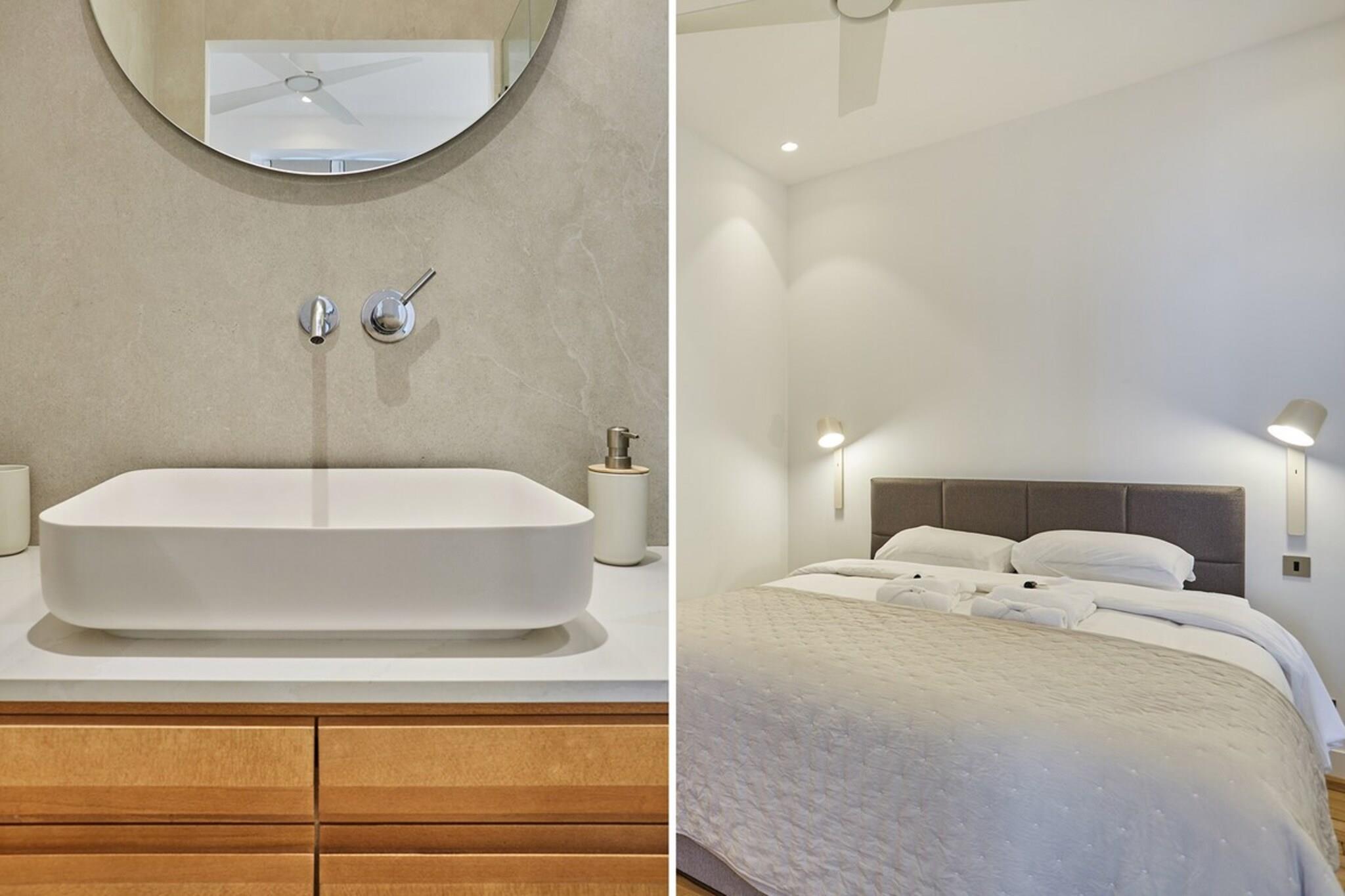 På 1. etage: (Stue(dobbeltsovesofa), Køkken(spisebord, elkedel, brødrister, kaffemaskine, mikrobølgeovn, opvaskemaskine , køleskab, fryser, varme, , , Baking sheet, Wine glasses), soveværelse(dobbeltseng), soveværelse(dobbeltseng), badeværelse(bruser), badeværelse(bruser, toilet), toilet(toilet)) , , , Førstehjælp, Fjernsyn, tørretumbler, vaskemaskine, klimaanlæg, strygejern, føntørrer, , , Carbon monoxide detector, Cleaning products, Coffee, Downtown, Extra pillows and blankets, Room-darkening shades, Shower gel