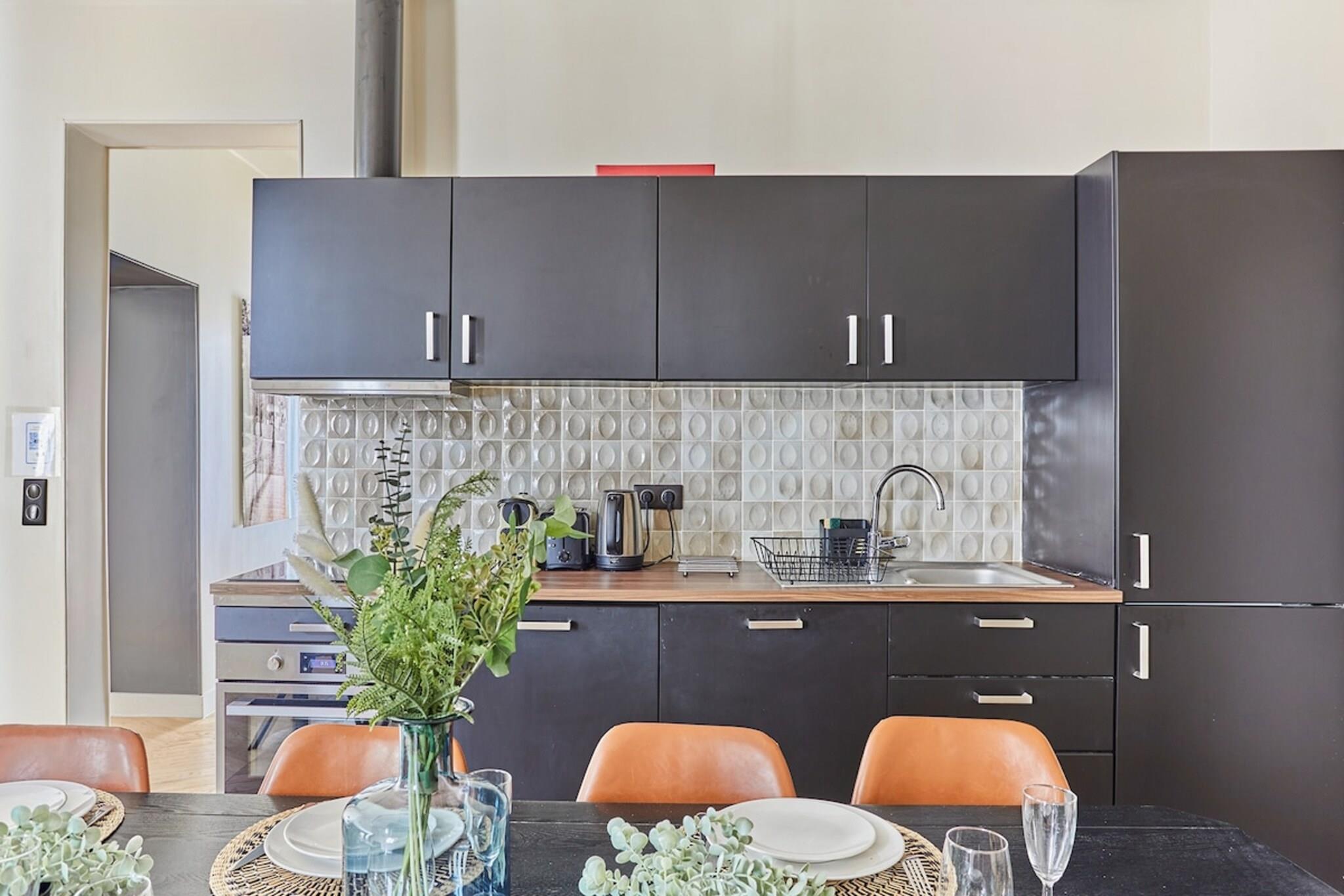 På 1. etage: (Stue(enkeltseng, enkeltseng), Køkken(spisebord, elkedel, brødrister, kaffemaskine, mikrobølgeovn, opvaskemaskine , køleskab, fryser, , Baking sheet, Coffee, Wine glasses), soveværelse(Queen Bed), soveværelse(Queen Bed), soveværelse(Queen Bed), badeværelse(bruser, toilet, føntørrer), badeværelse(badekar, toilet), badeværelse(bruser), badeværelse(toilet)) , , , Førstehjælp, Fjernsyn, tørretumbler, vaskemaskine, varme, klimaanlæg, strygejern, føntørrer, crib(free), , , , Baking sheet, Carbon monoxide detector, Downtown, Shower gel