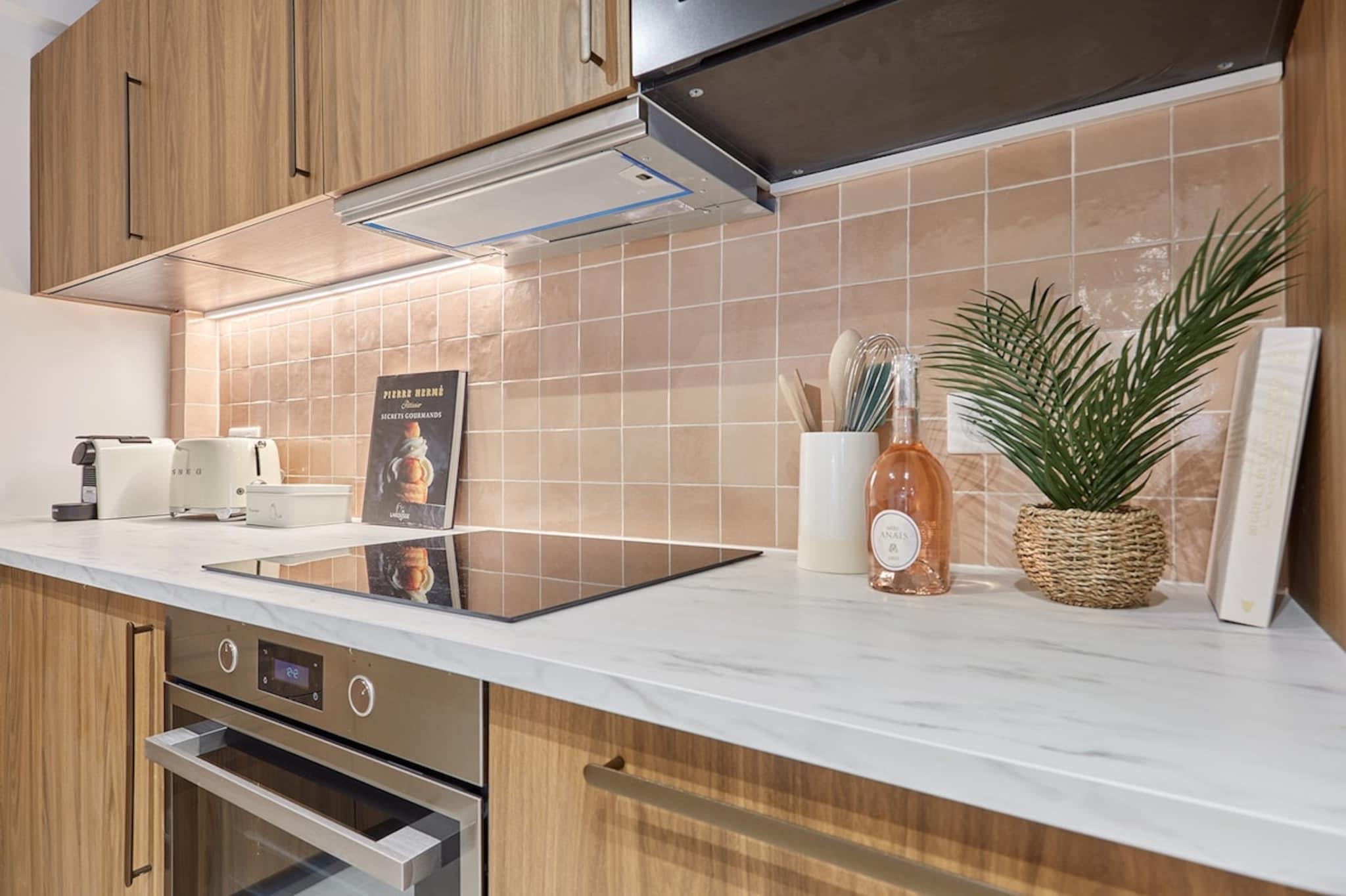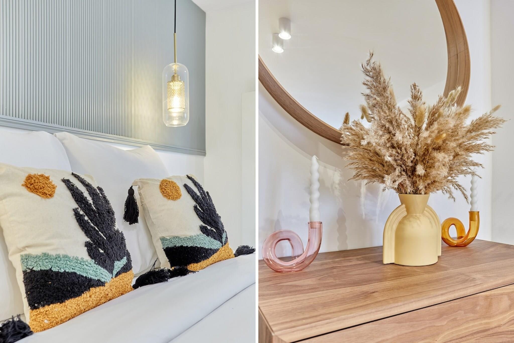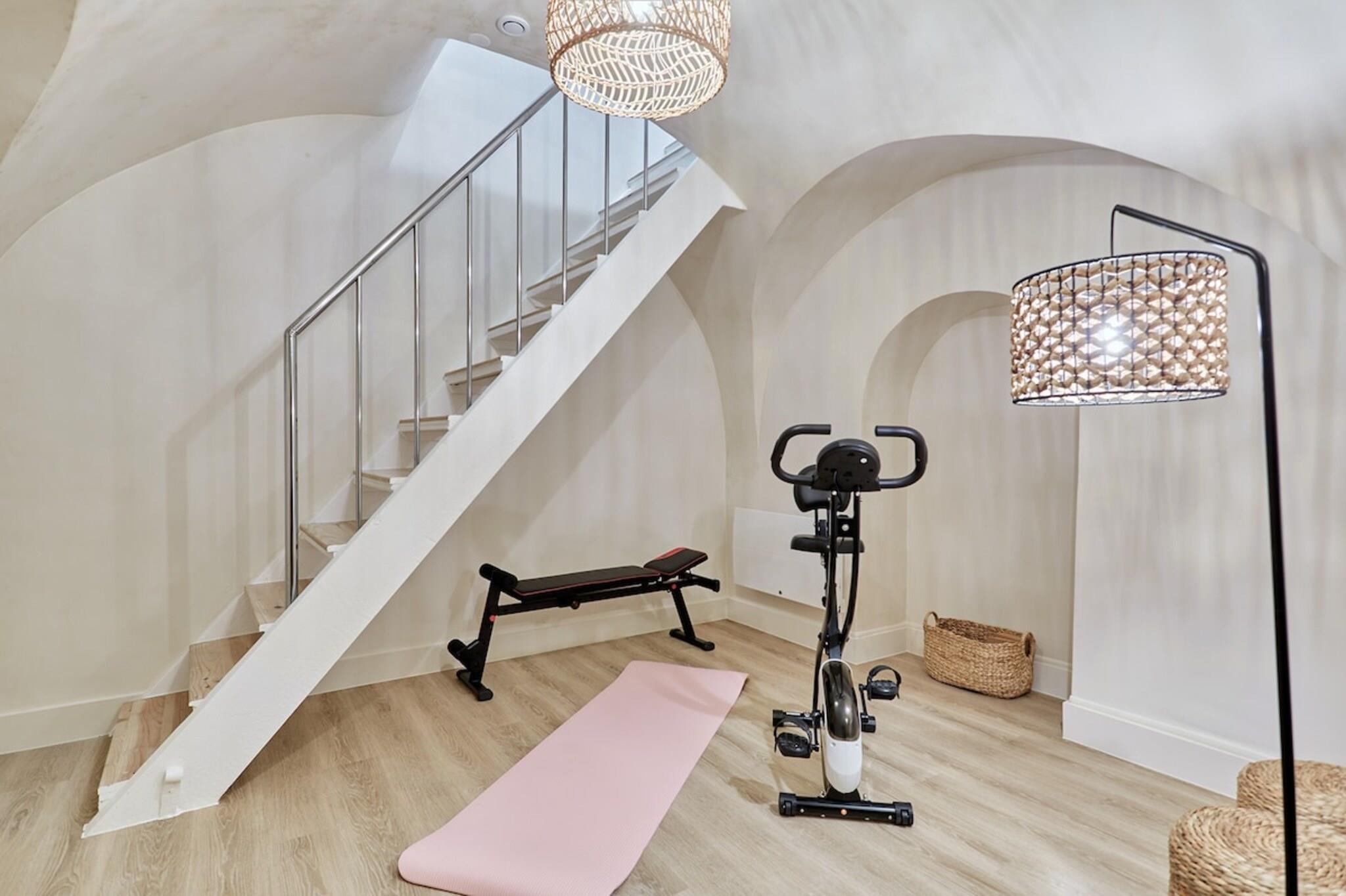 Stueetage: (soveværelse(Fjernsyn, Queen Bed), soveværelse(Fjernsyn, Queen Bed), badeværelse(bruser, håndvask, toilet)) På 1. etage: (Stue(enkeltsovesofa, Fjernsyn), åbent køkken(spisebord, kogeplade, elkedel, brødrister, kaffemaskine, ovn, mikrobølgeovn, opvaskemaskine , køleskab, fryser, , , Baking sheet, Coffee, Wine glasses), badeværelse(bruser, håndvask), toilet) , , , , Førstehjælp, tørretumbler, vaskemaskine, varme, klimaanlæg, strygejern, føntørrer, , , , , Carbon monoxide detector, Downtown, Shower gel