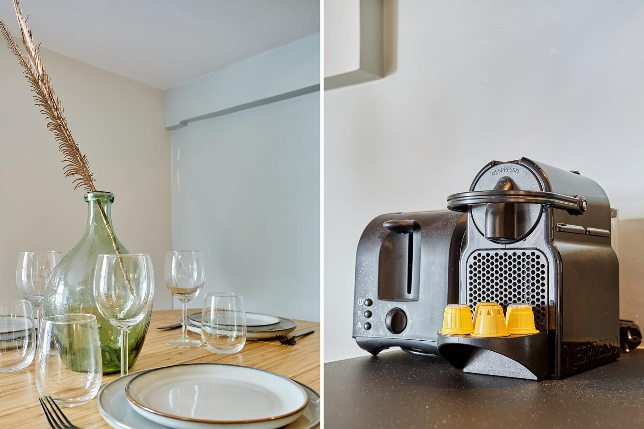 På 1. etage: (Køkken(elkedel, brødrister, kaffemaskine, mikrobølgeovn, køleskab, varme, , , Baking sheet, Wine glasses), Stue/soveværelse(, , enkeltsovesofa, Fjernsyn, Queen Bed), badeværelse(bruser, toilet, , Shower gel)) , Førstehjælp, klimaanlæg, strygejern, føntørrer, , Carbon monoxide detector, Cleaning products, Coffee, Downtown, Extra pillows and blankets, Room-darkening shades
