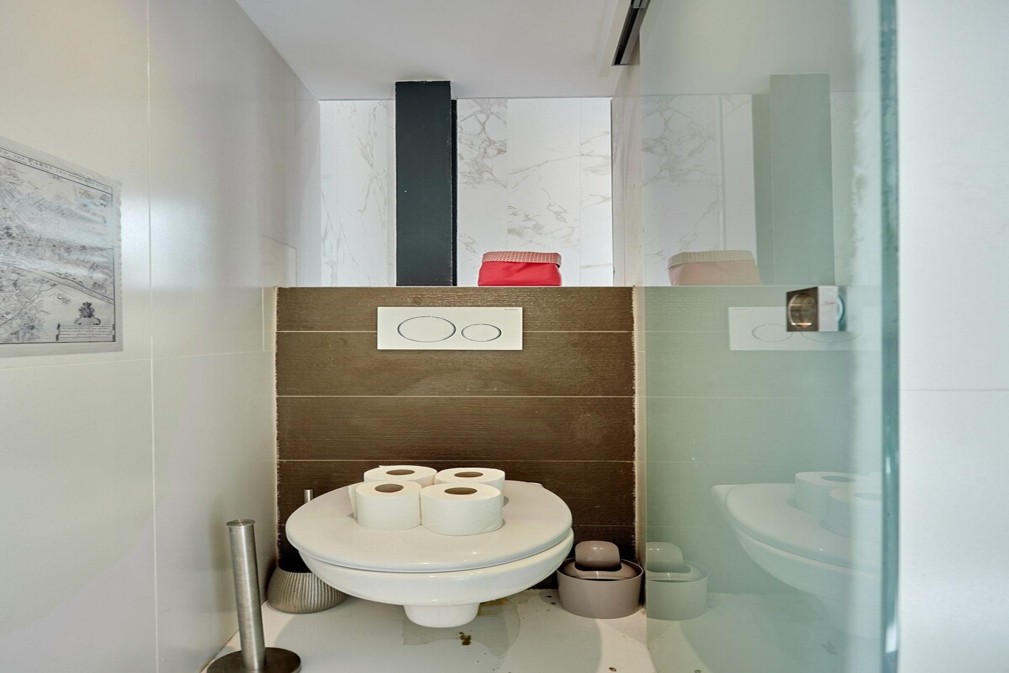 Mellemetage: (soveværelse(dobbeltseng), soveværelse(dobbeltseng)) På 6. etage: (Stue(Fjernsyn, sofahjørne), Køkken(kakkelovn, brødrister, kaffemaskine, ovn, opvaskemaskine , køleskab, fryser, , , Baking sheet, Shower gel, Wine glasses), badeværelse(badekar, bruser), badeværelse(toilet)) , , , Førstehjælp, tørretumbler, vaskemaskine, varme, klimaanlæg, strygejern, føntørrer, , , , , Carbon monoxide detector, Coffee, Downtown