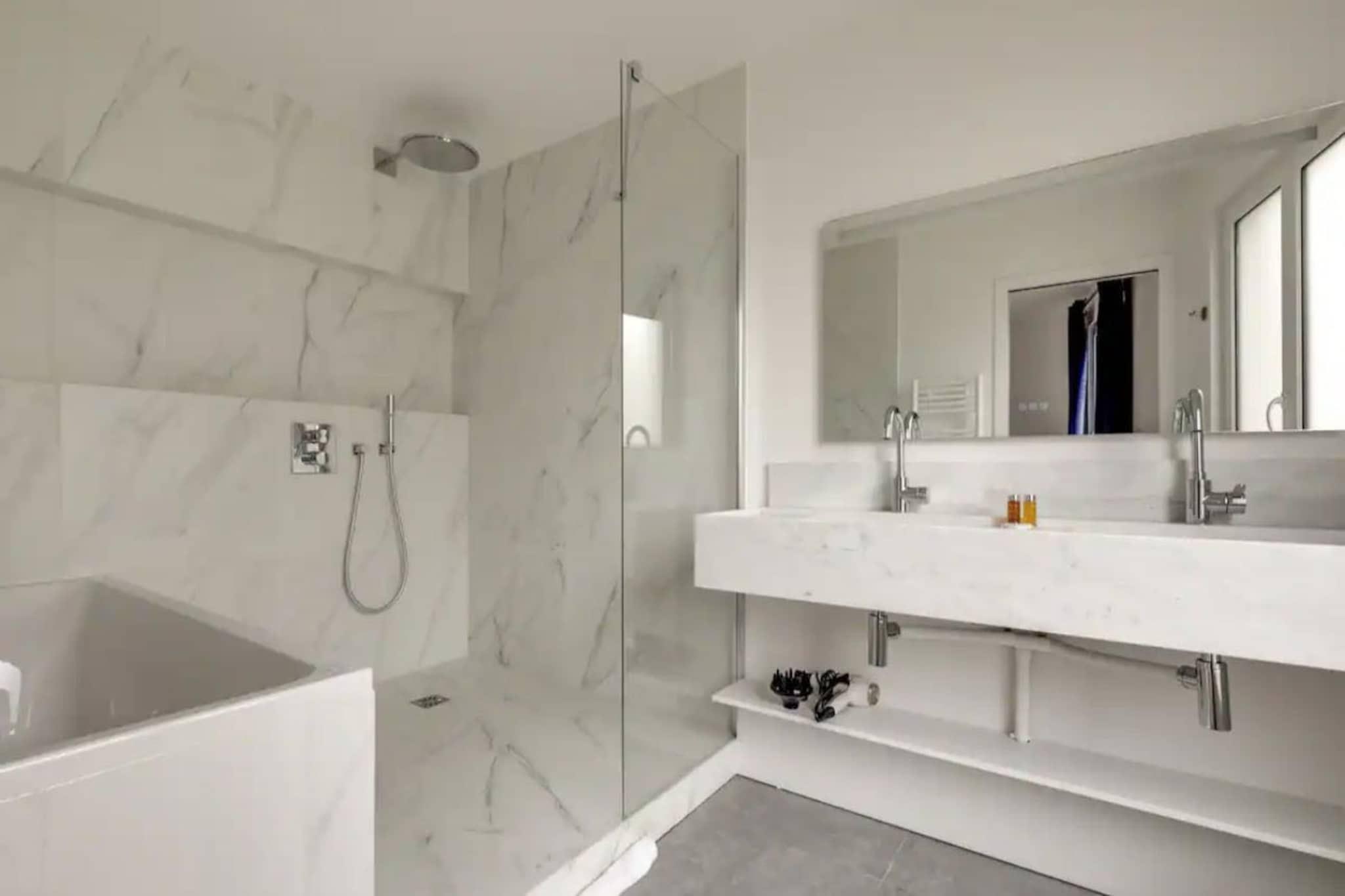 På 4. etage: (Stue(Fjernsyn), Køkken(kogeplade, elkedel, brødrister, komfur, kaffemaskine(espresso), combi-mikroovn, opvaskemaskine , køleskab, , ), soveværelse(dobbeltseng, Fjernsyn), soveværelse(dobbeltseng), Soveværelse med badeværelse(dobbeltseng, Fjernsyn, bruser, toilet), Soveværelse med badeværelse(dobbeltseng, Fjernsyn, badekar med bruser), badeværelse(bruser), badeværelse, badeværelse, toilet) , , , , , , Fjernsyn, kakkelovn, tørretumbler, vaskemaskine, varme, strygejern, føntørrer, Håndklæder/sengelinned (inkl.), , , , , , Carbon monoxide detector, Cleaning Disinfection, Downtown, Enhanced cleaning practices, High touch surfaces disinfected, Long term stays allowed, Town