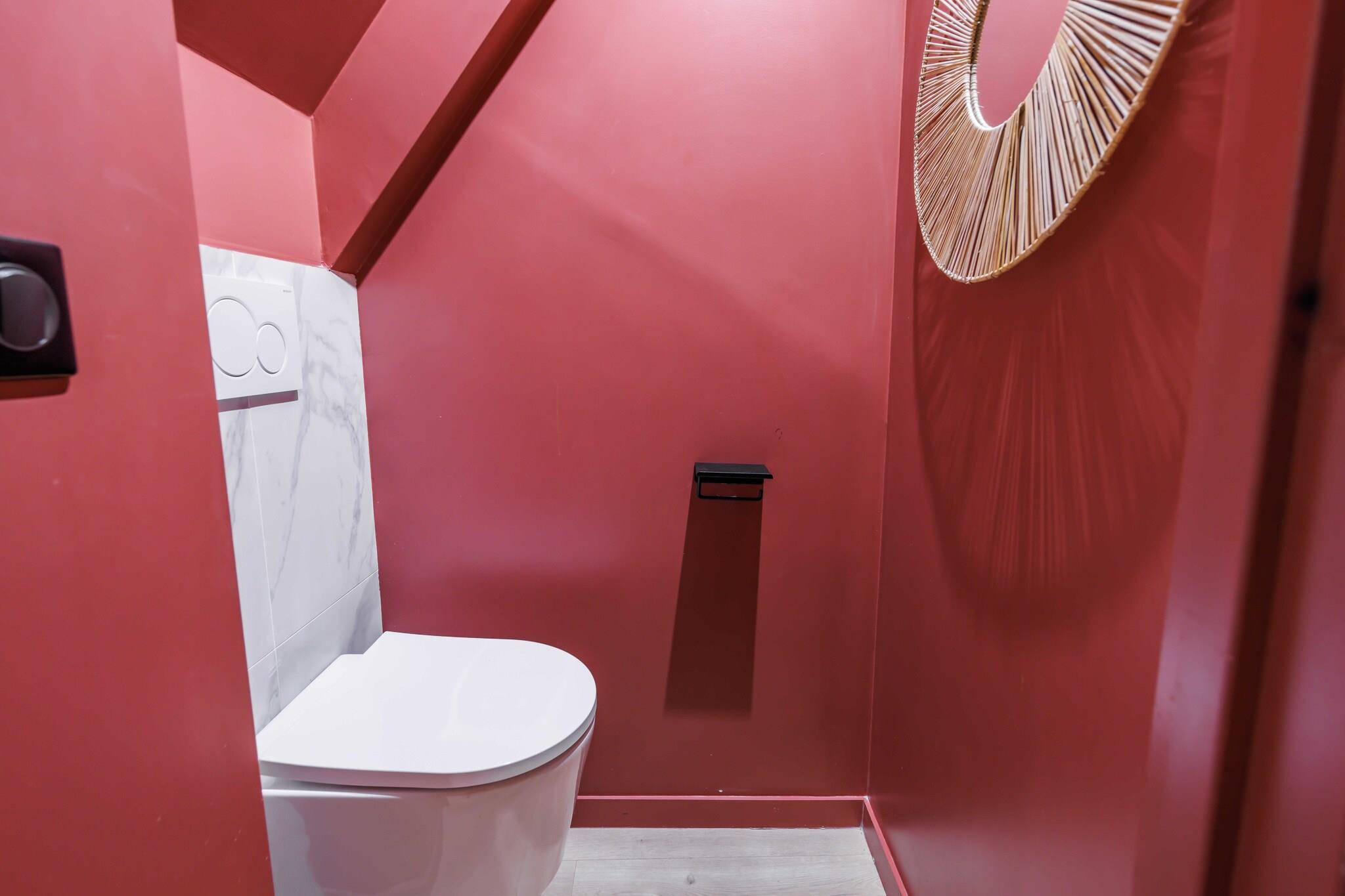 Stueetage: (Stue(, , enkeltsovesofa, Fjernsyn), Køkken(kakkelovn, elkedel, brødrister, kaffemaskine, mikrobølgeovn, køleskab, ), soveværelse(Queen Bed), soveværelse(Queen Bed), badeværelse(bruser, føntørrer, Håndklæder/sengelinned (inkl.), ), badeværelse(bruser, føntørrer, Håndklæder/sengelinned (inkl.), ), toilet(toilet), toilet(toilet)) , , , Førstehjælp, Legeområde, vaskemaskine, varme, klimaanlæg, strygejern, , , , Carbon monoxide detector, Cleaning Disinfection, Downtown, Enhanced cleaning practices, High touch surfaces disinfected, Long term stays allowed, Room-darkening shades, Town