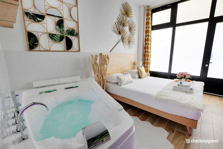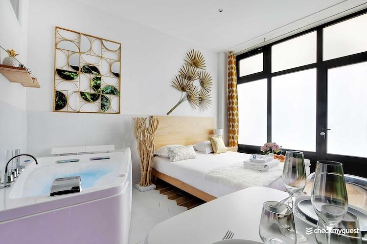 Stueetage: (Køkken(kakkelovn, elkedel, brødrister, kaffemaskine, mikrobølgeovn, køleskab, , ), Stue/soveværelse(, dobbeltseng, Fjernsyn, spisebord), badeværelse(hottub, bruser, toilet, føntørrer, Håndklæder/sengelinned (inkl.), , )) , , , , Førstehjælp, Legeområde, varme, strygebræt, strygejern, , Carbon monoxide detector, Cleaning Disinfection, Downtown, Enhanced cleaning practices, High touch surfaces disinfected, Long term stays allowed, Town