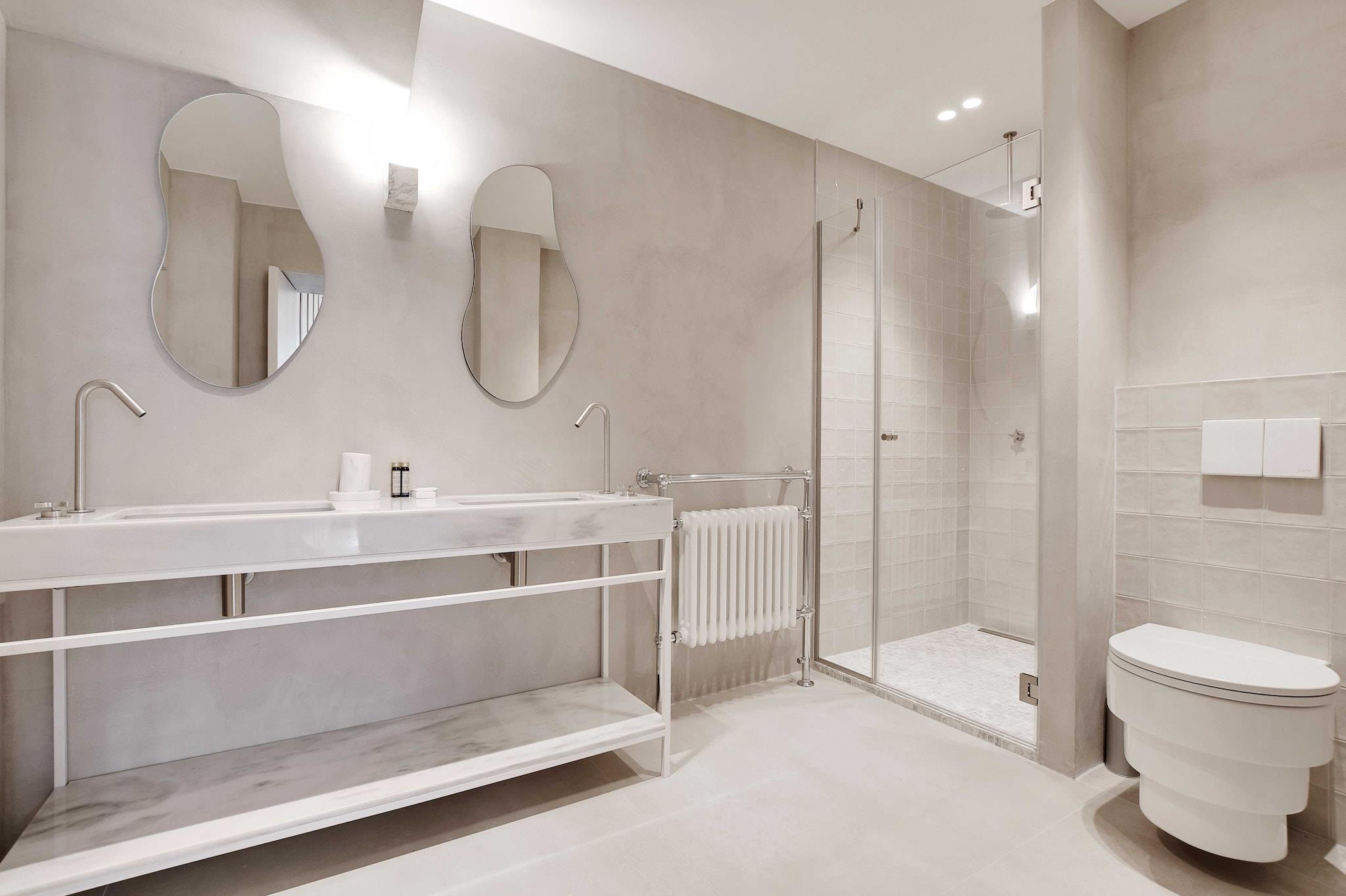 Stueetage: (Stue(enkeltsovesofa, Fjernsyn, spisebord), åbent køkken(kogeplade(induktion), elkedel, brødrister, emhætte, kaffemaskine, ovn, mikrobølgeovn, opvaskemaskine , køleskab, , ), soveværelse(køjeseng), Soveværelse med badeværelse(Fjernsyn, bruser, håndvask, Håndklæder inkl., Queen Bed), Soveværelse med badeværelse(Fjernsyn, bruser, håndvask, toilet, Queen Bed)) På 1. etage: (Soveværelse med badeværelse(king size-seng, Fjernsyn, Fjernsyn, badekar, bruser, håndvask, toilet, klimaanlæg)) , , , , , tørretumbler, tremmeseng, vaskemaskine, varme, strygejern, føntørrer,