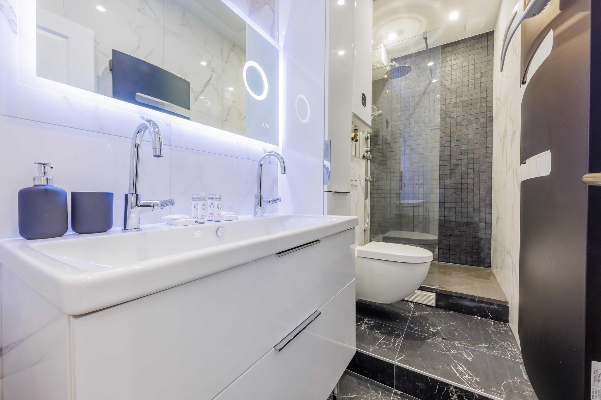 Stueetage: (Stue(enkeltsovesofa, Fjernsyn), Køkken(spisebord, kakkelovn, elkedel, brødrister, kaffemaskine, ovn, mikrobølgeovn, opvaskemaskine , køleskab, , ), soveværelse(dobbeltseng), soveværelse(, dobbeltseng), badeværelse(bruser, toilet, føntørrer, Håndklæder/sengelinned (inkl.), ), badeværelse(bruser, toilet, føntørrer, Håndklæder/sengelinned (inkl.), , )) , , , , vaskemaskine, varme, klimaanlæg, strygejern, Carbon monoxide detector, Cleaning Disinfection, Downtown, Enhanced cleaning practices, High touch surfaces disinfected, Town
