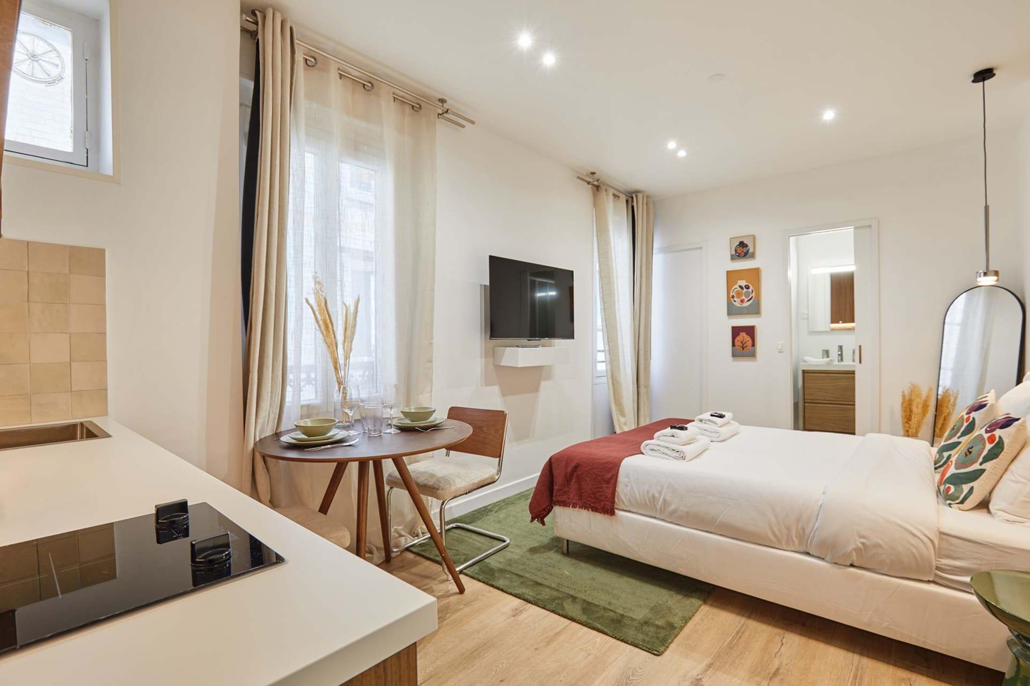 Raffineret studiolejlighed, ideelt beliggende i en charmerende blind vej i Saint-Fargeau-kvarteret. Denne bolig kombinerer moderne elegance og absolut komfort og tilbyder en inkluderende, men diskret parisisk oplevelse. Talrige lokale butikker, hyggelige caféer og et lokalt marked ligger kun få skridt væk for en autentisk kvartersoplevelse.