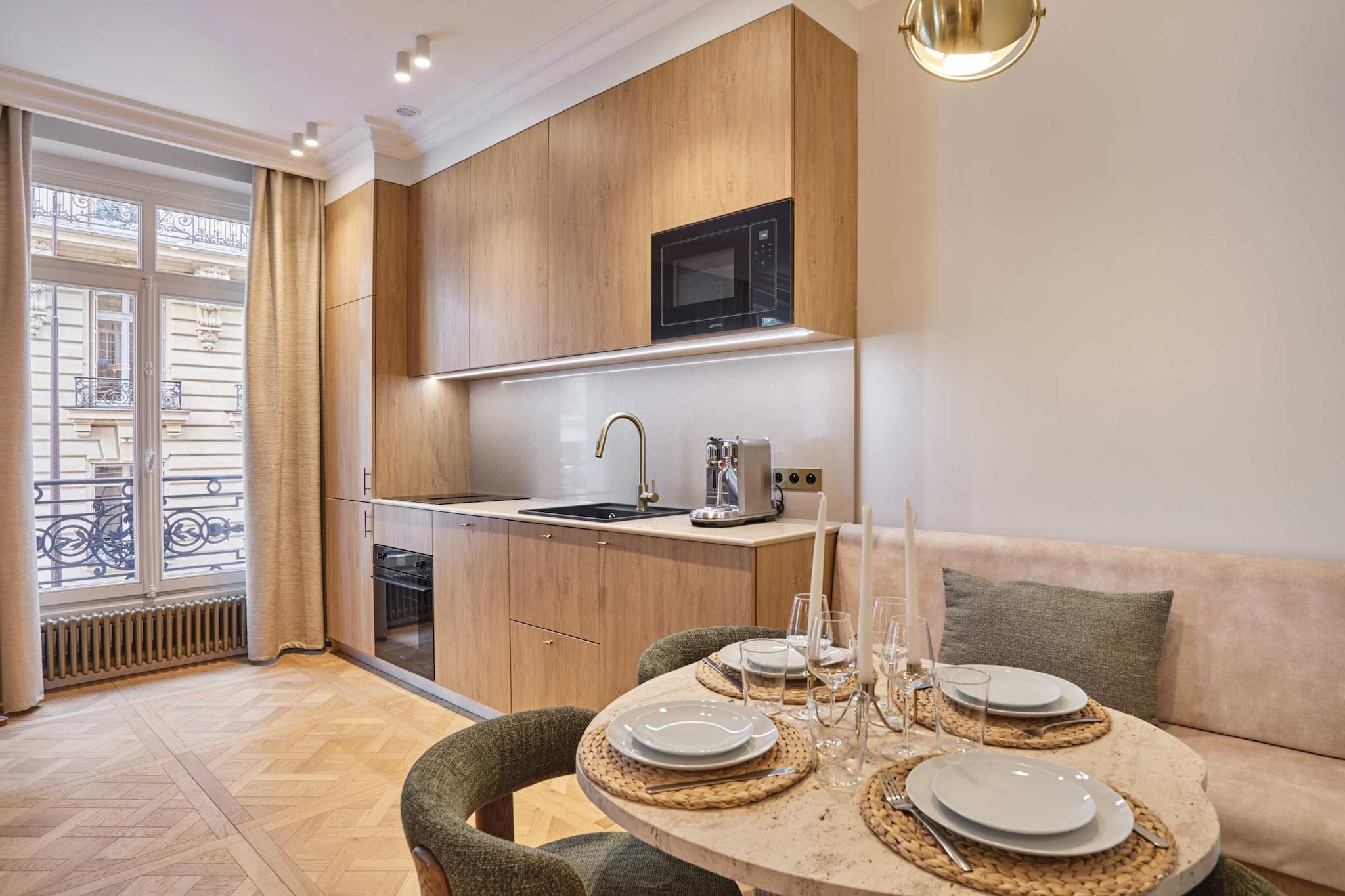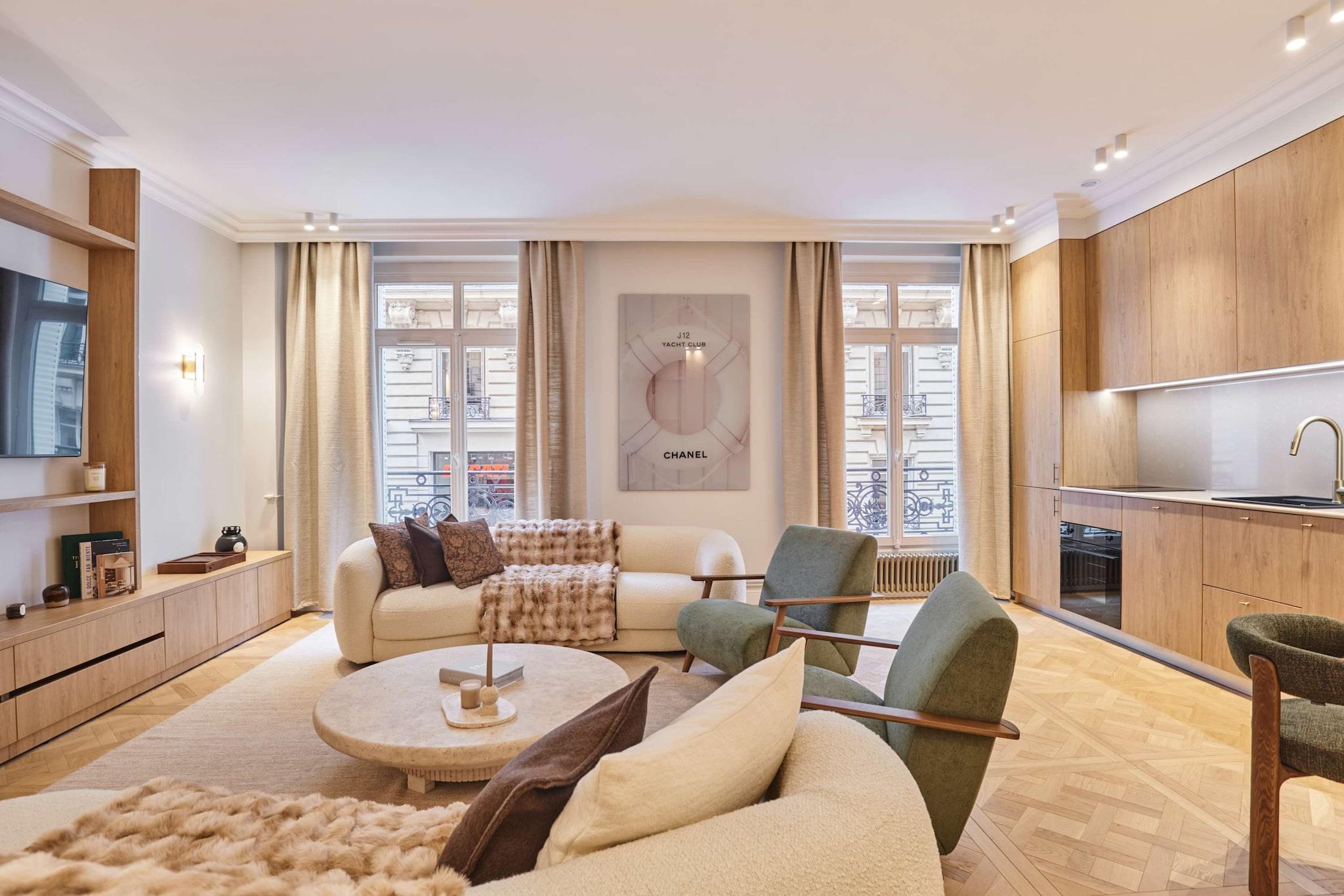 Oplev denne fantastiske lejlighed med aircondition, ideelt beliggende kun få skridt fra Triumfbuen og den legendariske Champs-Élysées. Den er smagfuldt indrettet af professionelle og kombinerer eksklusive materialer, raffineret design og moderne komfort. Forkæl dig selv med et luksuriøst ophold i elegante og indbydende omgivelser, perfekt designet til dit velbefindende. En ideel pied-à-terre til en uforglemmelig parisisk oplevelse, der omfatter kultur, shopping og fransk levevis.