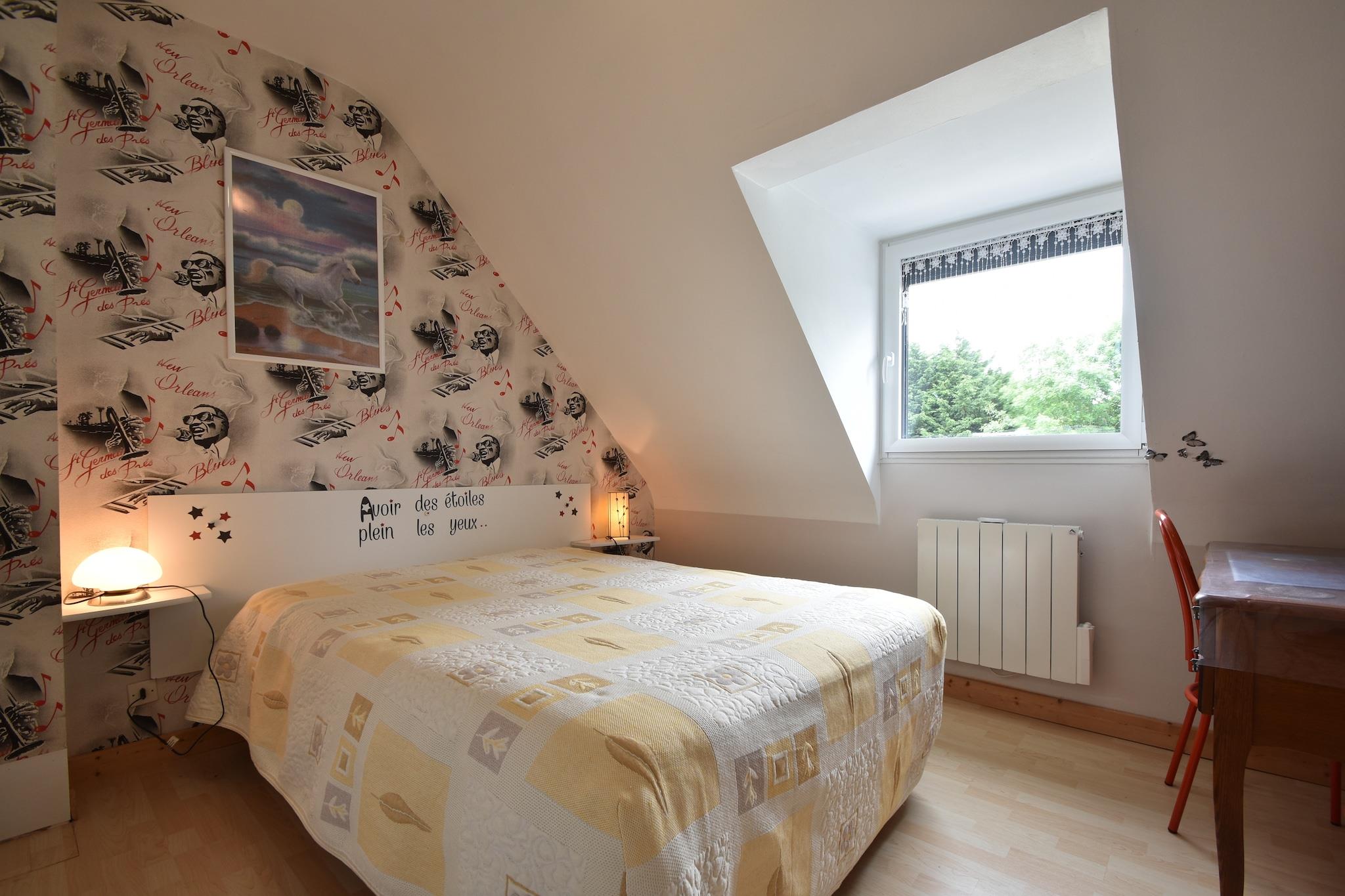 Beliggende i den rolige landsby Pédernec, er dette hyggelige feriehus ideel til familier eller grupper på op til 6 gæster. Med 3 soveværelser og en indbydende atmosfære tilbyder det et fredeligt tilflugtssted kun 3 km fra Pédernec-skoven - perfekt til vandreture i naturen og opdagelse af dyreliv. Havet ligger 35 km væk, og nærliggende byer som Guingamp og Louargat byder på restauranter, natteliv og shopping inden for 4 km. En offentlig swimmingpool er kun 7 km væk for ekstra fritid. Boligen har et moderne køkken, en rummelig stue-spisestue med bar og en lys udestue. Udenfor inviterer en møbleret have og terrasse dig til at slappe af med en drink eller nyde en grillfest med dine kære. Elektrisk opvarmning holder rummet behageligt året rundt, og sikker parkering på stedet tilføjer bekvemmelighed. En lille hund (maks. 10 kg) er velkommen efter anmodning, med et gebyr på 20 EURO pr. ophold. El og vand betales på stedet. Uanset om du udforsker skoven, nyder rideaktiviteter i Louargat eller besøger den naturskønne Côte de Granit Rose, tilbyder dette feriehus en perfekt blanding af komfort og natur. Med nem adgang til Saint Brieuc Lufthavn (30 km), er det en fantastisk base for at opdage Bretagnes skønhed.