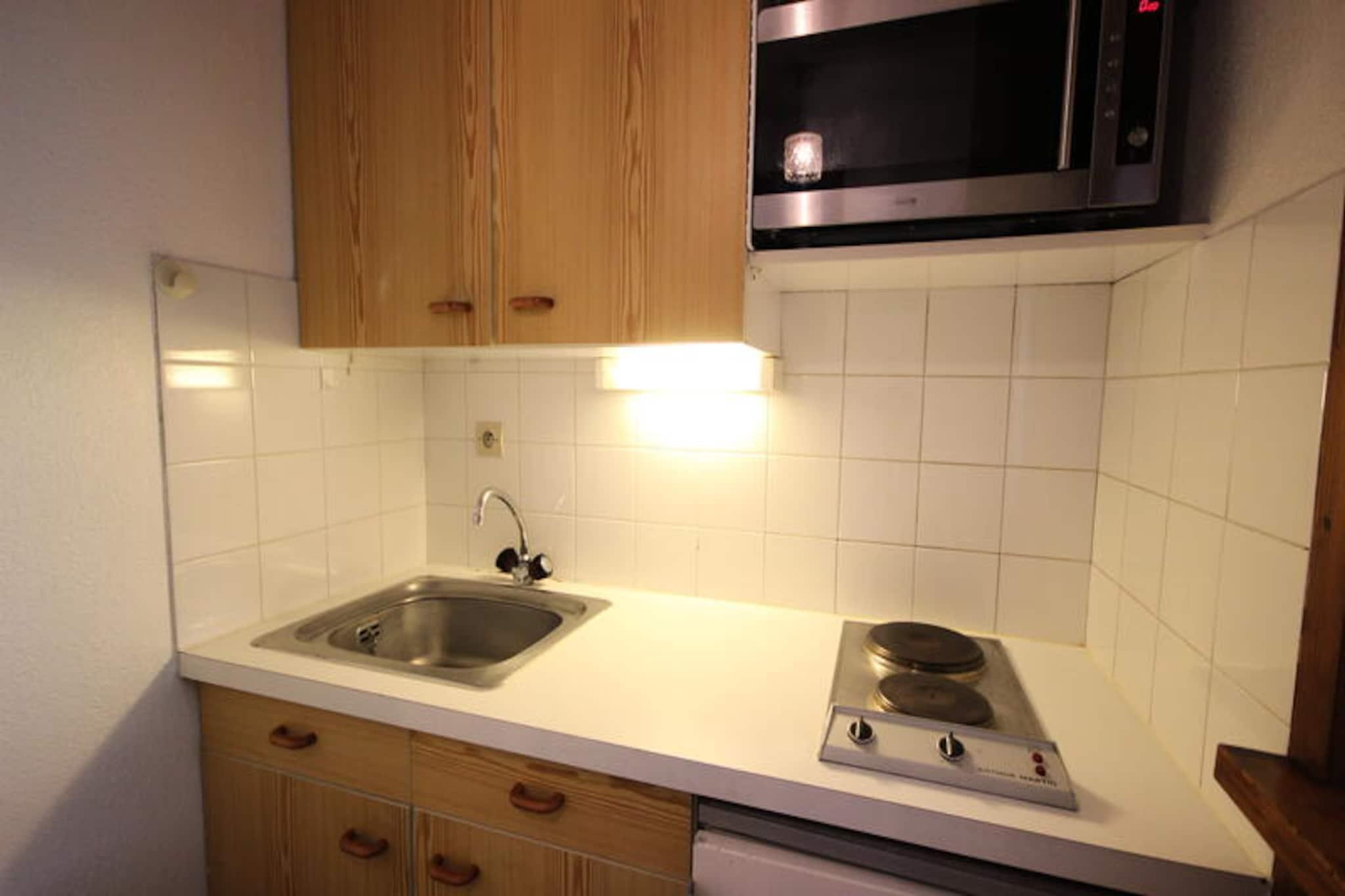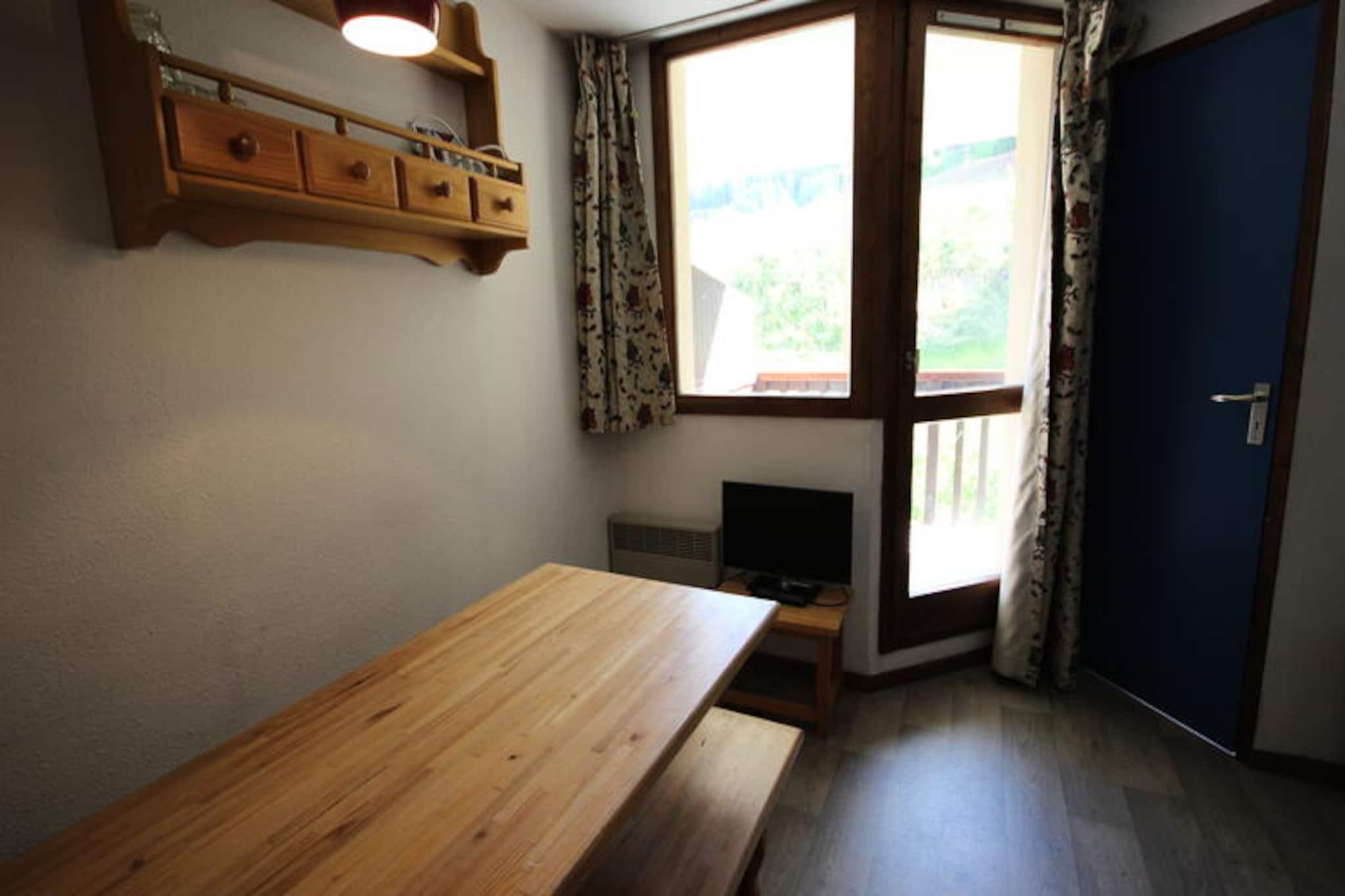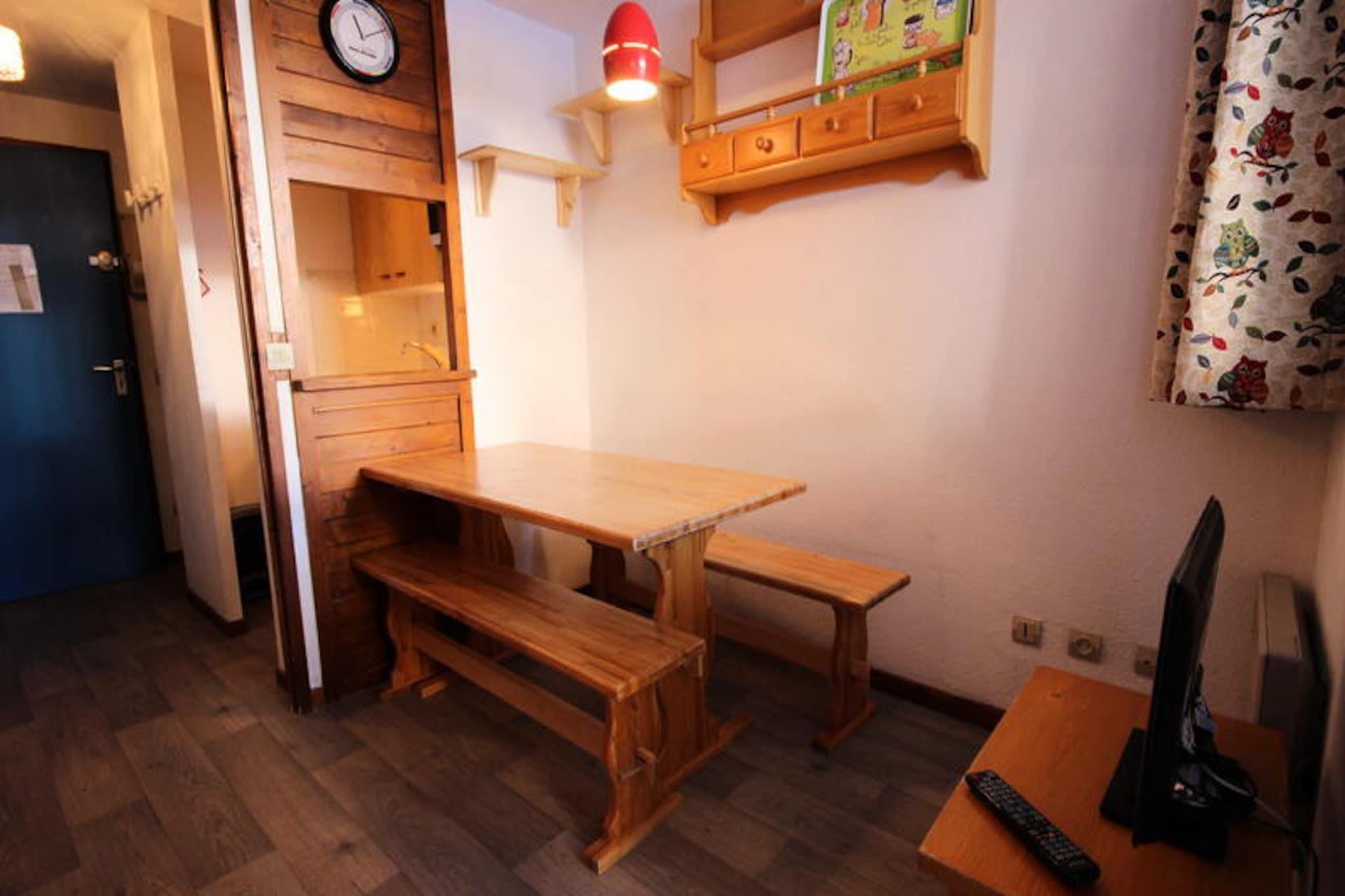 I hjertet af det charmerende Vallandry-resort inviterer dette hyggelige studie dig til at opleve den perfekte alpine getaway. Forestil dig at vågne op til den fredfyldte skønhed af snedækkede pister eller frodige grønne stier, med den pulserende landsbyatmosfære kun få skridt væk. Uanset om du planlægger et vinterskieventyr eller et sommerferie i bjergene, tilbyder denne bolig en ideel beliggenhed til at fordybe dig i de franske alpers betagende omgivelser. Dette 23 m² store studie, der ligger på 2. sal i en bolig med elevator, har komfortabel plads til op til fire gæster. Stuen har et sæt udtrækssenge, mens en sovealkove tilbyder et sæt køjesenge, hvilket gør det til et godt valg for familier eller små grupper. Den østvendte balkon tilbyder en fantastisk udsigt over pisterne og resortet, perfekt til at nyde din morgenkaffe eller slappe af efter en dag med aktiviteter. Køkkenet er udstyret med elektriske kogeplader, ovn og køleskab, hvilket sikrer, at du har alt, hvad du behøver for at tilberede måltider under dit ophold. Et badeværelse med badekar og et separat toilet bidrager til bekvemmeligheden, mens et tv og et skiskab øger din komfort. Denne ejendom ligger kun 5 minutters gang fra pisterne, skilifterne, daginstitutionen og skiskolen og sikrer ubesværet adgang til alle resortets faciliteter. De nærliggende butikker og shuttlebusstoppestedet gør det nemt at udforske området, mens den pulserende afterski-scene og lokale spisemuligheder bidrager til charmen. Om sommeren forvandles Vallandry til et paradis for vandrere og naturelskere med stier, der snor sig gennem fantastiske alpine landskaber. Uanset om du er tiltrukket af spændingen ved skiløb, roen ved bjergudsigter eller den livlige landsbyatmosfære, lover dette studie i Vallandry et uforglemmeligt ophold i enhver sæson.