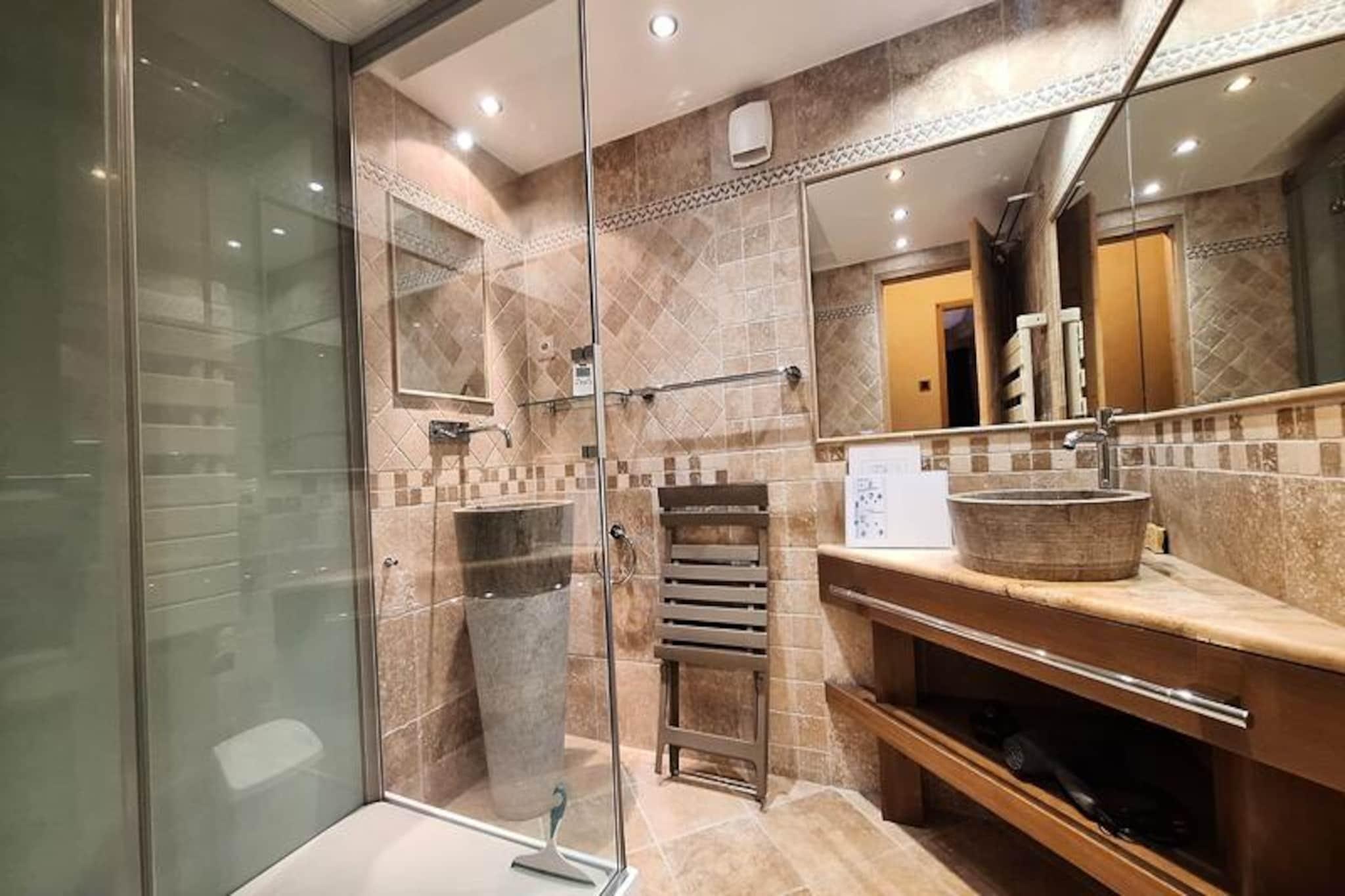 Højt over det charmerende feriested Vallandry tilbyder dette prestigefyldte chalet en fredfyldt tilflugtssted med betagende udsigt over Beaufortain- og Bellecôte-massiverne. Omgivet af fredelige gangstier og beliggende i udkanten af ??en frodig skov, kombinerer dette chalet alpin ro med direkte adgang til pisterne, hvilket gør det til et ideelt tilflugtssted for både vintersportsentusiaster og sommereventyrere. Den sydvestvendte balkon inviterer dig til at nyde de gyldne nuancer af den nedgående sol, mens du beundrer det majestætiske bjergpanorama. Dette luksuriøse chalet, der strækker sig over 130 m² fordelt på tre etager, har komfortabel plads til op til ni gæster. Stueetagen har tre hyggelige soveværelser, hver med to enkeltsenge, mens mezzaninen tilbyder to ekstra soveværelser - et med to enkeltsenge og et andet med en enkeltseng - hvilket sikrer privatliv og komfort for alle. Det åbne køkken er fuldt udstyret med moderne apparater, herunder induktionskogeplade, ovn, mikrobølgeovn, opvaskemaskine og køleskab med fryser, hvilket gør madlavning til en leg. Efter en dag med alpine eventyr kan du slappe af i den indbydende stue ved brændeovnen, hvor brænde er omhyggeligt medtaget. Forkæl dig selv med ultimativ afslapning med hyttens spa-lignende faciliteter, herunder et spabad, et hydromassagebruser med dampbadsfunktion og to separate toiletter for nemheds skyld. Yderligere funktioner som satellit-tv, Wi-Fi, en dvd-afspiller og et babyudstyr sikrer et behageligt ophold for familier. Praktiske faciliteter som vaskemaskine, tørretumbler, skiboks og en dedikeret parkeringsplads bidrager til bekvemmeligheden. Denne hytte ligger kun 10 minutters gang fra feriestedets centrum og butikker og tilbyder den perfekte blanding af afsondrethed og tilgængelighed. Uanset om du snor dig gennem Paradiskis verdensklasse-pister om vinteren eller udforsker naturskønne vandrestier om sommeren, lover denne hytte en uforglemmelig alpin oplevelse. Med sin Paradiski 4 CRYSTALS-vurdering er det et paradis af luksus og komfort i hjertet af de franske alper.