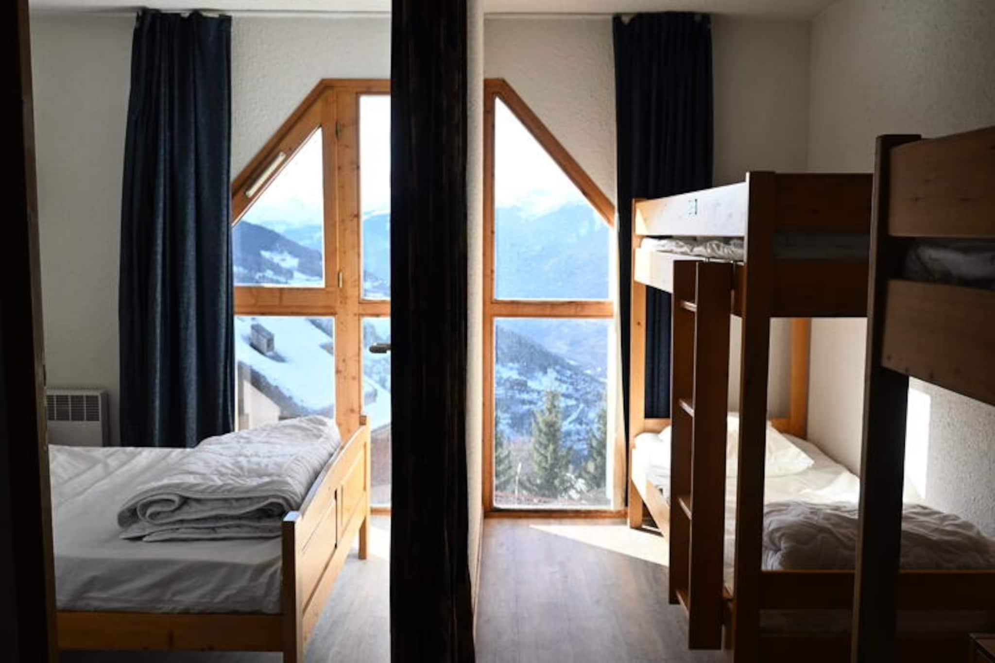 Højt over den charmerende landsby Vallandry tilbyder denne hyggelige lejlighed en rolig oase med betagende udsigt over dalen og de omkringliggende boliger. Perfekt beliggende til både vinter- og sommereventyr, kun fem minutters gang fra skiskolen, lifterne og de lokale butikker, hvilket sikrer bekvemmelighed uden at gå på kompromis med roen. Uanset om du er her for at køre på pisterne eller udforske alpine stier, er denne bolig din port til uforglemmelige øjeblikke i hjertet af de franske alper. \n\nTræd indenfor i denne rummelige 52 m² store lejlighed i stueetagen, der er omhyggeligt designet til at rumme op til syv gæster. Den sydvestvendte balkon inviterer dig til at nyde solskinnet, mens du beundrer det maleriske landskab. Opholdsstuen har en komfortabel dobbeltsovesofa, mens du ovenpå finder et hyggeligt soveværelse med en dobbeltseng og en sovealkove udstyret med køjesenge og en enkeltseng - ideelt til familier eller vennegrupper. To badeværelser, hver med badekar, og to separate toiletter sikrer rigelig plads og privatliv for alle. Det nyligt opdaterede gulv giver et frisk touch til det varme, indbydende interiør. \n\nTekøkkenet er fuldt udstyret med elektrisk komfur, miniovn, opvaskemaskine og køleskab, hvilket gør det nemt at tilberede måltider efter en dag med eventyr. Yderligere faciliteter inkluderer et tv og et skiskab, hvilket sikrer et problemfrit ophold. Bemærk venligst, at kæledyr ikke er tilladt, og sengelinned er inkluderet i de fleste ophold. \n\nMed sin førsteklasses beliggenhed nær restauranten "La Bergerie de Raphaël" og børnepasningsfaciliteter kombinerer denne lejlighed komfort, bekvemmelighed og charme. Uanset om du søger spændende skiløjper, naturskønne vandreture eller fredelige øjeblikke på balkonen, lover dette Vallandry-tilflugtssted en mindeværdig alpin ferie.