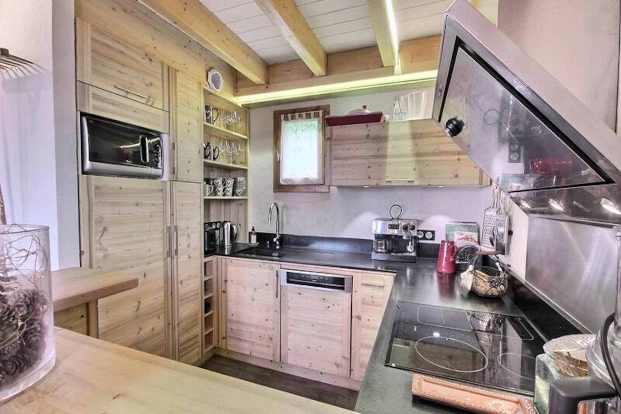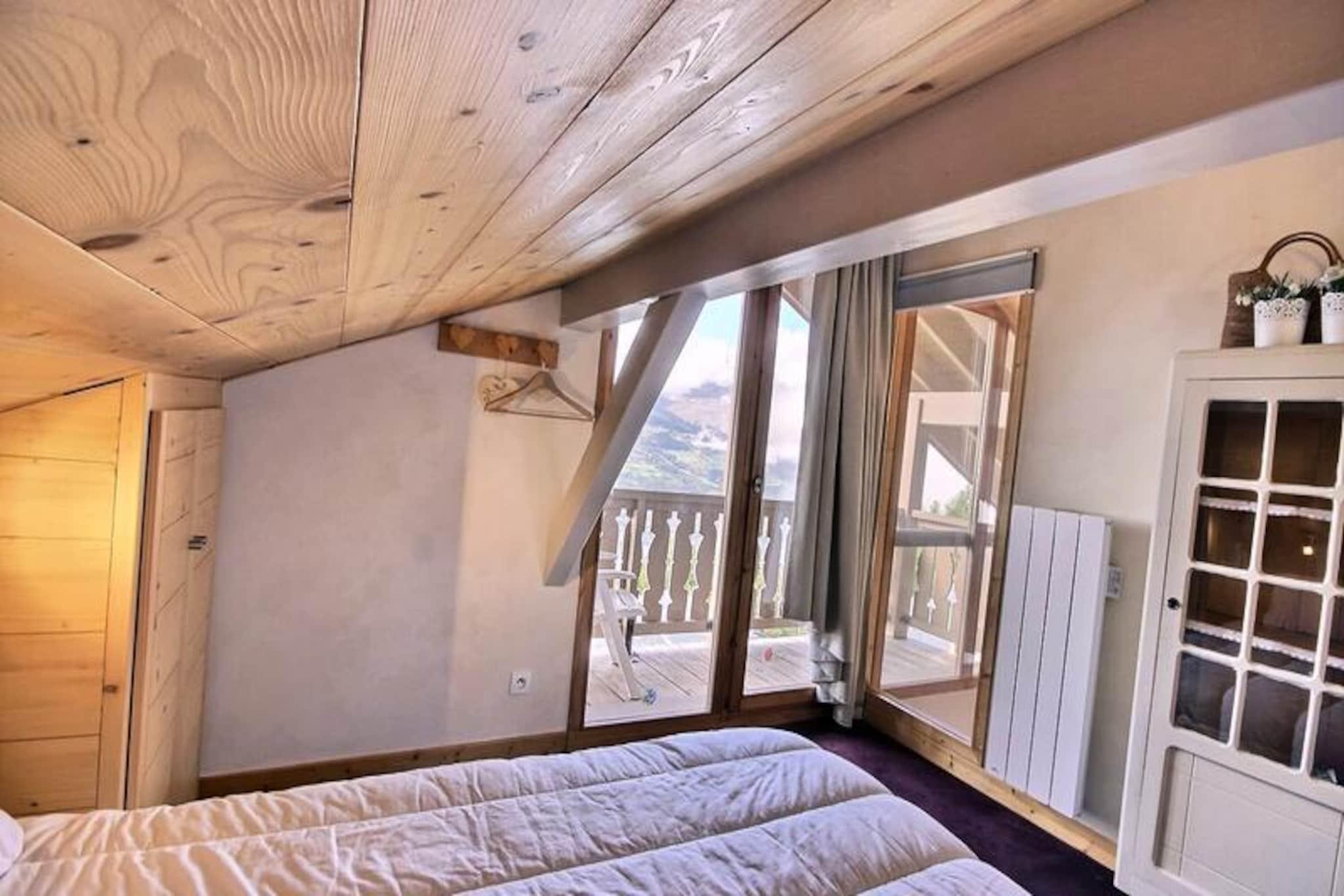 Højt over den charmerende landsby Vallandry inviterer dette dejlige chalet dig til at opleve den fredfyldte skønhed i de franske alper. Med sin sydvestvendte terrasse vågner du op til panoramaudsigt over den majestætiske Beaufortain-bjergkæde, hvor det skiftende lys maler toppene i nuancer af guld og rosa. Kun en kort gåtur på 200 m fra pisterne og de lokale butikker er dette chalet perfekt beliggende for både vintersportsentusiaster og sommereventyrere, der søger ro og bekvemmelighed. Dette hyggelige, men rummelige feriested på 98 m² har komfortabel plads til op til 8 gæster. Stueetagen har en varm og indbydende stue centreret omkring en brændeovn, perfekt til afslappende aftener efter en dag på pisterne. Det fuldt udstyrede køkken med induktionskogeplader, ovn, mikrobølgeovn, opvaskemaskine og køleskab med fryser gør det til en fornøjelse at tilberede måltider. Sovepladserne omfatter et dobbeltværelse i stueetagen, to soveværelser med to enkeltsenge og et dobbeltværelse på loftet, der tilbyder privatliv og komfort for alle. Moderne bekvemmeligheder såsom Wi-Fi, et tv og et skiskab sikrer et stressfrit ophold. Ud over hytten tilbyder Vallandry et væld af aktiviteter. Om vinteren kan du nyde direkte adgang til det store skiområde Paradiski, der er kendt for sine omfattende pister og betagende landskaber. Om sommeren forvandles regionen til et paradis for vandrere og cyklister med stier, der snor sig gennem frodige alpine enge og skove. Lokale butikker og restauranter ligger kun en kort gåtur væk og tilbyder alt, hvad du behøver for en uforglemmelig ferie. Uanset om du er tiltrukket af spændingen ved skiløb, tiltrækningen af ??bjergvandringer eller blot ønsket om at slappe af i fredelige alpine omgivelser, tilbyder denne hytte den perfekte base for din næste ferie. Oplev magien ved Vallandry og skab minder, der vil vare hele livet.