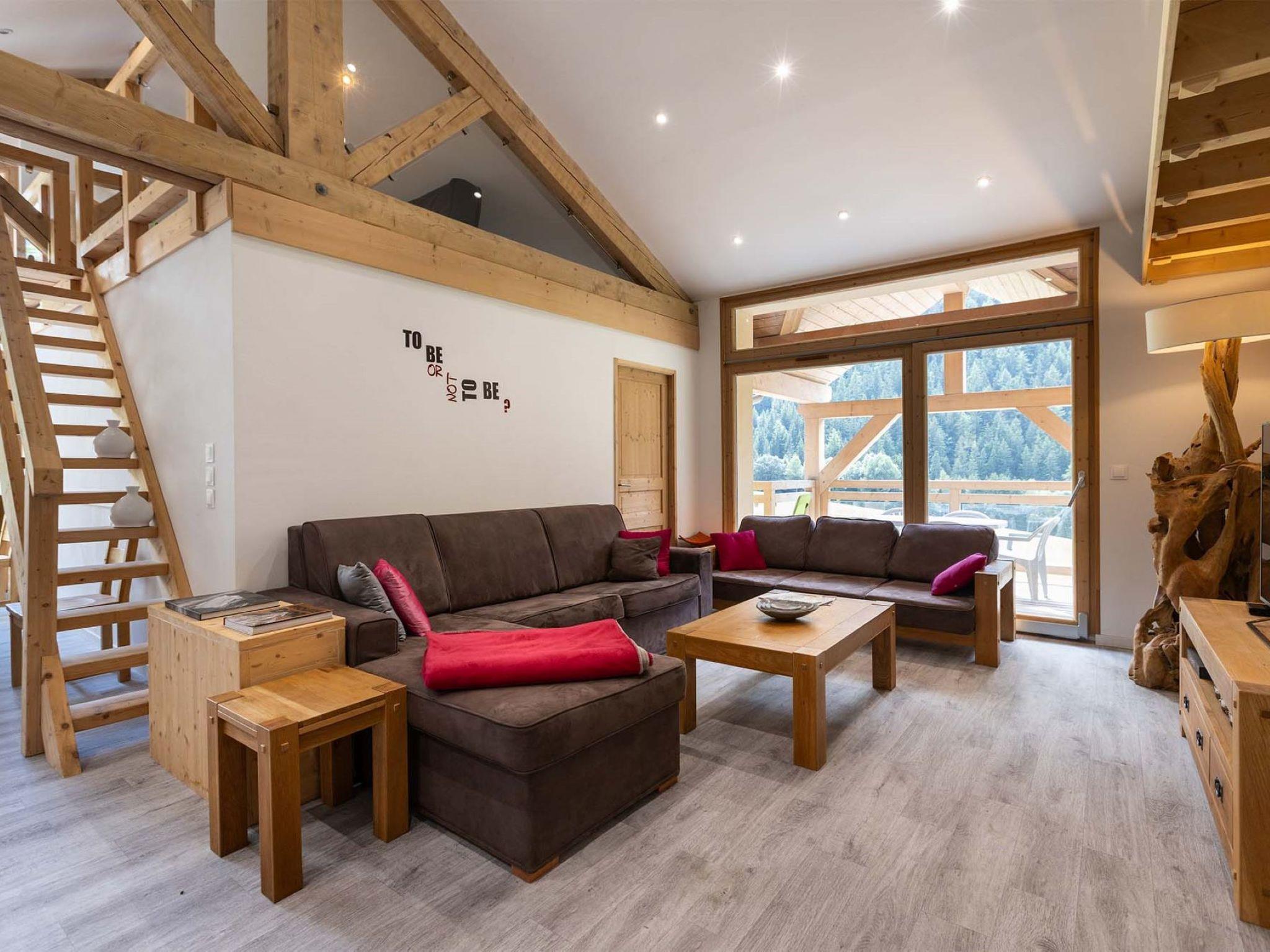 "Nancroix", 5-room apartment 120 m2 on 2 levels. Spacious, comfortable furnishings: large living/dining room 43 m2 with 1 double sofabed and TV (flat screen). Exit to the terrace. Open gallery with sloping ceilings with 1 double sofabed. 1 room with 1 french bed (1 x 160 cm, length 200 cm), shower/WC. Kitchen (oven, dishwasher, toaster, microwave, freezer, electric coffee machine, Capsules for coffee machine (Nespresso)). Upper floor: 2 rooms, each room with 1 french bed (1 x 160 cm, length 200 cm), shower/WC. 1 room with 2 x 2 bunk beds (4 x 90 cm, length 200 cm), shower/WC. 2 terraces. View of the mountains. Facilities: washing machine, dryer, iron, hair dryer. Internet (WiFi, free). Parking.