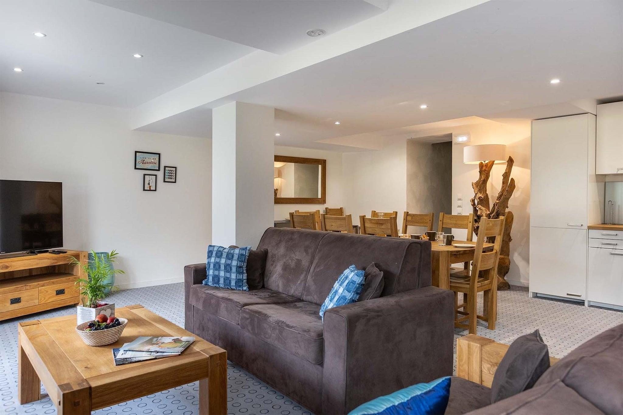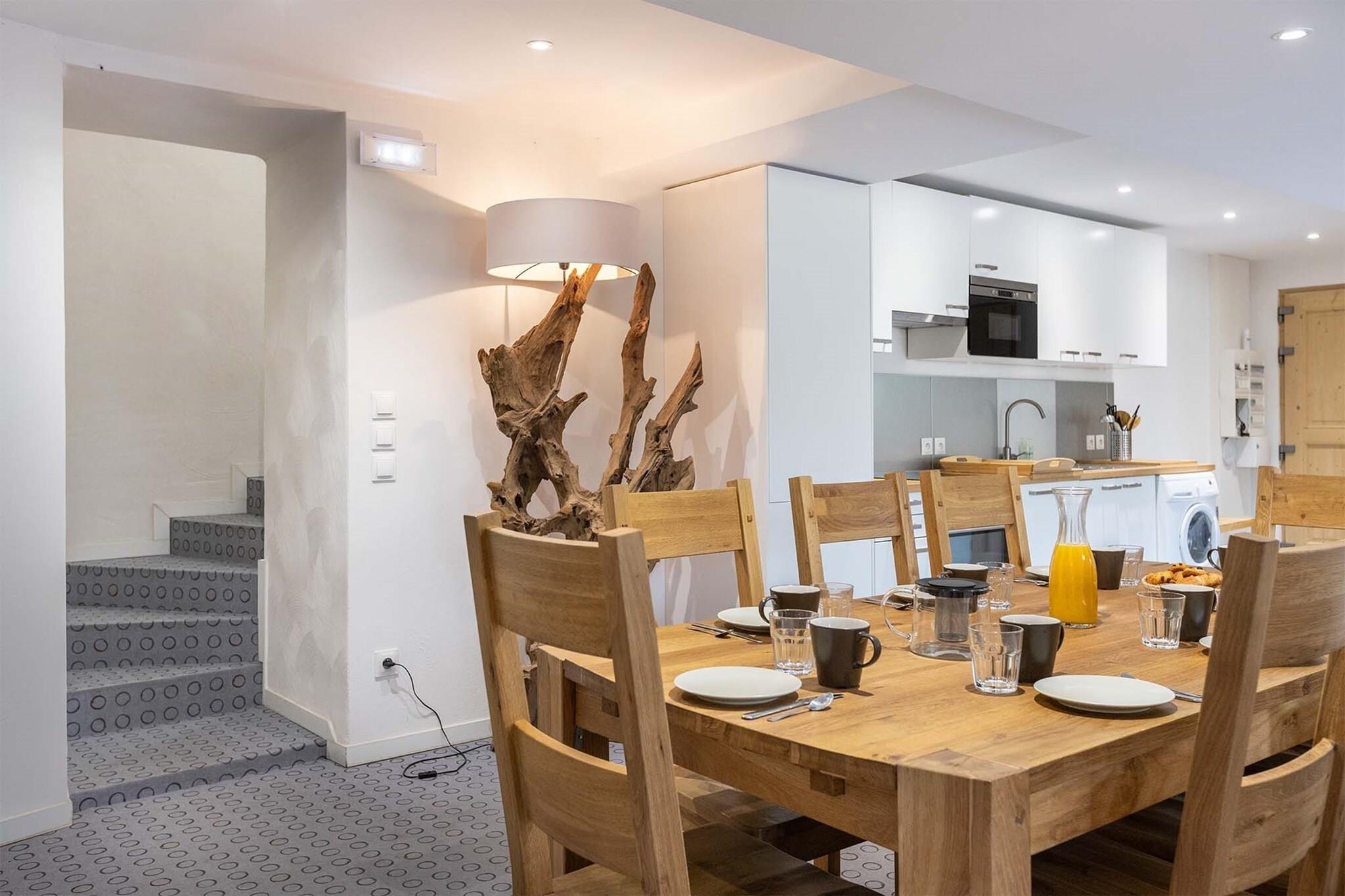 Chalet Les Amis-residensen har en privilegeret beliggenhed mellem Les Arcs og La Plagne, ved porten til den smukke Parc de la Vanoise, beliggende i hjertet af Paradiski-skiområdet. Det har 5 ferielejligheder til 8 til 14 personer og en separat hytte til højst 10 personer, som blev totalrenoveret i 2024. Et fælles spa-område med sauna og spabad tilbyder afslapning efter en lang dag i skiområdet. En gratis shuttlebus tager dig direkte til skiløjperne. Denne 2-etagers lejlighed tilbyder enestående udsigt over Nancroix-dalen, bjergene, granskove og Massif de la Vanoise. Fra den store stue med åbent køkken fører en trappe til de tre soveværelser, hver med eget badeværelse.