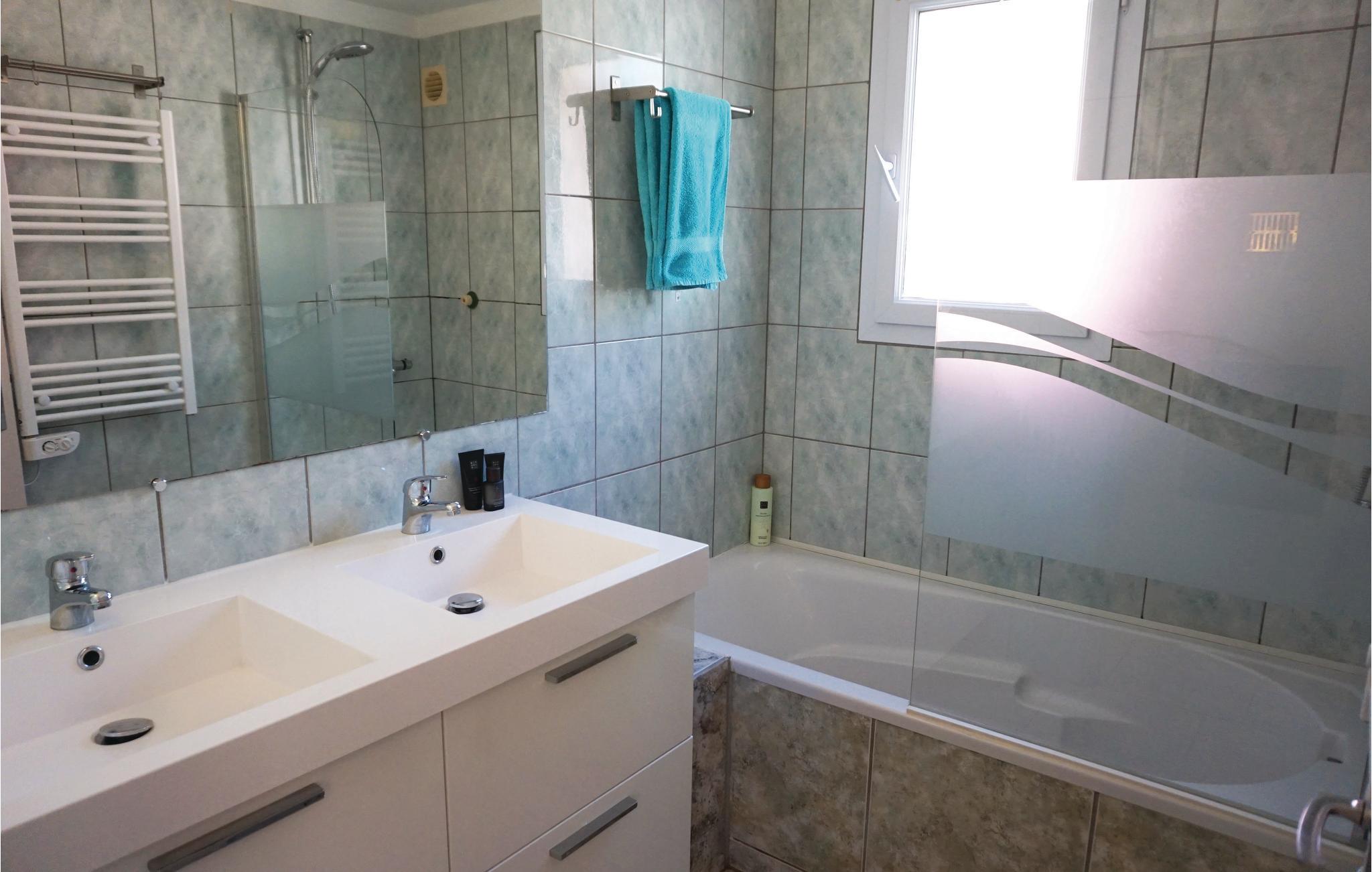 Badeværelse (nr. 1) - Varmt og koldt vand. Bruser og badekar