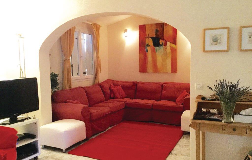 Fra stuen er der direkte adgang til poolterrassen og til et af soveværelserne. Poolen ligger på højre side af ejendommen og er omgivet af smukke terrasser med have, liggestole og parasol. Den store grill er muret og placeret på kanten af ??terrassen.