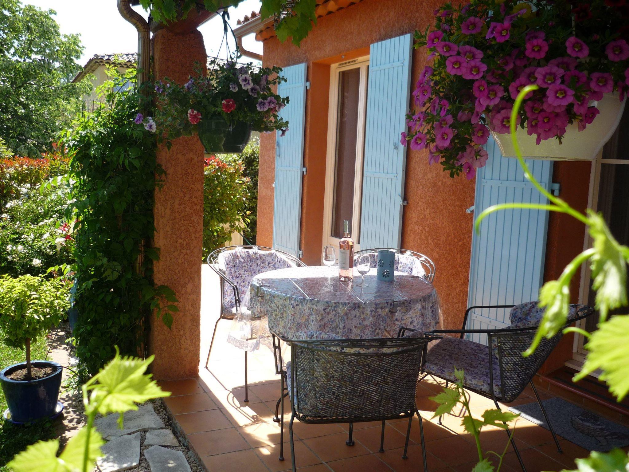 The Provençal style of the house blends beautifully into the landscape. The furnished terrace with a barbecue offers a wonderful view of the distant hills. The comfortable house with its garden invites you to relax. Outdoors, you can use the shared pool (approx. 100 meters from the house). Pets are not allowed. Two outdoor parking spaces are located directly at the house.