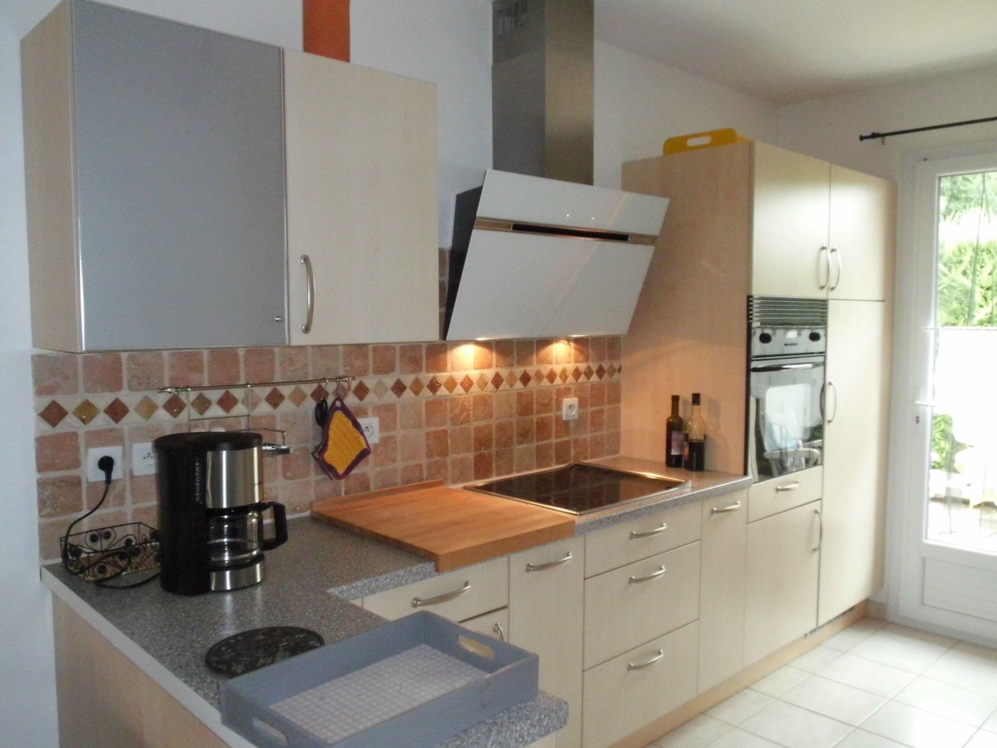 The comfortable fitted kitchen is fully equipped. Oven, ceramic hob, dishwasher, fridge with freezer compartment, microwave with hot air and grill, blender, coffee and pad machine and many cooking and baking utensils are available as well as a freezer and a washing machine.