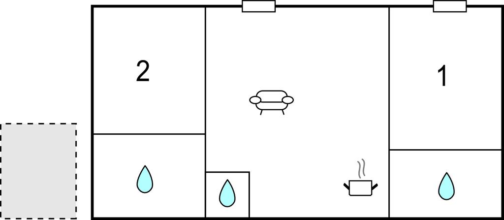 Badeværelse 3m2 (nr. 1) - WC. Varmt og koldt vand. Bruser