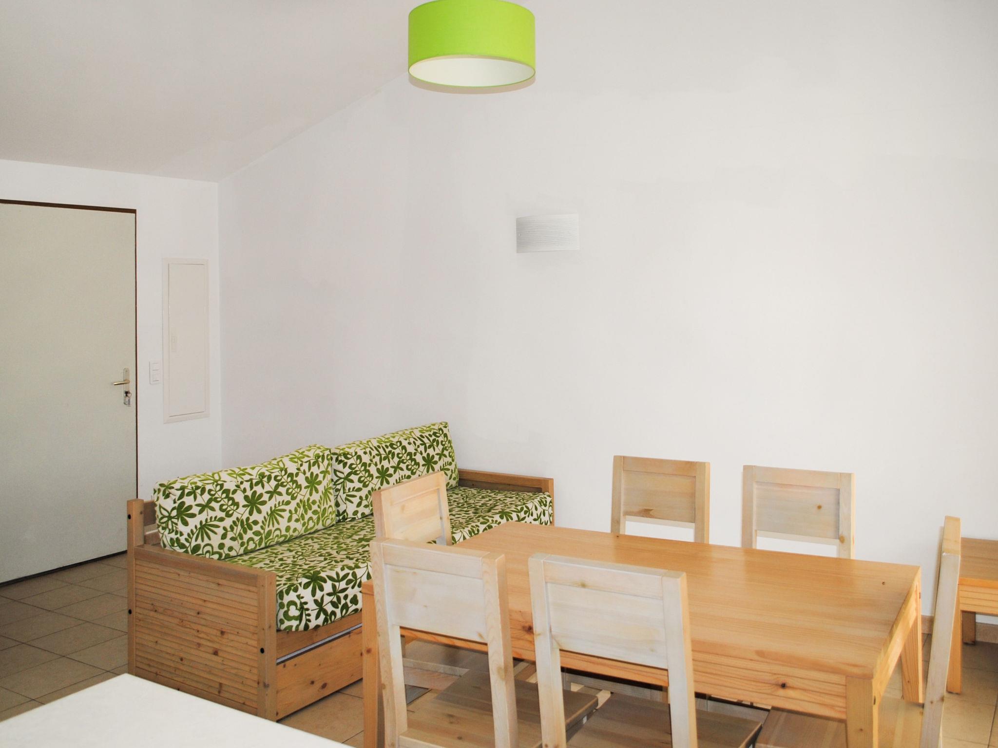 "Résidence Odalys Référence San Martinu", 4-room terraced house 52 m2. Practical furnishings: living/sleeping room with 1 pull-out bed, 1 sleeping facility, dining table, TV, electric heating and air conditioning. 2 rooms, each room with 1 french bed. 1 room with 2 beds. Kitchenette (dishwasher, 4 ceramic glass hob hotplates, microwave, electric coffee machine). Shower/WC. Terrace. Terrace furniture. Facilities: children's high chair, baby cot. Please note: non-smoking house. Smoke alarm, fire extinguisher.