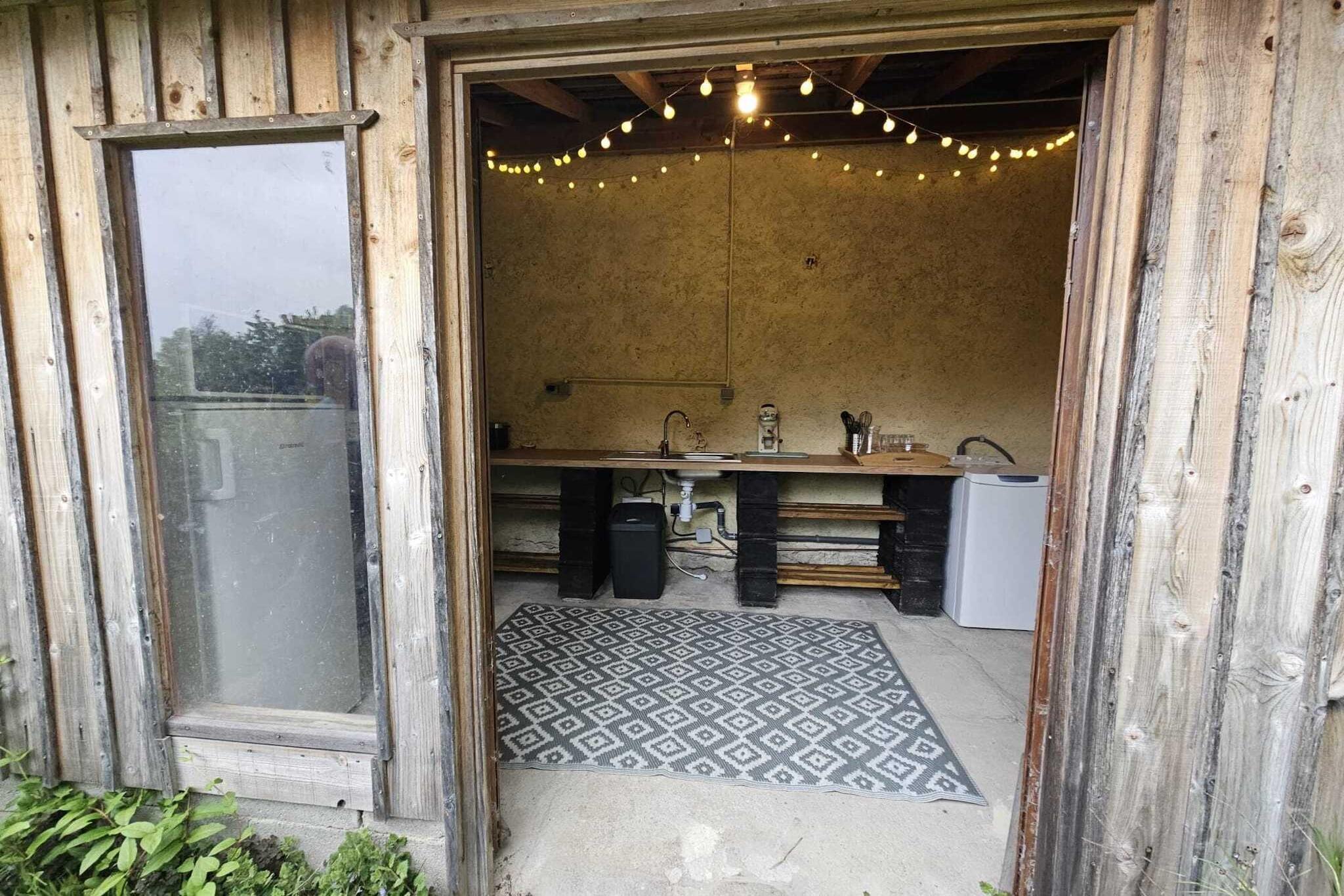 Stueetage: (Køkken(kakkelovn, elkedel, kaffemaskine, kaffemaskine, mikrobølgeovn, køle-fryseskab), stue / spisestue(Fjernsyn, spisebord, sofahjørne), badeværelse(bruser, toilet)) På 1. etage: (soveværelse(2x enkeltseng(90 x 190 cm), Fjernsyn(parabol))) udekøkken, vaskemaskine(deles med andre gæster), varme, terrasse(deles med andre gæster, overdækket), have(200 m2), have(> 1000 m2), havemøbler, grill, strygebræt, hyggespil
